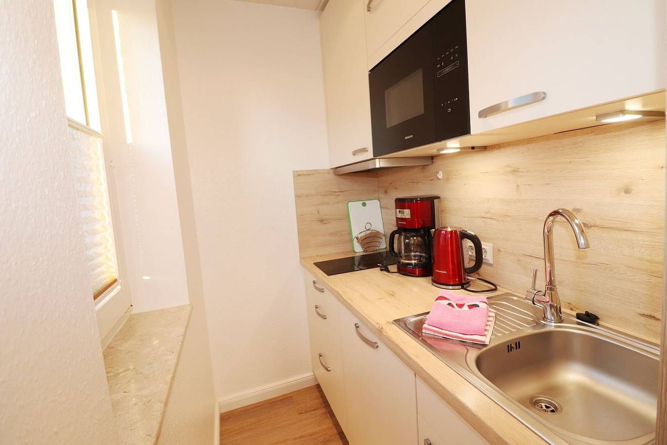 Herzlich willkommen im Haus Laura! Die neu gestaltete 2-Raum-Wohnung L4 ( ca. 40 qm) befindet sich in der 1. Etage mit Balkon (Südseite), bietet eine komfortable und helle Unterkunft mit separatem Wohn- und Schlafbereich. Durch die Südausrichtung ist die Wohnung besonders lichtdurchflutet und einladend. Gemütlicher Wohnbereich, kleines separates Schlafzimmer mit zwei Einzelbetten und eine separte kleine Küche mit Geschirrspüler, sowie ein modernes Duschbad laden zum Wohlfühlen ein. Freuen Sie sich bei Anreise über bezogene Betten! Das Haus liegt im Herzen von Büsum, zum Bäcker, sowie Fußgängerzone und Ärztezentrum sind es nur wenige Schritte. W-lan, Fahrradabstellraum und Parkplatz direkt am Haus. Zufahrt über Westerwarft! In dieser Wohnung ist kein Haustier erlaubt!
