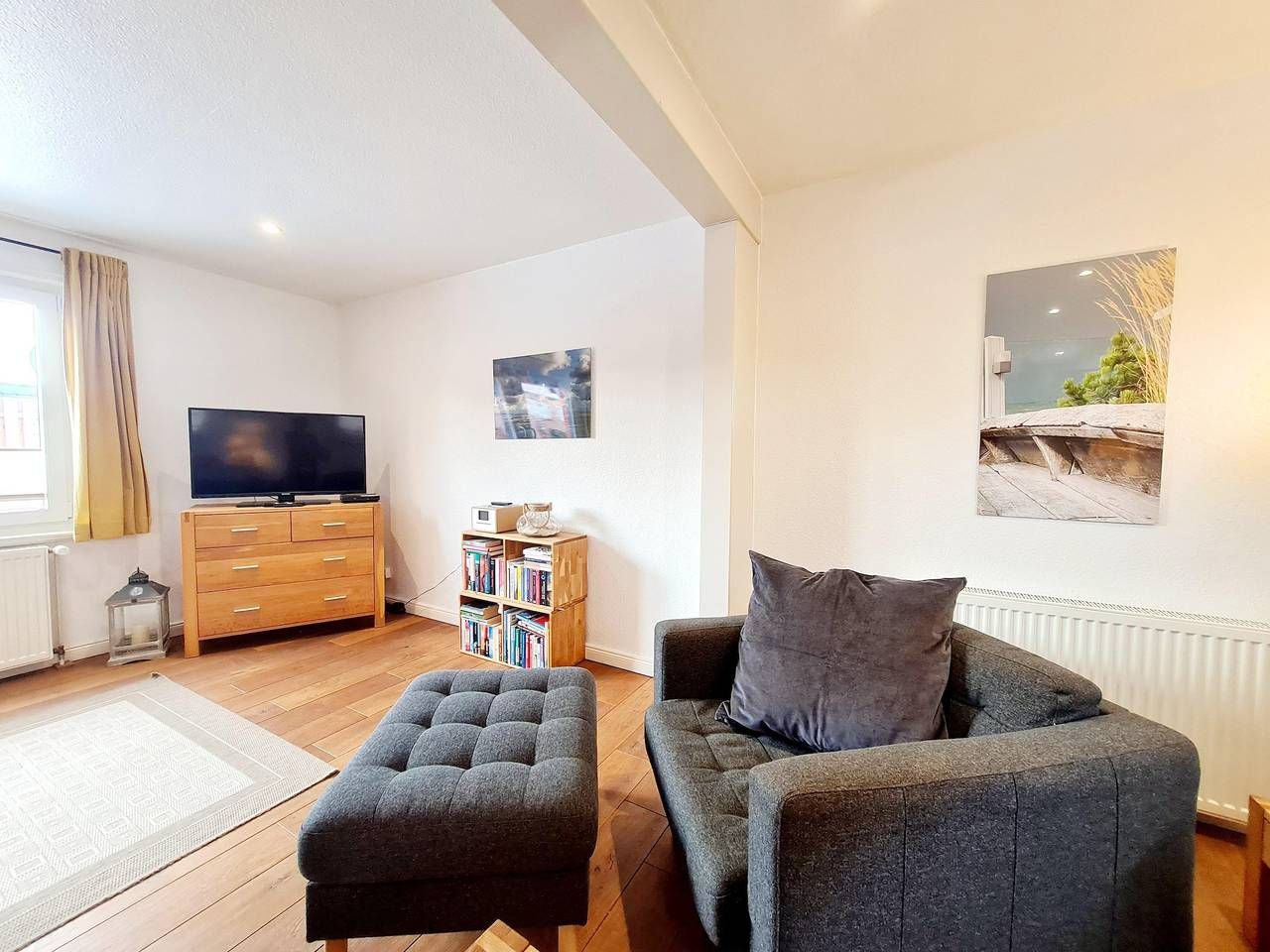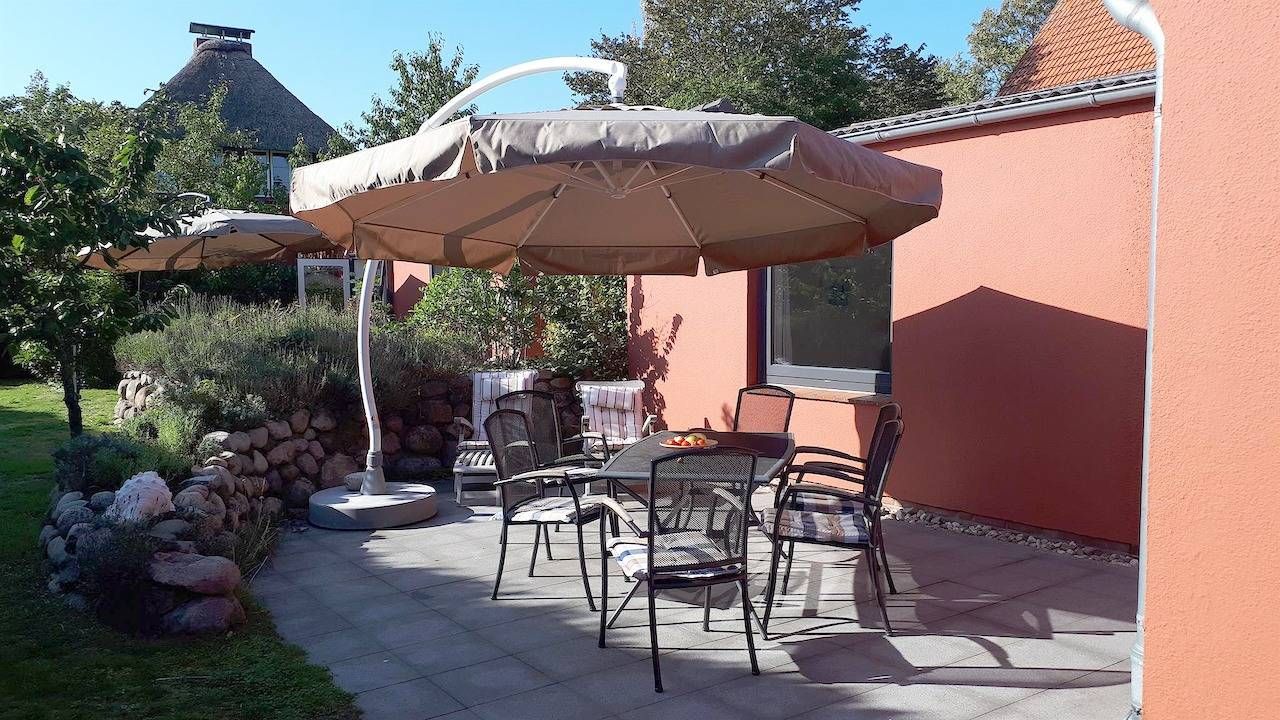 Die Aufteilung vom Haus Libelle ist auf 105 qm Wohnfläche und 35 qm Nutzfläche, Flur, geräumiges Dusch-Bad, 3 Schlafzimmer (mit je 15 qm und 11 qm), moderne Küche mit Backofen, Ceranfeld, Mikrowelle und Spülmaschine, großes Wohnzimmer mit abgetrenntem Essbereich (34 qm) und separatem Ausgang zur Gartenterrasse. Herzlich Willkommen im Haus Libelle, einem komfortablen,140 qm großen Ferienhaus für bis zu 6 Personen, mitten im historischen und doch moderenen Ortsteil Dorf einer ruhigen Seitenstraße gelegen. Im Haus erwarten Sie 3 Schlafzimmer, ein großer Wohn- und Essbereich sowie eine doppelzeilige Küche mit Komplettausstattung ( Spülmaschine, Ceranfeld, Backofen, Mikrowelle, Kaffemaschinen, Wasserkocher, Toaster u.a.). Nach Süden hin, vor dem Wohnzimmer liegt der mit Friesenwall angelegte Garten mit großer (25 qm) Terrasse. Ein TV-Gerät, Internetradio (mit Bluetooth und CD), WLAN und Parkplatz stehen Ihnen zur Verfügung. Ein Babybett und Hochstuhl können gestellt werden. - W-Lan inklusive - PKW Parkplatz inklusive - dazubuchbar: Bettwäsche pro Person 12,50 € und Handtücher (1 Duschtuch und 2 kleine Handtücher) 7,50 € pro Person. Sie können die Wohnung ab 16:00 Uhr beziehen und am Abreisetag bis 10:00 Uhr nutzen