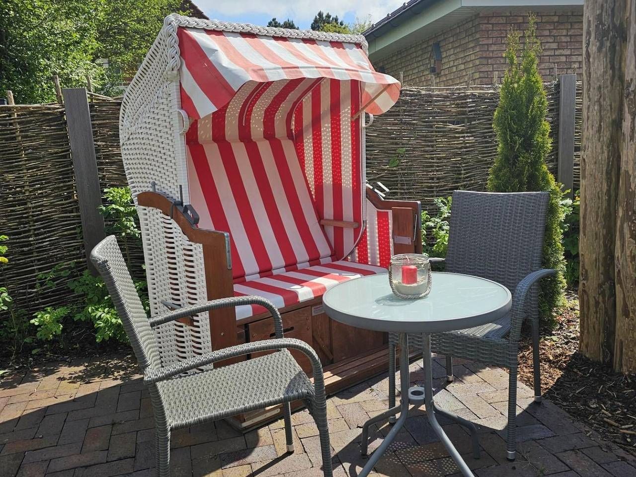 Neubau aus 2020 in ruhiger, zentraler Lage im Ortsteil Dorf, unweit von Deich und Dünen. Im Umkreis von etwa zehn Gehminuten erreichen Sie das Dorfzentrum mit Kirche Reetdachhäusern, Geschäften und Restaurants, den Süd-Strand, den Westküstenpark, das Bernstein- und Heimatmuseum. Ein Reiterhof, Golfplatz und die Surfschule sind auch nicht weit entfernt. Tiere können bei uns nicht wohnen. Alle Wohnungen befinden sich im Obergeschoss. Zu jeder Wohnung gehört eine im gartenliegende Terrasse. Die Wohnung ist ca. 35 qm groß, im Obergeschoss gelegen und bietet Platz für zwei Personen. Sie umfasst eine Wohnküche, von der ein Flur abgeht. Von dort erreicht man das Badezimmer sowie das Schlafzimmer. Der Wohnbereich ist mit einer Couch, einem Tisch und einem Korbsessel ausgestattet. Der Fernseher verfügt über einen Magenta®-TV-Anschluss. Die Küche im kombinierten Wohn- und Essbereich der Lilli lädt mit ihrer den Raum unterteilenden Theke zum gemeinsamen Kochen ein. Sie verfügt über Geschirrspüler, Kühlschrank mit Tiefkühlfach, 4-Plattenherd mit Backofen, Mikrowelle, Kaffeemaschine, Toaster und Wasserkocher. Im Küchenbereich ist ein Esstisch mit zwei Stühlen vorhanden. Die bodentiefen Fenster vor dem Esstisch bringen viel Licht hinein und durch das Öffnen sitzt man bereits beinahe im Freien. Im Schlafzimmer befinden sich ein Doppelbett (1,80 x 2,00 m), ein Kleiderschrank und eine Kommode sowie ein Wecker. Das Bad ist mit Dusche und WC ausgestattet, ein Haartrockner ist vorhanden. Eine zur Wohnung gehörende kleine Terrasse im hinteren Garten mit Strandkorb, Tisch und zwei Stühlen bietet einen Rückzugsort, wenn es mal nicht zum Strand gehen soll. Auch gemütlichen Grillabenden steht dort nichts im Wege. Ein Grill befindet sich im Schuppen. Fahrräder können in einem Radständer oder auch im Fahrradschuppen abgestellt werden. Eine Lademöglichkeit für E-Bikes ist im Fahrradschuppen ebenfalls vorhanden. In der Wohnung und auf der Terrasse ist WLAN möglich. Ferner ist der Ferienwohnung ein Stellplatz auf dem Grundstück zugeordnet.