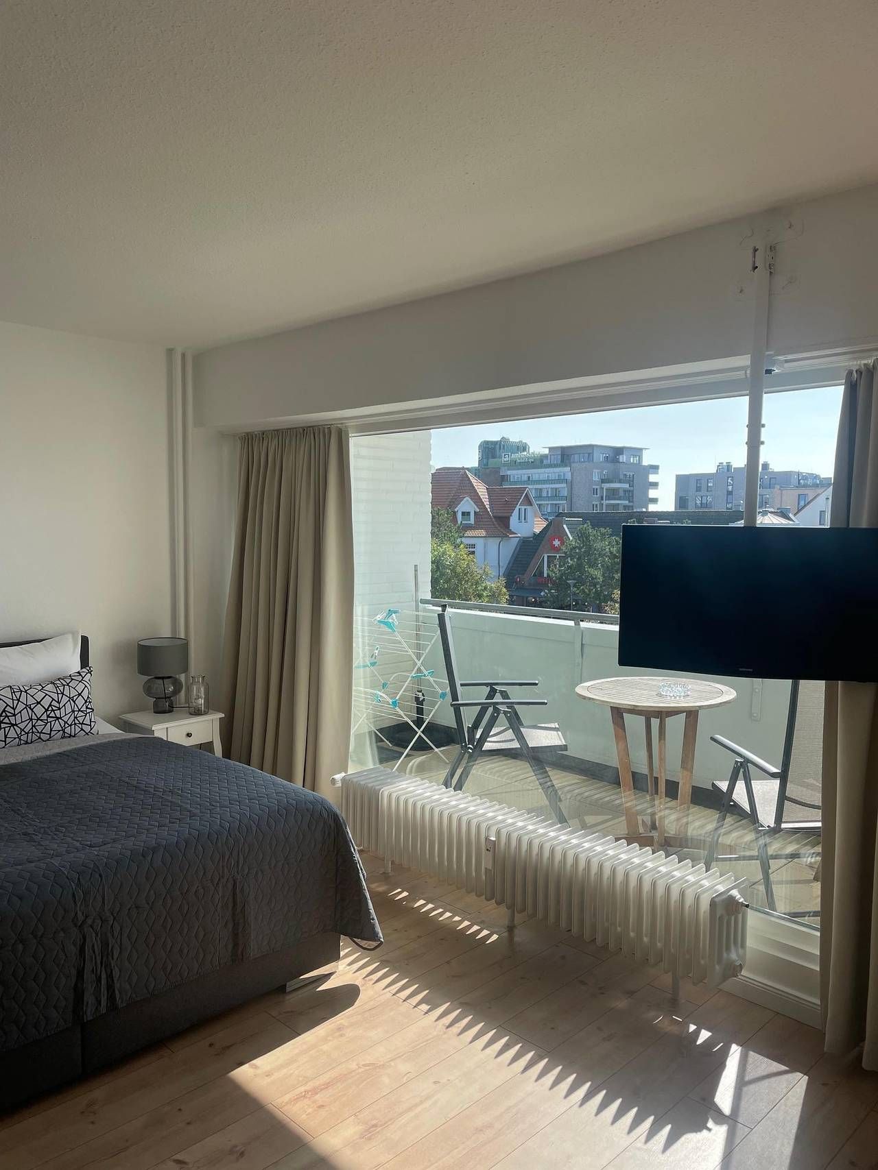 Luv und Lee | Apartment 18 Ferienwohnung für 2 Personen | max. 1x Haustier erlaubt | 1 Zimmer - 40 m² Wohnfläche Schöne Wohnung im 2. Stock gelegen mit einen Wohn-Schlafraum in dem sich eine helle Schrankwand befindet mit...