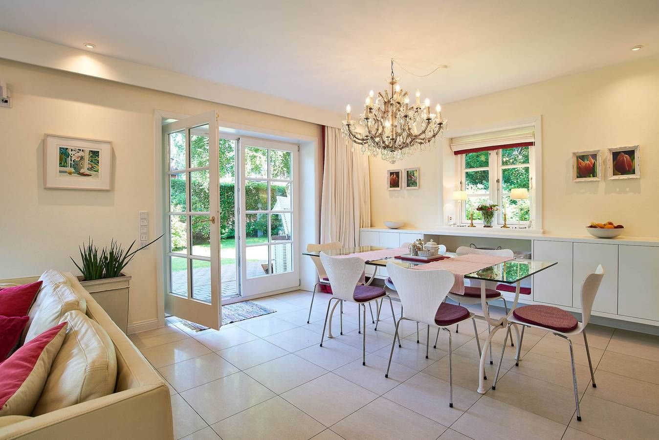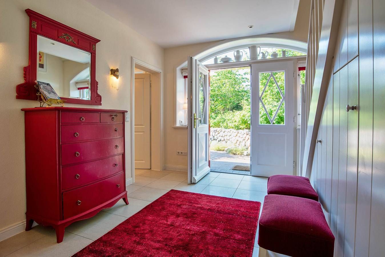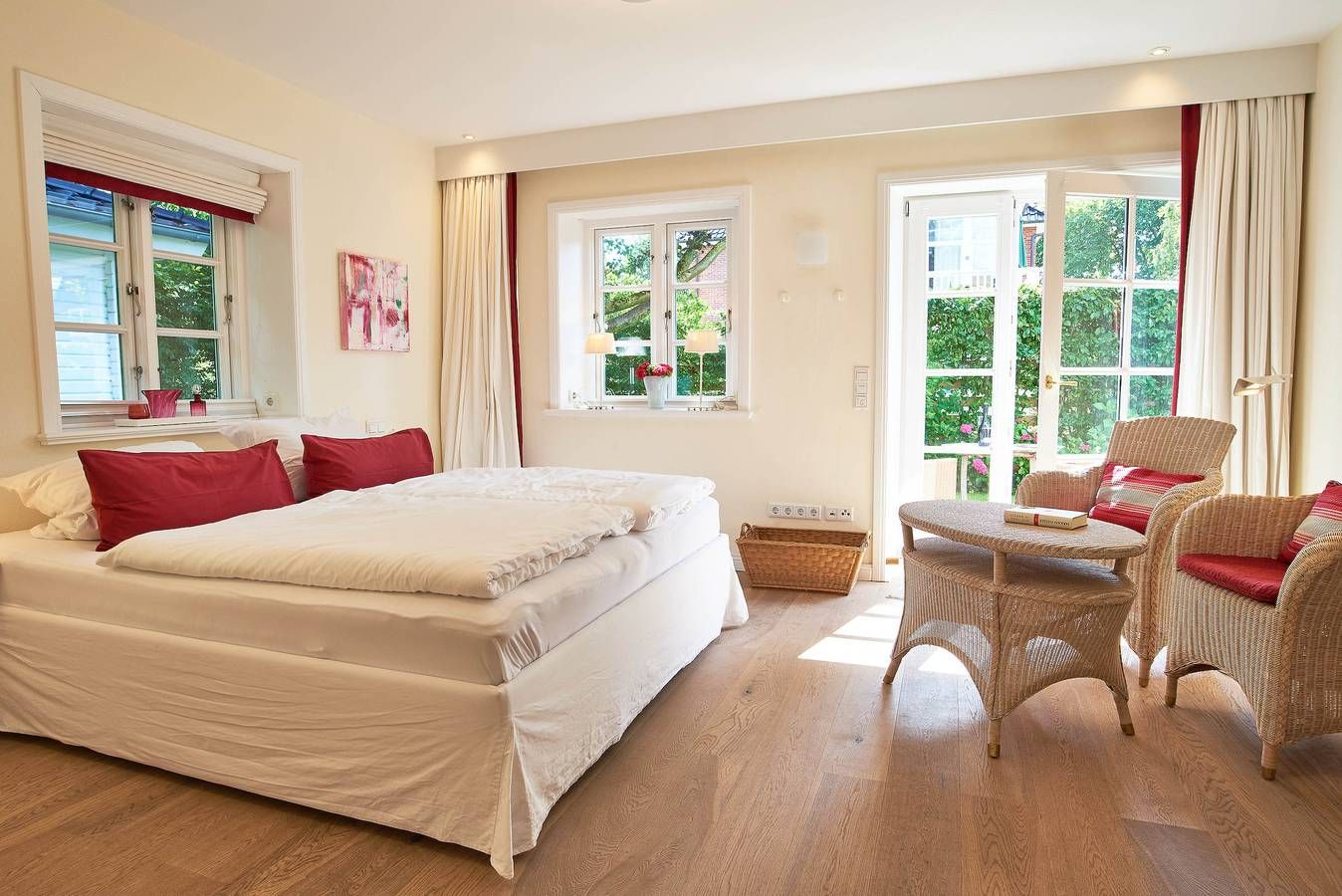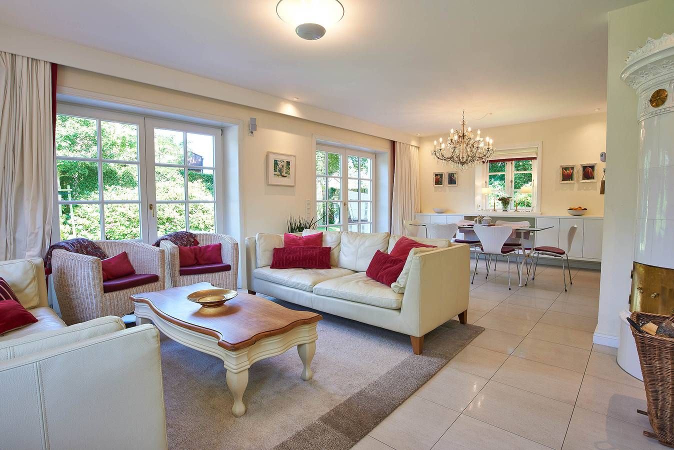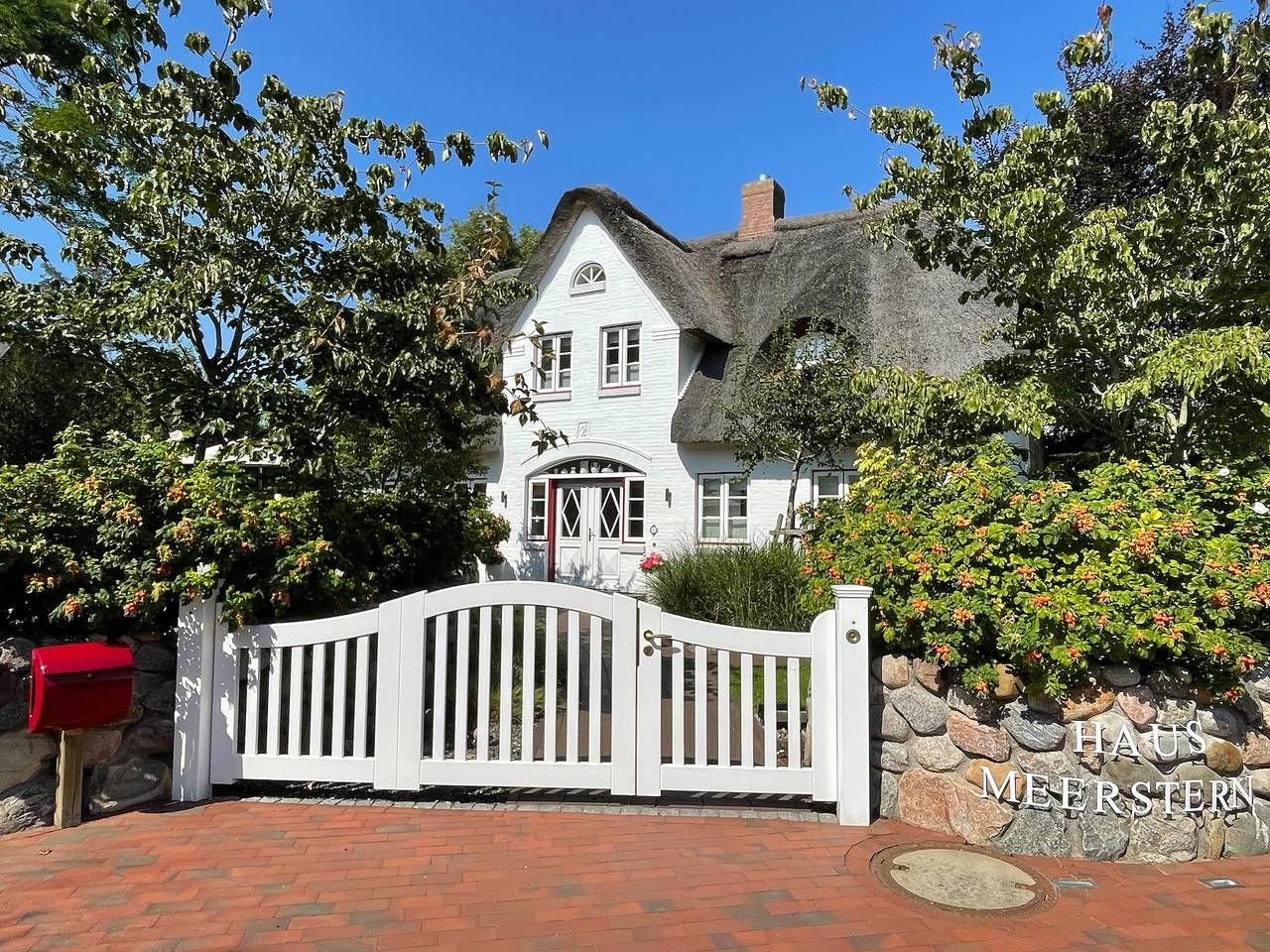 Entdecken Sie das versteckte, märchenhaft im Herzen von Wyk gelegene Einzelhaus unter Reet, das idyllisch und sehr ruhig in zweiter Reihe nur von Gärten umsäumt auf einem ca. 1.000 m2 großen, eingewachsenen Grundstück liegt. Der wunderschön angelegte Garten bietet durch innere Friesenwälle viel Privatsphäre und durch Illumination am Abend eine außergewöhnliche Atmosphäre. Die stilvolle Einrichtung der Villa ist ein stimmiger Mix aus modernen Möbeln und antiken Einzelstücken. Genießen Sie die exklusiven Bäder und den Besuch in der geräumigen Gartensauna. Sie werden sich sicher gern an die gemütlichen Abende vor dem historischen Kachelofen im Wohnzimmer erinnern. Auch zwei der geräumigen Schlafräume sind mit je einem Panoramaofen ausgestattet. Nur ein kurzer Fußweg führt Sie zu den Einkaufsmöglichkeiten und der Promenade mit Badestrand, Bars und Cafes.