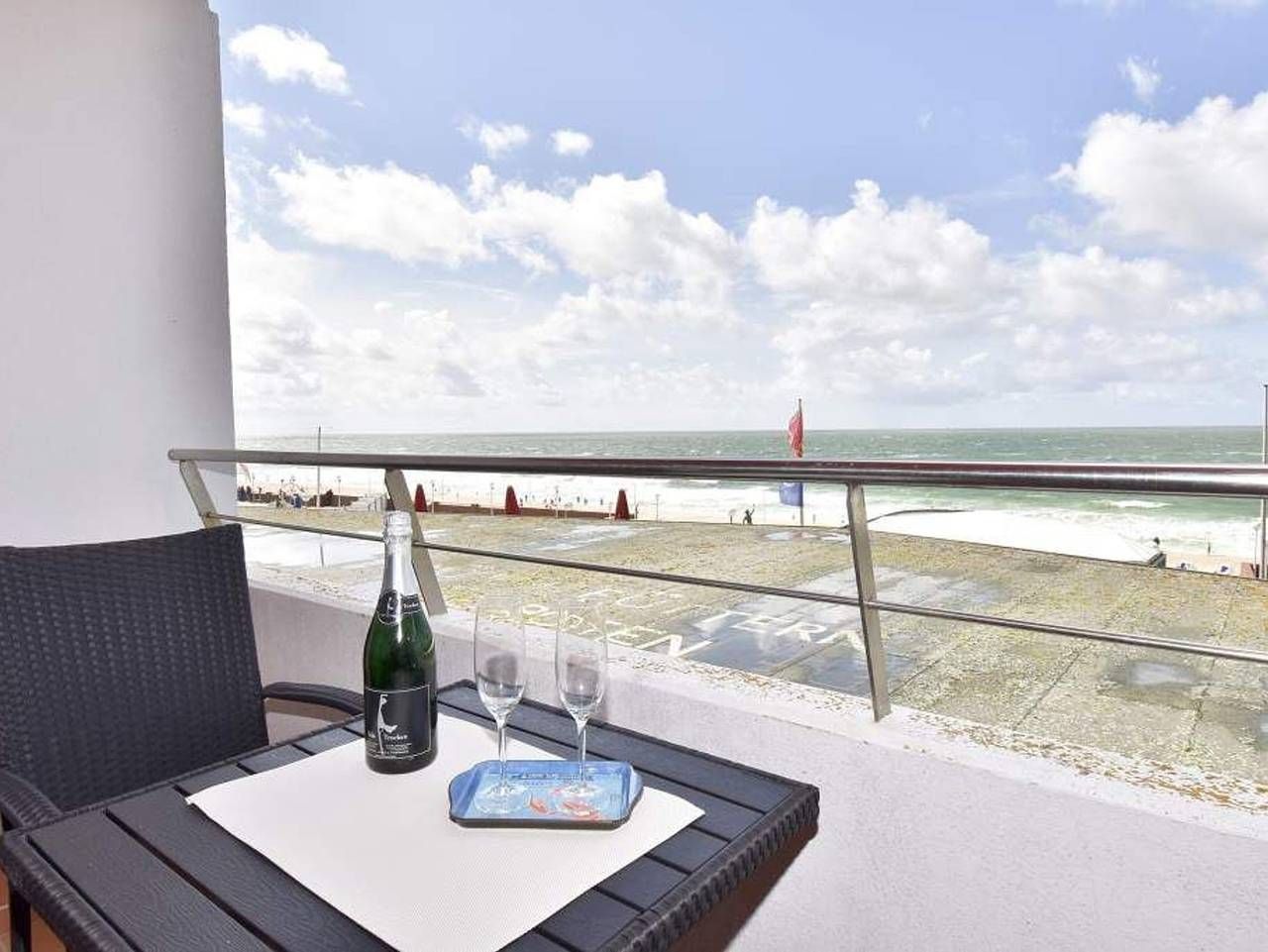 Fantastischer Meerblick direkt am Strand! Hochwertig ausgestattete 1-Zimmer-Nichtraucher-Ferienwohnung (ca. 34 qm) in der 1. Etage zur Seeseite mit Westloggia und Meerblick (Nachmittagssonne, mit Balkonmöbeln und Auflagen) ideal...