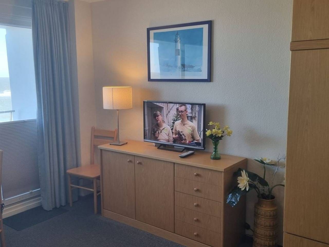 Willkommen im Haus Metropol, Ihrer perfekten Ferienwohnung auf der idyllischen Insel Sylt! Diese charmante Unterkunft im 5. Stock , Westen bietet auf 30 m² alles, was Sie für einen unvergesslichen Aufenthalt benötigen. Ideal für Paare oder Alleinreisende, die eine entspannte Auszeit am Meer suchen, lädt unser kleines Paradies zum Wohlfühlen und Entspannen ein. Die gut ausgestattete Ferienwohnung ist sowohl modern als auch gemütlich gestaltet und besticht durch einen wunderschönen Meerblick, der Ihnen jeden Morgen ein Lächeln ins Gesicht zaubern wird. Sie können den Tag auf Ihrem Balkon beginnen, während Sie die kühle Meeresbrise genießen und den Klang der Wellen hören. Das Wohnzimmer ist mit einem komfortablen Sofa ausgestattet, ideal für gemütliche Abende oder entspannte Lesestunden. Ein 25-34 Zoll Fernseher sorgt für Unterhaltung an regnerischen Tagen. Die geschlossene Küche ist mit einem Herd, Kühlschrank, Mikrowelle, Kaffeemaschine, Toaster und allen notwendigen Küchenutensilien ausgestattet, um köstliche Mahlzeiten zubereiten zu können. Genießen Sie Ihre Speisen im Essbereich, der Platz für eine gemeinsame Mahlzeit bietet. Die Ferienwohnung ist zudem mit einem modernen Bad ausgestattet, das über eine Badewanne, ein Waschbecken, WC und einen Kosmetikspiegel verfügt. Die praktische Ausstattung, wie ein Haartrockner, Bügeleisen und Bügelbrett, Wäsche- und Geschirrhandtücher sowie ein Wäscheständer machen Ihren Aufenthalt noch angenehmer. WLAN ist ebenfalls im gesamten Apartment verfügbar, sodass Sie mit der Welt außerhalb der Insel in Verbindung bleiben können. Die kinderfreundliche Atmosphäre macht das Haus Metropol zur idealen Wahl für Familien, die ihren Urlaub in diesem beliebten Reiseziel verbringen möchten. Das Nichtraucher-Apartment sorgt für ein gesundes Raumklima und die ruhige Lage garantiert erholsame Nächte. Zudem steht Ihnen eine Gemeinschaftstrockner- und Waschküchenutzung zur Verfügung, falls Sie Ihre Wäsche während Ihres Aufenthalts erledigen möchten. Nur wenige Schritte von Ihrer Traumwohnung entfernt, befindet sich der wunderbare Strand von Westerland, wo Sie die Sonne genießen, schwimmen oder einen langen Strandspaziergang unternehmen können. Die Umgebung bietet zahlreiche Freizeitmöglichkeiten, von Radfahren über Wandern bis hin zu zahlreichen Wassersportarten. Die belebte Fußgängerzone von Westerland mit ihren charmanten Cafés, Restaurants und Boutiquen ist ebenfalls schnell zu erreichen, sodass Sie das inseltypische Flair genießen können. Lassen Sie den Alltag hinter sich und gönnen Sie sich eine Auszeit im Haus Metropol App.103. Schaffen Sie sich unvergessliche Erinnerungen auf Sylt und erleben Sie die Schönheit und die vielfältigen Möglichkeiten dieser einzigartigen Insel. Buchen Sie jetzt Ihren Traumurlaub und freuen Sie sich auf erholsame Tage am Meer! Seeseite
