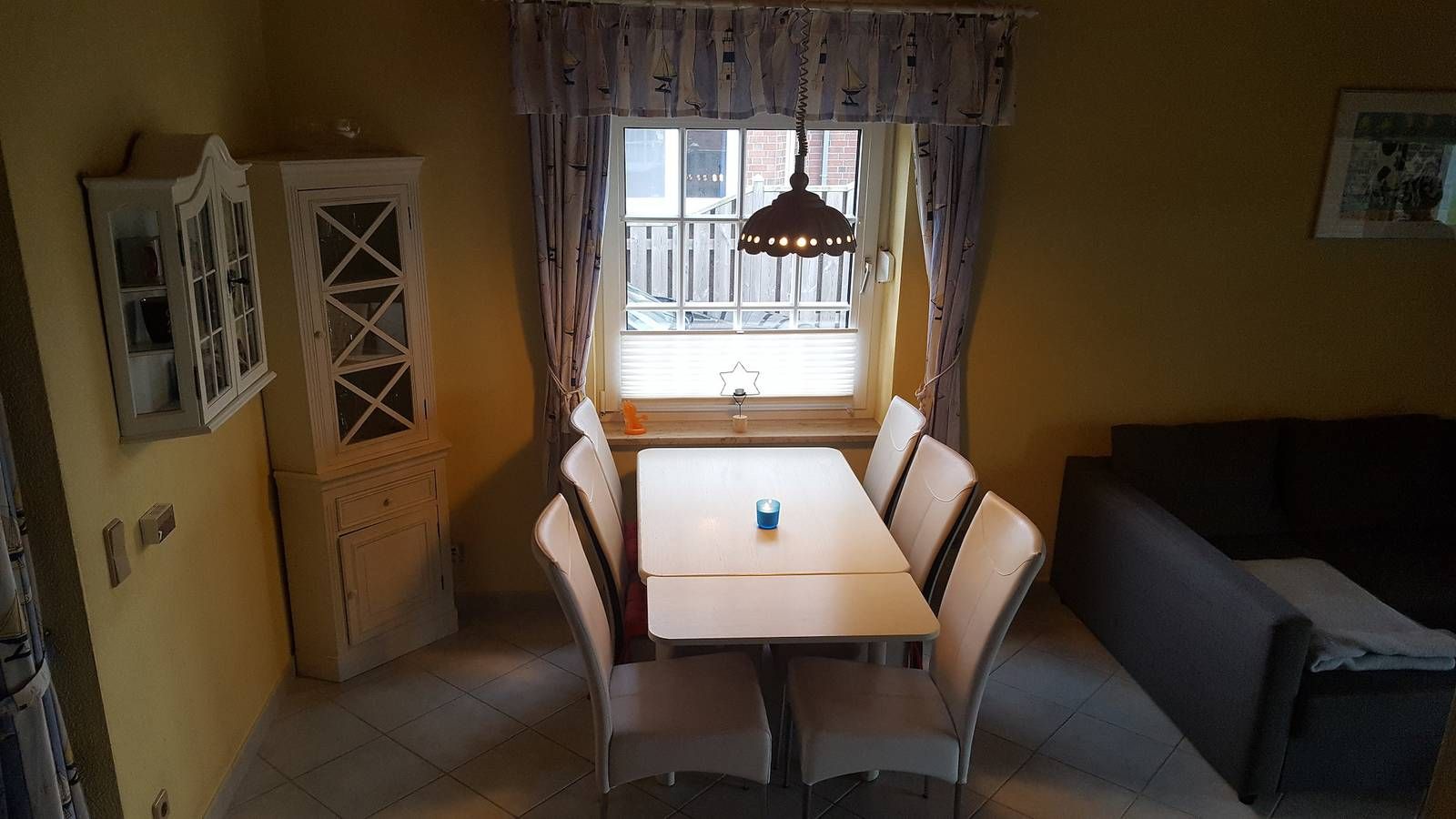 Das "Haus Michel" ist als Doppelhaushälfte am Rande des Kurgebietes Nordstrand, ca. 300 Meter von der Nordsee entfernt, ca. 100qm groß und für 2 bis 6 Personen geeignet. Haustiere sind willkommen. Im Erdgeschoss befinden sich ein Flur mit Garderobe, ein modernisiertes Gäste-WC mit Dusche, eine Küche, ein Hauswirtschaftsraum und ein geräumiges Wohnzimmer mit separatem Wohn- und Essbereich. Die Küche besteht aus einer komplett ausgestatteten Einbauküche mit Kühlschrank inklusive Gefrierfach, Geschirrspülmaschine, Backofen, Cerankochfeld und Mikrowelle. Im Hauswirtschaftsraum steht eine Waschmaschine. Im Essbereich steht ein ausziehbarer Tisch mit 6 Stühlen. Im Wohnbereich kann man es sich auf der Couch, dem Sessel und zweit Kinderhockern gemütlich machen. Zwei bequeme Stuhlsessel können dazugestellt werden. Des Weiteren gibt es einen Ofen, einen 40 Zoll Flachbildschirm, einen DVD Player, eine Stereoanlage und eine Playstation 1. Im Schrank befinden sich diverse Gesellschaftsspiele, ein Schachcomputer und Puzzle. Im ganzen Haus gibt es W-Lan. Vom Wohnbereich erreicht man eine für sechs Personen möblierte, windgeschützte, überdachte Terrasse. Vom Garten aus hat man einen wunderschönen Panoramablick über die Felder zum Deich. Außerdem steht im Garten ein Grillkamin. Im Obergeschoss befinden sich drei Schlafzimmer, zwei mit einem Doppelbett und ein weiteres mit zwei Einzelbetten. In jedem Schlafzimmer steht ein Kleiderschrank. Im großen Schlafzimmer steht ein weiterer Fernseher. Zusätzlich befindet sich im Obergeschoss ein weiteres Badezimmer mit Dusche und WC. In beiden Badezimmern ist jeweils ein Fön vorhanden. Für Fahrzeuge steht am Haus eine Garage bereit. Zwei weitere Autos können auf der Auffahrt davor geparkt werden. Das Haus befindet sich nur 300 Meter vom Deich und Kurhaus entfernt, also direkt am Weltkulturerbe Wattenmeer. Auf der neu geschaffenen Promenade auf dem Deich können sie kilometerweit mit dem Fahrrad fahren, wandern oder einfach Ihren Blick in die Ferne schweifen und die Seele baumeln lassen. Der Hafen ist ca 1 km entfernt. Von dort aus können sie mit dem Schiff zu den Halligen, nach Amrum, Pellworm oder Sylt fahren. Außerdem können Sie an einer Wattwanderung teilnehmen oder das Naturschutzgebiet Beltringharder Koog besuchen und Vögel beobachten. Vor Ort ist Frau Natalie Kliks-Lorenzen als Anspprechpartnerin für Sie da. Anreisen Die Anreise mit dem Auto erfolgt von Hamburg bis Husum über die A 23 bis Heide, ab dort wird die A23 zur B5 bis Husum, von dort auf der Umgehungsstraße Richtung Niebüll bis Hattstedt, am Ortsausgang von Hattstedt fahren Sie links auf der Wobbenbüller Chaussee (K 81) Richtung Nordstrand. Am Ortsausgang von Wobbenbüll biegen Sie rechts ein in die L30 und folgen der Straße. Wenn Sie mit der Bahn anreisen möchten, ist der Hauptbahnhof Husum Ihr Zielbahnhof. Von dort gelangen Sie mit dem Anschlussbus (Nr. 1047) "Richtung Nordstrand Fähranleger" nach Nordstrand. An der Haltestelle "Norderhafen" steigen Sie aus und sind nach ca. 10 Gehminuten am Ferienhaus. Playstation 1, Gesellschaftsspiele, Puzzel, DVD's, Bücher, Comics, Inlineskater. 300 Meter entfernt ist ein Kinderspielplatz. 300 Meter entfernt ist ein Kurhaus mit Schwimmbad und Sauna In der Hochsaison hat der fußläufig erreichbare Bäcker geöffnet. ---------------------------------------- Kurtaxe 2,20 € pro Erwachsener Person pro Tag