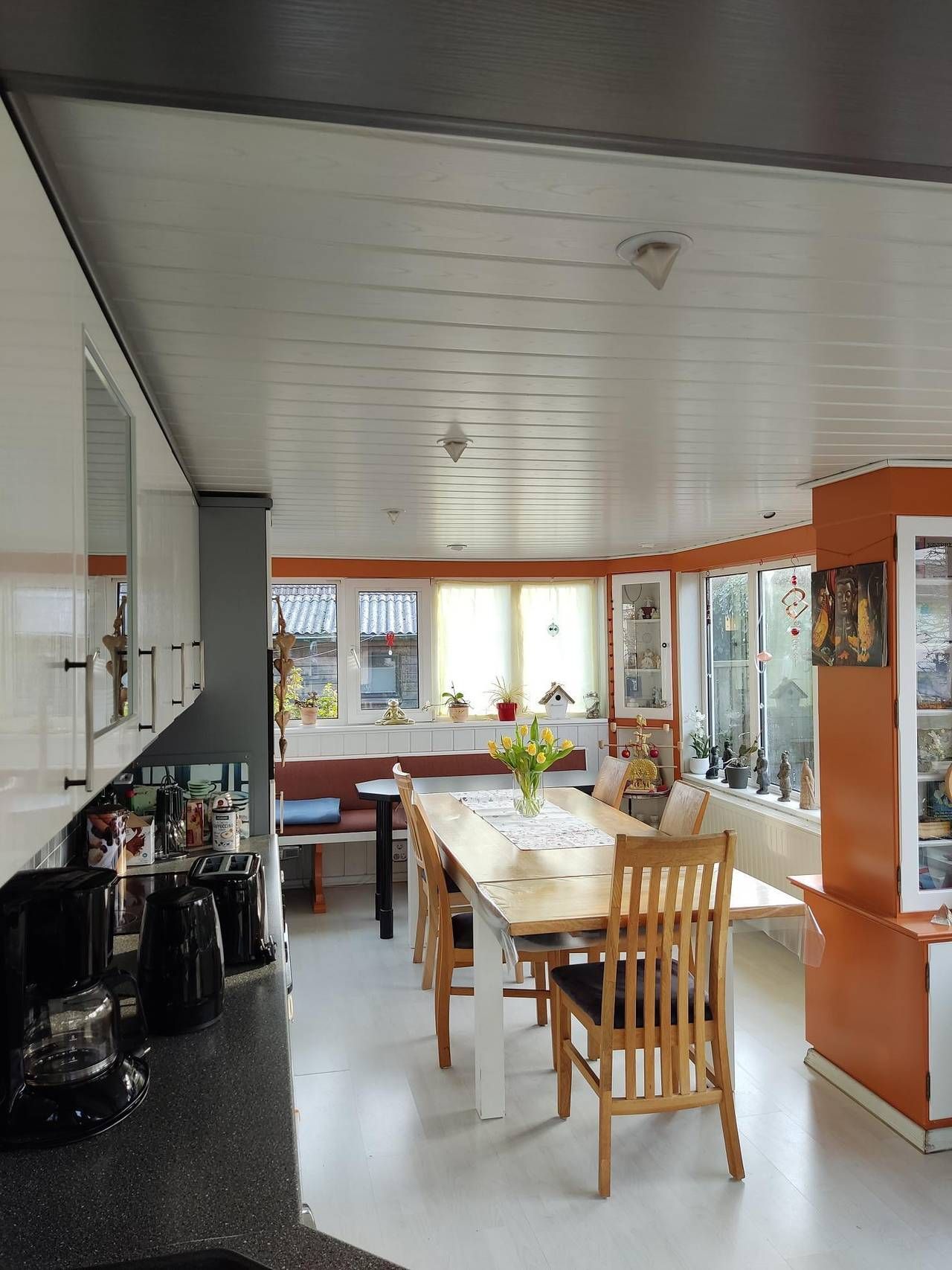Einzelzimmer Nr.3 befindet sich zusammen mit den anderen beiden Einzelzimmern und dem Gemeinschaftsbad im OG des Hauses. Es ist ausgestattet mit einem großen Fenster, einem Sessel, Tisch und Stuhl, Flachbild-TV, WLAN, Geschirr,...