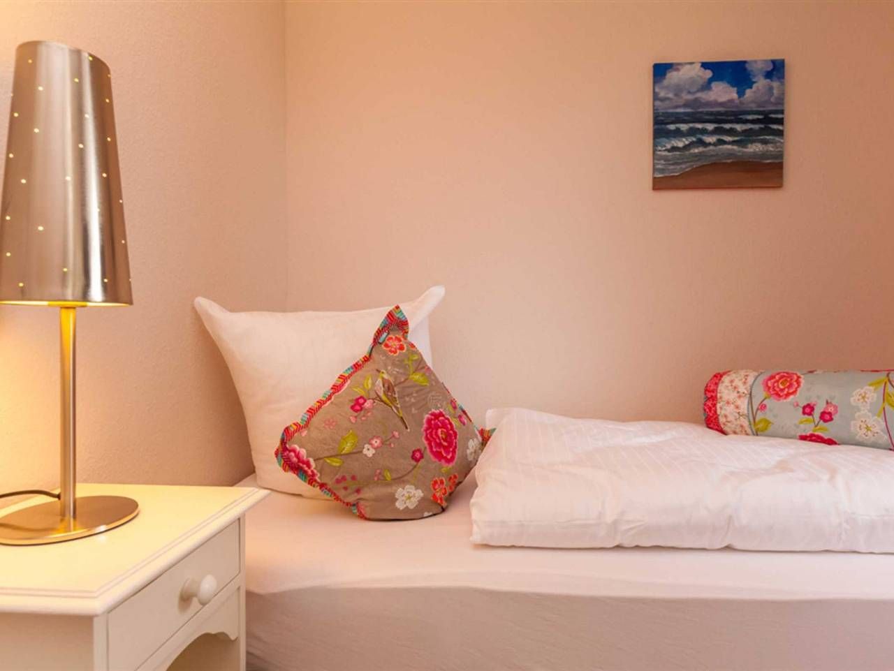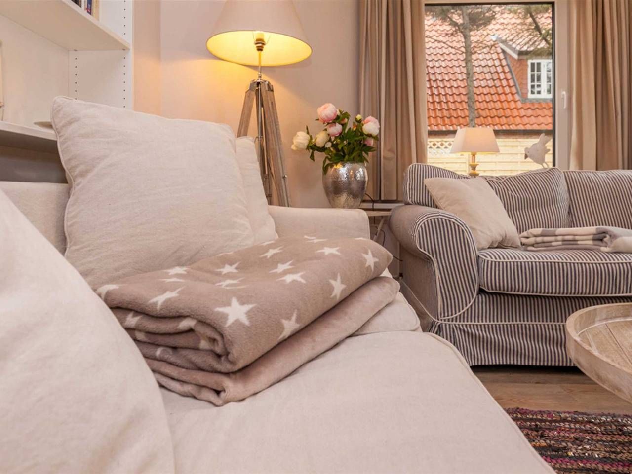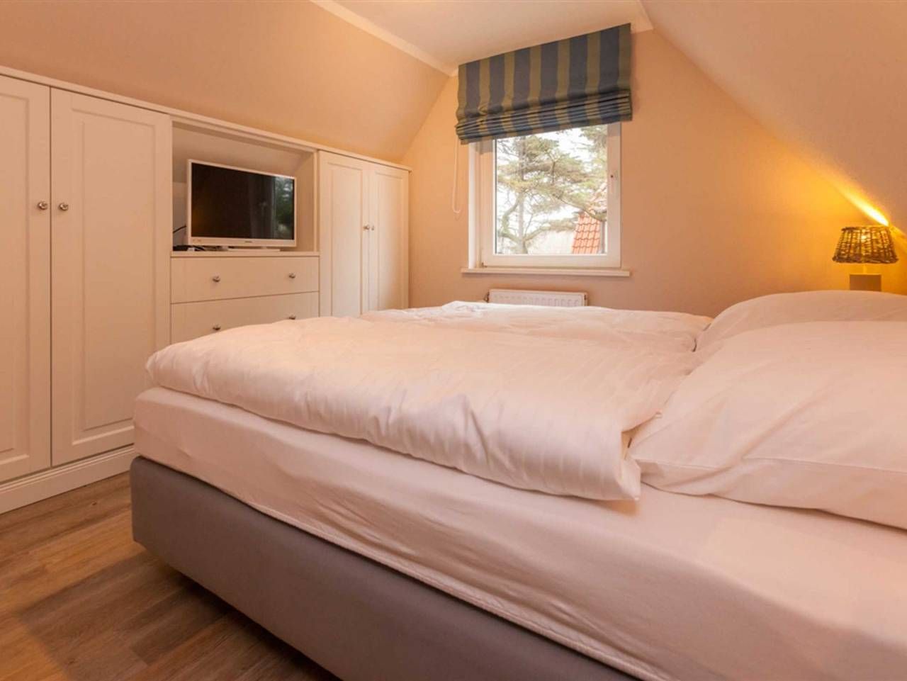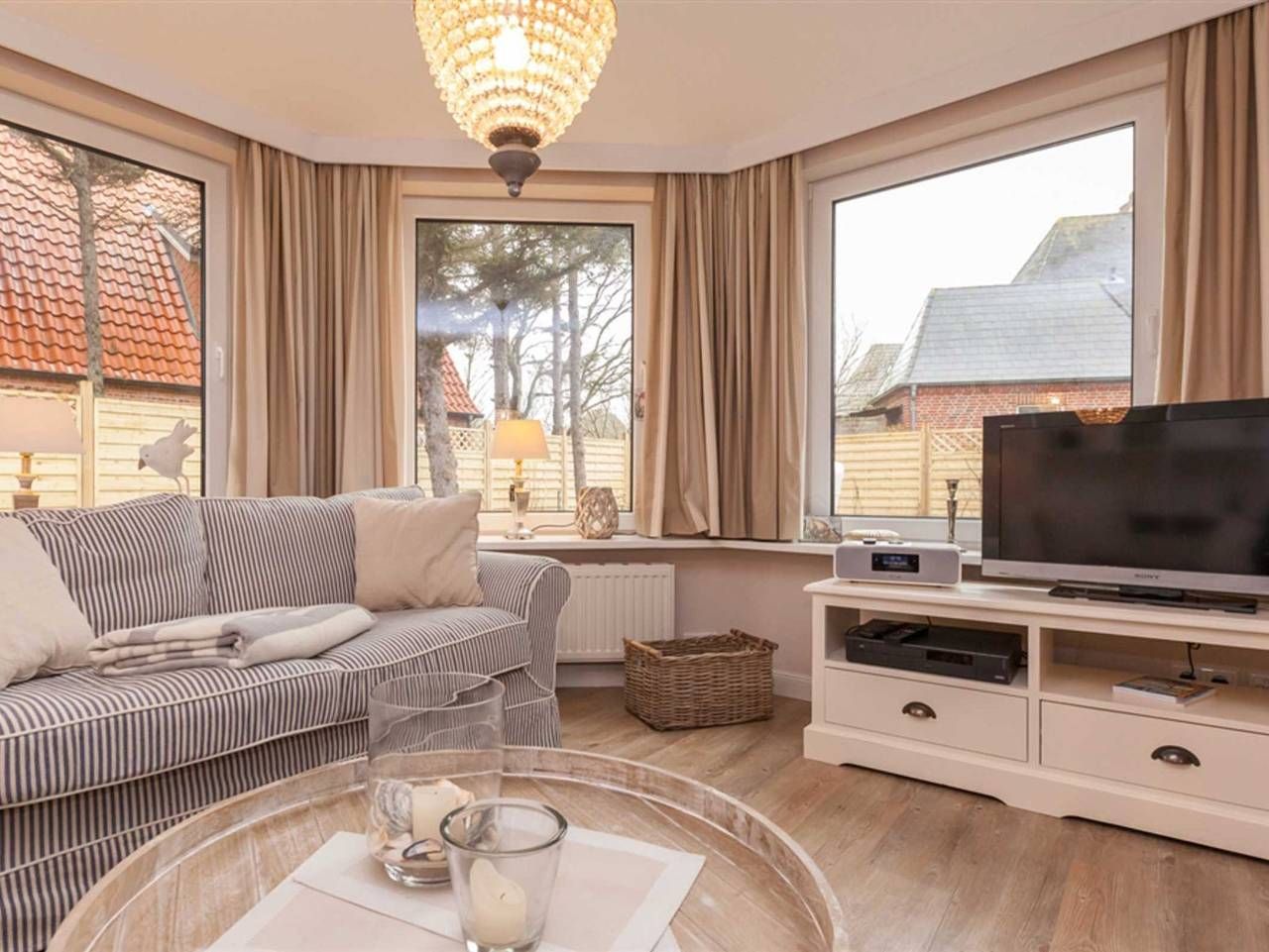 Aus diesem kleinen Juwel, dem Haus Möwennest unter Reet wollen Sie gar nicht wieder ausziehen. Wunderschönes Einzelhaus mit Reetdach und eingezäuntem und sehr schönem Garten in unmittelbarer Strandnähe. Zur Innenstadt läuft man ca. 10 Minuten. Das Haus verfügt über 3 Schlafzimmer, 2 davon jeweils mit Doppelbett (Boxspringbett Maße 160cm x 200cm) und jeweils einem Flachbildfernseher mit Kabelanschluss. Das dritte Schlafzimmer verfügt über ein Einzelbett (Boxspringbett Maße 90cm x 200cm). Das elegante Badezimmer und das Gäste-WC sind schlicht gehalten und passen sich dem hellen und freundlich gehaltenem Farbschema des restlichen Hauses an. Das Wohnzimmer mit I-Pod- Dockingstation und die separate Küche mit Backofen, Ceranfeld, Kühlschrank mit Gefrierfach, Geschirrspüler und allen wichtigen Küchenutensilie runden mit Ihrer stilvollen Einrichtung das Gesamtbild des Hauses perfekt ab. Erlaubt ist maximal 1 Haustier!!!! Boy-Truels-Str. 8, Westerland Alle volljährigen Mitreisenden sind kurabgabenpflichtig.