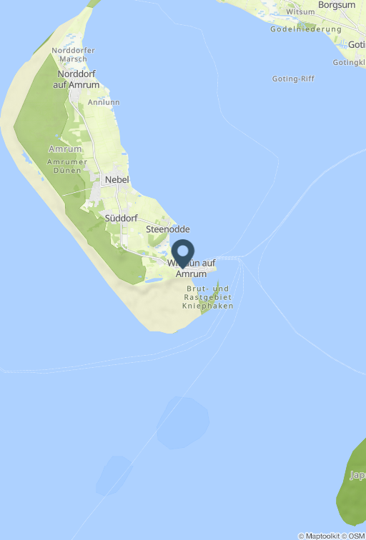 Kurzbeschreibung: Die Ferienwohnung im Obergeschoss eines 1998 erbauten Hauses ist modern und gemütlich eingerichtet. Lagebeschreibung: Die Ferienwohnung liegt in einer ruhigen Nebenstraße. Zum Zentrum sind es ca. 500 m, zum AmrumSpa Gesundheitszentrum und zum Schwimmbad ca. 800m. Der Strand liegt ca.300m entfernt. Ausstattungen: Das ca. 36m² große Nichtraucher-Apartment für zwei Personen, liegt im Obergeschoß. Es ist ausgestattet mit einem Wohnzimmer und einem Schlafzimmer, TV, Telefon, WLAN und einer separaten Küche sowie einem Badezimmer mit Dusche, WC und Föhn. Für Allergiker geeignet. Außenbereich: Allen unseren Gästen stehen die Terrassen/Garten mit Gartenmöbeln und Liegewiese, sowie Strandkorb und Grill zur Verfügung. Besonderes: Alle Preise enthalten Bettwäsche, Handtücher, Endreinigung. WLAN und Telefon (ausgehende Gespräche nur ins deutsche Festnetz ohne Sonderrufnummern) inklusive. Die Kurabgabe ist nicht im Preis enthalten. Mit Rücksicht auf unseren allergischen Gäste sind in unseren Nichtraucher-Ferienwohnungen leider keine Haustiere gestattet. Allgemeine Informationen: Anreise ab 17:00 Uhr Abreise bis 10:00 Uhr Zusätzliche Preisinfos: Die Kurabgabe ist nicht im Preis enthalten. Unter 7 Übernachtungen ist zusätzlich zum Mietpreis ein Aufschlag für Kurzurlaub zu entrichten. Nach der Buchung stehen Ihnen zusätzlich die Zahlungsmöglichkeiten Banküberweisung, Kreditkarte, Sofortüberweisung und Google/Apple Pay zur Verfügung. Weitere Informationen entnehmen Sie bitte Ihrer Buchungsbestätigung. ---------------------------------------- Die Kurabgabe ist nicht im Preis enthalten. Unter 7 Übernachtungen ist zusätzlich zum Mietpreis ein Aufschlag für Kurzurlaub zu entrichten.