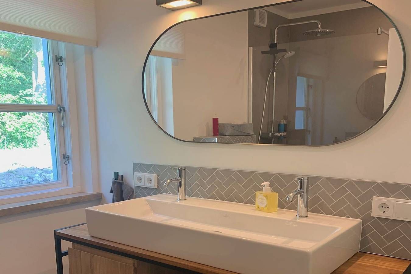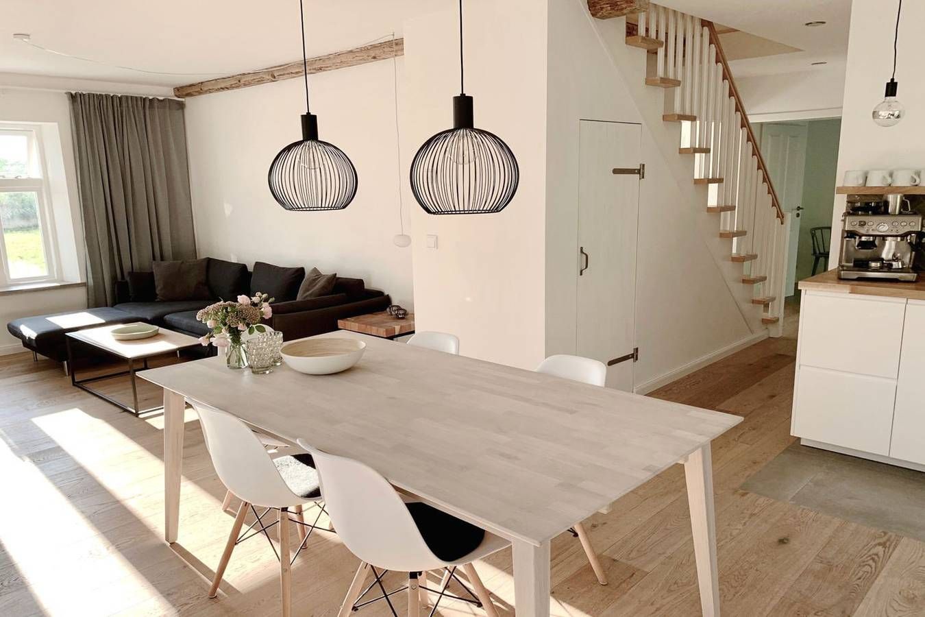 Unser Warfthof Wollatz ist vielfältig. Für die Kinder bieten sich diverse Spielmöglichkeiten auf dem weitläufigen Hofgelände. Für die Eltern haben wir gemütliche Sitzplätze, der Strandabschnitt am Schwimmteich und unser Saunahaus mit Sonnenterrasse laden zum Verweilen ein. Während die Eltern ihren Kaffee genießen oder ein gutes Buch im Strandkorb lesen, genießen die Kinder das Gefühl von Freiheit, toben auf dem Strohboden, flitzen mit den GoKarts über den Hof oder begeistern sich bei einer Treckerfahrt mit Bauer York. Wir ermöglichen den natürlichen Umgang mit vielen Tieren und bieten euch ein breites Reitangebot für kleine und große Reitbegeisterte. EINE GROßE ERLEBNISWELT FÜR KLEINE ENTDECKER - EINE KLEINE OASE AUCH FÜR GROßE DAS HAUS NORDSEESTIL ° 100 qm Wohnfläche mit Süd und West Terrasse ° bis 7 Personen + Kleinkind im Elternschlafzimmer ° 1 Elternschlafzimmer mit Boxspringbett (180cm x 200cm) im Untergeschoss ° 1 Elternschlafzimmer mit Boxspringbett (180cm x 200cm) im Obergeschoss ° 1 Kinderschlafzimmer mit Einzelbett (90cm x 200cm) und einem kompfortablen Ausziehbett (140cm x 200cm) ° + weiteres Bett auf dem Hochboden im Kinderzimmer ° Kinderbetten und Hochstühle sowie Rausfallschutz vorhanden ° gemütlicher Wohnbereich mit Essecke, Sofa, Kaminofen ° Sat und Streaming TV, bluetoothfähiger Lautsprecher mit Radio ° bestens ausgestattete Küche mit Induktionsherd, Geschirrspüler und Kühl- & Gefrierkombination ° Espressomaschine,Toaster, Wasserkocher, Mixer, Pürierstab ° Geschirrhandtücher, Spüli, Wischlappen, Startertabs für den Geschirrspüler und Essig/ Öl vorhanden ° Duschbad mit Regendusche, WC, Waschtisch, Föhn und Kosmetikspiegel ° Gäste WC im Flur ° Handtücher und Bettwäsche inklusive ° WLAN ° eigene Außensauna - Saunahandtuchset mit Bademantel stellen wir gerne für 5€ zur Verfügung ° Strandkorb, Gartenmöbel und Grill vorhanden Das Haus ist ein Nichtraucherhaus.