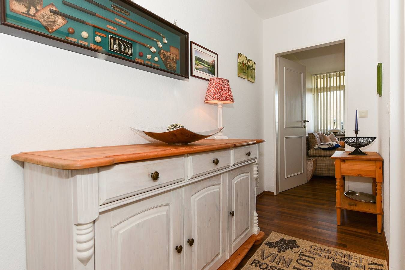 Willkommen im Haus Oland – Ihrem perfekten Urlaubsdomizil auf Föhr! Die Wohnung Nr. 15 ist ein gemütliches 2-Zimmer-Apartment, das Ihnen alles bietet, was Sie für einen erholsamen Aufenthalt benötigen. Mit ihrem Westbalkon genießen Sie einen wunderschönen Blick auf das Meer und traumhafte Sonnenuntergänge – der ideale Ort, um den Tag ausklingen zu lassen. Genießen Sie außerdem kostenfreien Zugang zum Schwimmbad im Haus Uthlande und nutzen Sie gegen eine kleine Gebühr auch die Sauna – der perfekte Ort, um sich zu entspannen. Wenn Sie mit dem Auto anreisen, haben Sie die Möglichkeit, Ihren PKW direkt am Haus zu parken. Ab einem Aufenthalt von 10 Nächten ist die Erstausstattung mit Bettwäsche und Handtüchern bereits inklusive, sodass Sie sich um nichts kümmern müssen. Die Wohnung befindet sich in ruhiger Lage, nur wenige Schritte vom Strand entfernt, und überzeugt durch helle Möbel und dunkles Laminat, die für eine gemütliche Atmosphäre sorgen. Im Wohnzimmer können Sie sich auf modernen Komfort freuen: Ein Flachbildschirm und ein DVD-Player sorgen für Unterhaltung, und das Sofa lässt sich mit wenigen Handgriffen in eine zusätzliche Schlafgelegenheit verwandeln. Der Essbereich für drei Personen fügt sich harmonisch in den Raum ein. Vom Wohnzimmer aus gelangen Sie direkt auf den Balkon, von dem aus Sie den Blick auf die Nordsee genießen können. Die separate, kleine Küche ist komfortabel ausgestattet mit Ceranfeld, Spülmaschine, Backofen und Kühlschrank mit Gefrierfach – hier können Sie ganz nach Belieben Ihre Mahlzeiten zubereiten. Das Schlafzimmer ist ein weiteres Highlight: Das gemütliche Doppelbett mit hohem Einstieg und elektrisch verstellbaren Lattenrosten sorgt für erholsamen Schlaf. Ein großer Kleiderschrank bietet Platz für Ihre Urlaubsgarderobe, und auch hier erwartet Sie ein zweiter Flachbildschirm. Vom Schlafzimmer aus haben Sie Zugang zu einem zweiten kleinen Balkon. Das Badezimmer ist mit einer Dusche, einem WC und einem großen Spiegelschrank ausgestattet – hier können Sie sich bestens erfrischen. Kommen Sie nach Föhr und genießen Sie diese komfortable, ruhige Wohnung mit Meerblick und all den Annehmlichkeiten, die Ihren Urlaub unvergesslich machen! Doppelbett mit Komfort-Einstiegshöhe und elektrischen verstellbaren Lattenrosten. 2. kleiner Balkon, erreichbar vom Schlafzimmer aus.