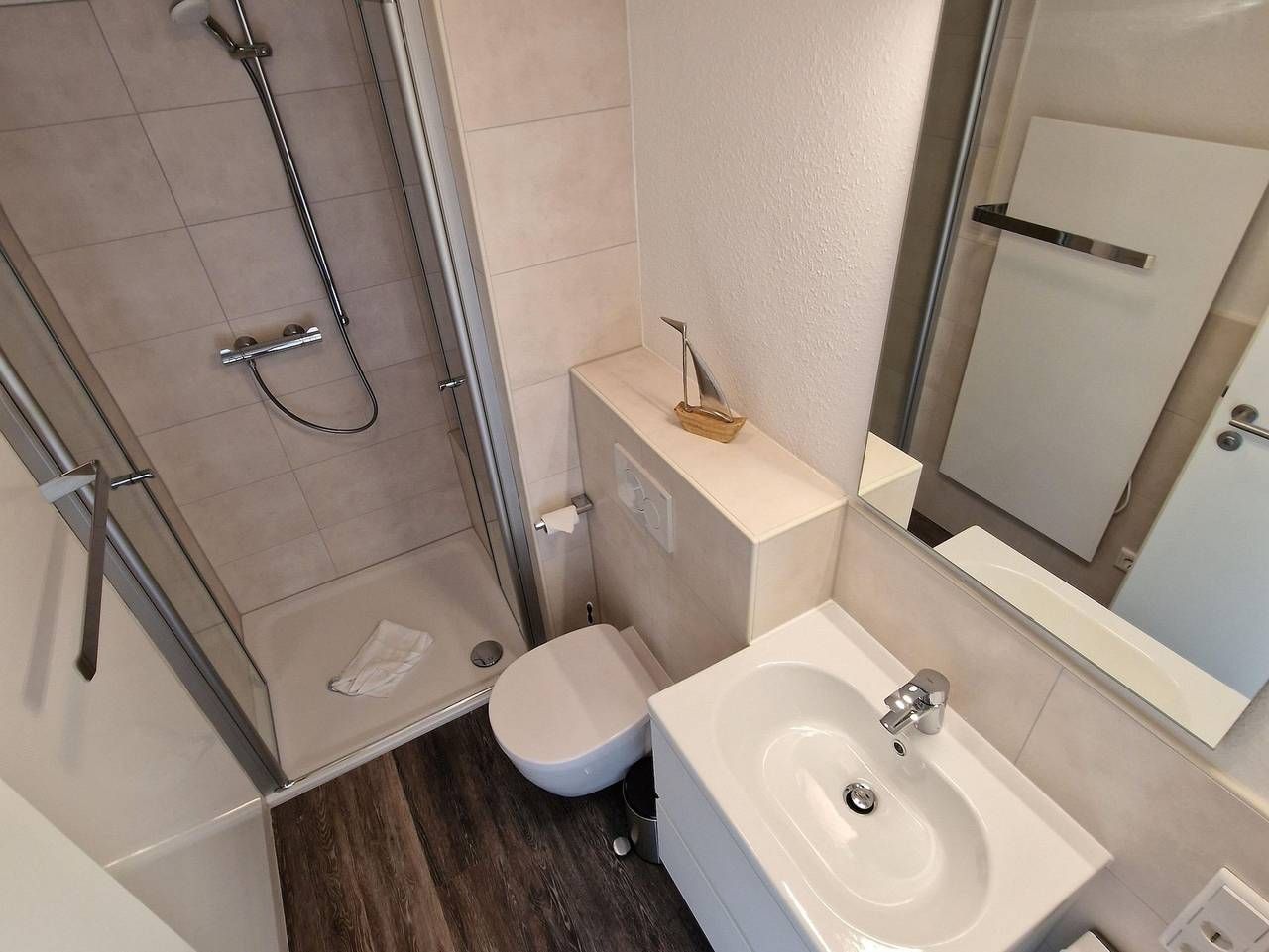 Herzlich Willkommen im Haus Pole Poppenspäler. Die zentral im Bad gelegenen Ferienwohnungen sind ein ideales Urlaubsquartier für erholsame Tage in St. Peter-Ording. Nur wenig Schritte vom Kurzentrum, der Erlebnispromenade, Seebrücke und Dünentherme entfernt. Bummeln Sie durchs Bad, entdecken Sie Gastronnomie und Geschäfte. Schnuppern Sie auf der Seebrücke Nordseeluft und erleben Sie Strand und Meer. Die neu renovierte und geschmackvolle 2-Raum-Ferienwohnung in St. Peter-Bad bietet Ihnen in der 2. Etage Platz für bis zu 4 Personen. Die behaglich ausgestattete Ferienwohnung besitzt neben der Schlafcouch im Wohnzimmer auch 1 Doppelbett im Schlafzimmer. Schnuppern Sie gute Nordseeluft von St. Peter auf dem sonnigen Süd-West-Balkon. Sie möchten ins Internet, kein Problem, WLAN ist hier inklusive. Wohnzimmer: Schlafcouch, Couchtisch, 2 Sessel, Stehlampe, Nachtspeicherofen, TV-Schrank, Kabel-TV, Radio, Esstisch, 4 Stühle, Küchenzeile, Geschirrspüler, 4 Plattenherd, kombinierter Backofen mit Mikrowelle, Dunstabzugshaube, Kühlschrank mit Gefrierfach, Kaffeemaschine, Wasserkocher, Toaster, Geschirr, Kochtöpfe Schlafzimmer: 1 Doppelbett, Nachttisch, Kleiderschrank, Nachtspeicherofen, Staubsauger, Garderobe, Spiegel Bad: Dusche, Waschbecken, WC, Duschkabine Flur: kleiner Vorflur Haustiere erlaubt, jedoch nur 1 Hund bis 40 cm Schulterhöhe, gegen eine Gebühr zusätzlich buchbar