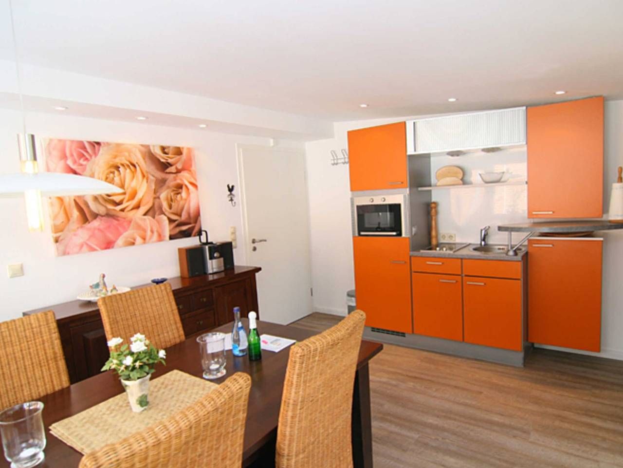 Das Haus Roseneck befindet sich in der so genannten roten Siedlung, im Herzen von Sylt´s sonnigem Süden. Geschäfte und Restaurant´s befinden sich in fussläufiger Entferung. Die Strände sind zu Fuss in 5 Minuten zu erreichen. Geschäfte und Restaurant`s befinden sich in fussläufiger Entfernung. Der ca. 300 m entfernt liegende Weststrand bietet Wasserratten mit seiner Brandung Badespass pur. Der Oststrand befindet sich in ca. 500 m Entfernung. Von der Promenade aus können Sie auf den Leuchtturm, der 1907 erbaut wurde, und die erste Schule beheimatete, sehen. Dort werden seit kurzem auch Ehen in luftiger Höhe und mit Weitsicht geschlossen. Diverse Bänke laden zum Verweilen ein und bieten einen fantastischen Blick auf die Nachbarinseln Amrum und Föhr. Der angrenzende Hafen wird nicht nur von Krabbenkuttern, Muschelfischern, Ausflugsschiffen, Sportbooten und Jachten angelaufen, von Zeit zu Zeit kommen auch immer mal wieder Großsegler, um Schutz vor dem Blanken Hans, wie die Nordsee liebevoll genannt wird, zu suchen. Die Ausflugsschiffe fahren, von April bis Oktober eines Jahres, täglich die Nachbarinseln und Halligen an. Falls Sie nicht so seefest sind, können Sie Kurzseefahrten zur Hörnum-Odde oder zu den Seehundsbänken machen. Eine weitere Attraktion die Kegelrobbe Willi, wie sie liebevoll genannt wird, die in der Hafenecke darauf wartet, dass Sie sie mit einem ( oder auch zwei!) Hering(e) füttern. Die Kioske sorgen nicht nur für das leibliche Wohl der Robbe sondern auch für das Ihre! Unweit des Hafen`s wurde 2008 der neue 18 Loch Linkscourse Golfplatz Budersand, auf dem ehemaligen Gebiet der Pidder-Lüng-Kaserne, erstellt. Von der auf der Düne gelegenen, ehemaligen Radarstation, die jetzt das Restaurant Strönholt beherbergt, können Sie bei einem kulinarischen Mahl, einen unglaublichen Blick auf den Golfplatz, das Wattenmeer, den Hafen, die Nachbarinseln und die Nordsee geniessen. Die Schutzstation Wattenmeer bietet auch mehrmals die Woche Wattwanderungen an. Dort wird dem Gast die Flora und Fauna erklärt und der einzigartige Lebensraum der Tier- und Vogelwelt näher gebracht. Unvergessen ist auch eine Wanderung am Flutsaum um die Hörnum-Odde, die in den letzten Jahren durch die zahlreichen Sturmfluten (Erosion) dramatische Sandverluste zu beklagen hatte. Dort wurde auch 2008 ein versandeter Bunker samt Flakstellung freigespült, der zwischenzeitlich fast vollständig abgetragen wurde. Bei einem Strandspaziergang kann man die Natur(gewalten) pur erleben!!! Gepflegtes 2 Zi.-Appartement im EG mit ca. 48 m², Wohnzimmer mit Doppelschlafcouch, Tisch und 2 Rattansessel, Sat-TV, Kompaktanlage mit CD-Player, Süd-/Westterrasse mit Bestuhlung, Schlafzimmer mit Doppelbett, separate Einbauküche mit Mikrowelle, Esstisch mit Rattanstühlen. Duschbad/WC. Das Appartment ist komplett neu mit Laminat verlegt worden. Die Wohnung wird als Nichtraucherwohnung angeboten, wer rauchen möchte benutzt bitte die Terrasse. Hundehaltung erlaubt, muss jedoch vorher angemeldet sein! Es steht Ihnen WLAN kostenlos zur Verfügung. Wir übernehmen keine Haftung für das einwandfreie Funktionieren des WLAN.