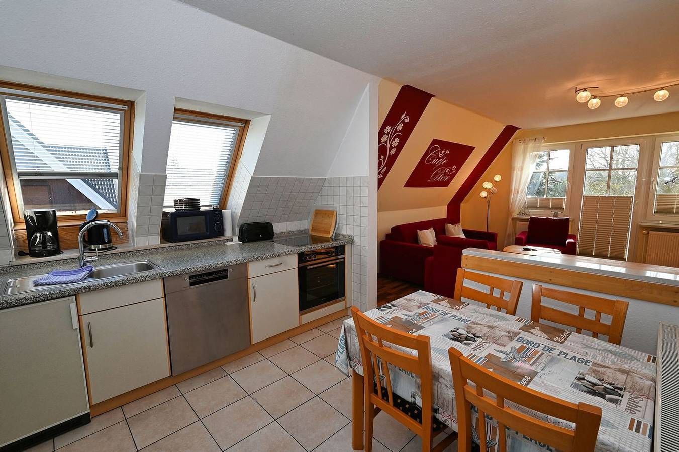Erholen Sie sich nach feinster Küstenmanier: in absolut ruhiger Südlage und mit herrlichem Gartenblick! Die gemütliche 2-Raum-Wohnung ist Teil einer kleinen Wohnanlage und liegt in einem Wohngebiet, umgeben von Einfamilienhäusern. Auf insgesamt 57 Quadratmetern finden in diesem Urlaubsdomizil bis zu vier Reisende Platz. Modern und freundlich eingerichtet gibt es in der Unterkunft alles, was Sie für einen schönen Aufenthalt am Meer benötigen. Die Wohnung unterteilt sich in Flur, Badezimmer, Wohnküche und Schlafzimmer mit Doppelbett. Das Schlafsofa im Wohnzimmer bietet zwei weitere Schlafgelegenheiten. Im ersten Obergeschoss gelegen steht Ihnen außerdem ein Balkon zur Verfügung. Morgens den ersten Kaffee mit Nordseewirbel um die Ohren genießen, abends einen langen Strandtag ausklingen lassen – so schön! Lust auf Meer? Worauf warten Sie noch? Wir freuen uns sehr auf Sie.