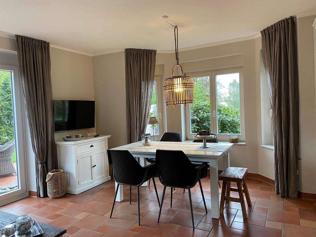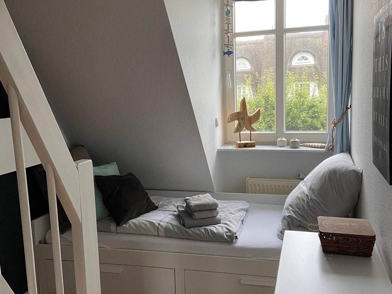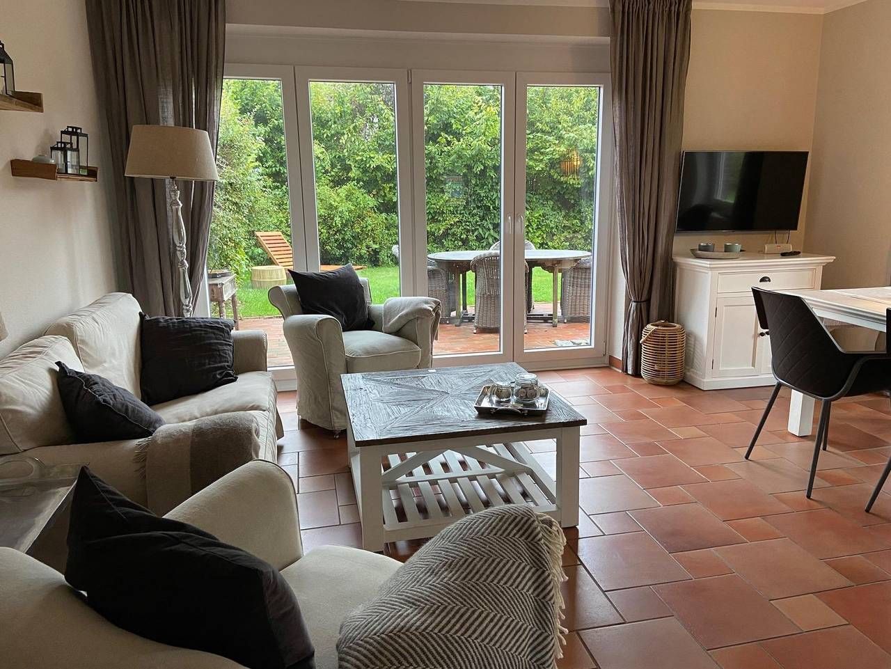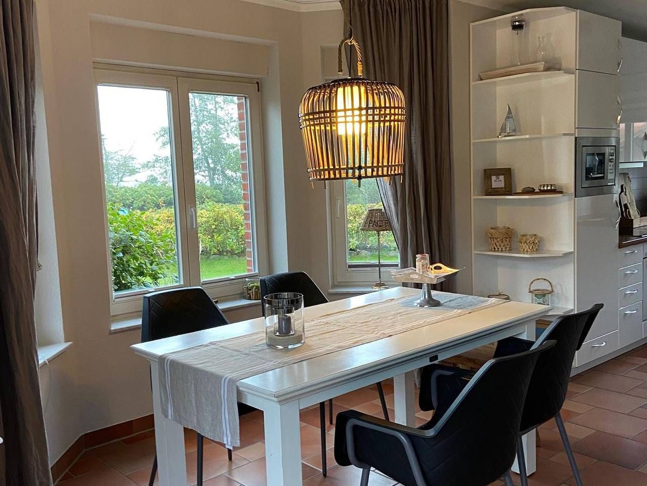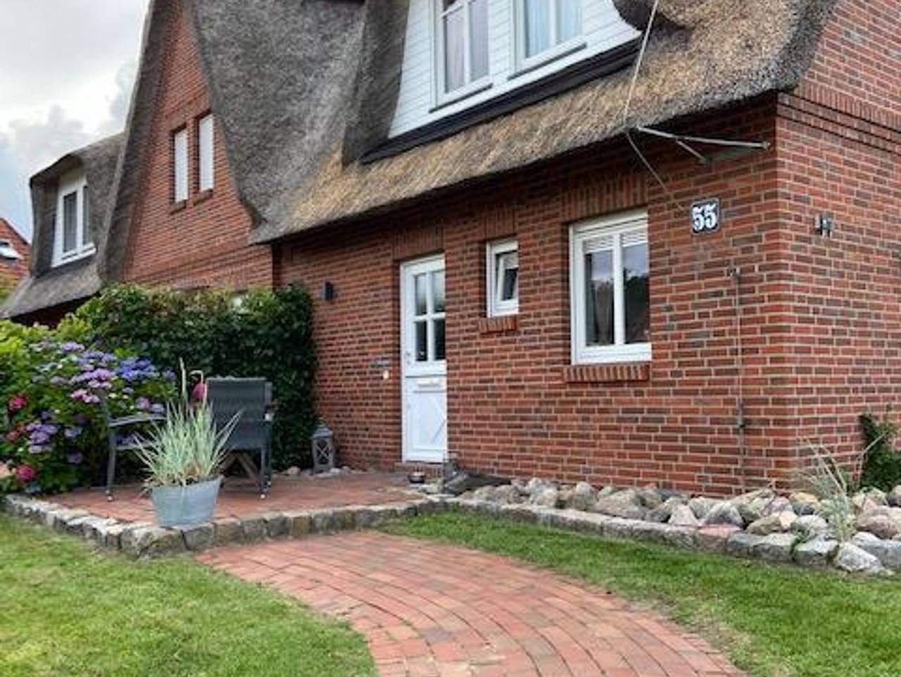 Herzlich willkommen … --in St. Peter-Ording in der Friesenstrasse, einer hübschen, ruhigen Spielstrasse im Ortsteil Ording/Bad. Unser Haus Seepferdchen ist liebevoll mit allem Komfort eingerichtet. Das Haus bietet max 4 Personen Platz und ist hochwertig mit Riviera Maison Möbeln und Accessoires ausgestattet. Unser Haus erhielt eine Klassifizierung mit **** (4 Sterne vom Deutscher Tourismusverband eV). Das Haus hat 2,5 Schlafzimmer und rund 75 qm Fläche. Unser Haus hat einen großen sonnigen Garten mit Gartenliege und Strandkorb. In der Garage können sie ihre Fahräder abstellen. Wir haben unser Haus Seepferdchen in der Friesenstrasse 55, einer ruhigen Spielstrasse in St. Peter-Ording, unter Reet im skandinavischem Stil liebevoll eingerichtet. Ausstattung EG: Wohnzimmer mit offener Küche (Geschirrspüler, Backofen, Mikrowelle, Kaffeemaschine, Wasserkocher etc) und Zugang zur Terasse, Gäste-WC, Abstellraum unter der Treppe. In Der Küche finden Sie eine Nespresso-Maschine 1. OG: Elternschlafzimmer mit Doppelbett (und Morgensonne von Osten) und Kinderzimmer mit Bett ( 90x200) und Duschbad mit Waschmaschine 2. OG (unter dem Reetdach): Kinderzimmer mit Bett (90x 2,00m (nur Kinder ab 6 Jahren bitte, da die Treppe steil ist). Die Kinderzimmer sind mit einer Treppe verbunden, also keine getrennten Zimmer. Oben im Raum steht auch ein kleiner Schreibtisch. Merkmale komfortable Einrichtung für max 4 Personen, Riviera Maison Möbel, TV, Bluetooth Anlage, WLAN 1000 mbit Leitung, Fußbodenheizung, elektrische Rolladen, Waschmaschine, Haarfön, Weber Elektrogrill (für draussen…)