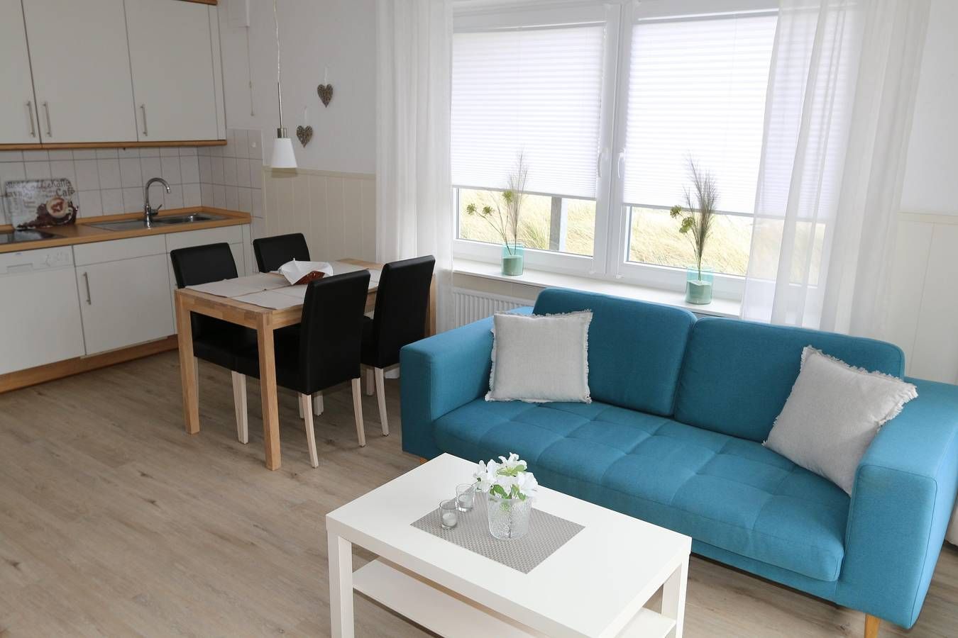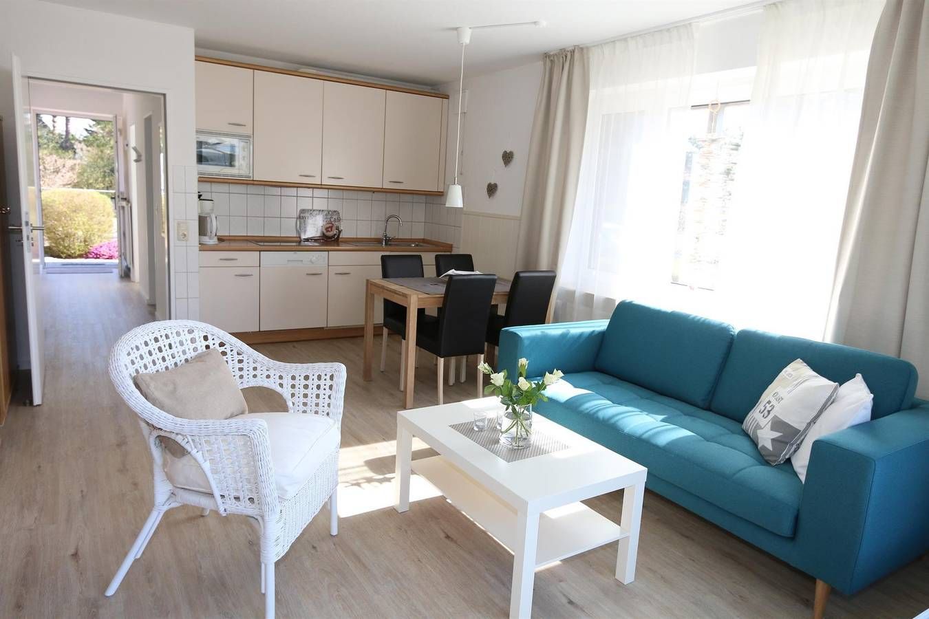 Die modernen und hellen Ferienwohnungen für 2 - 4 Personen befinden sich im Erdgeschoss und bieten Ihnen einen separaten Schlafraum mit zwei Einzelbetten, Flur, Duschbad, sowie einen kombinierten Wohn- Schlafraum (Doppelbett als...
