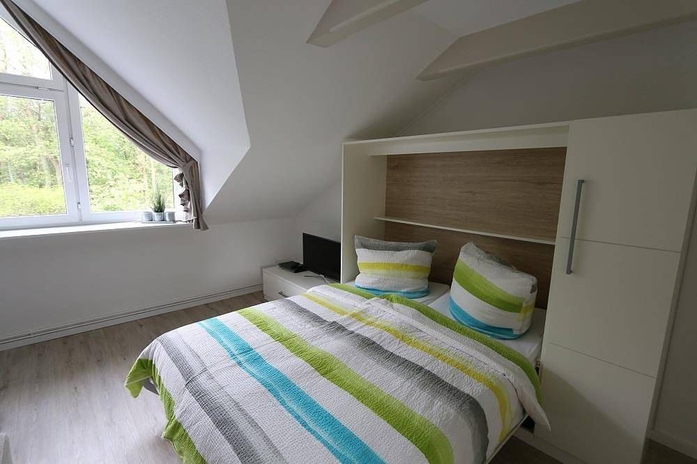 Die moderne und helle Ferienwohnung für 2 - 4 Personen befindet sich im 1. Stock und bietet Ihnen einen separaten Schlafraum mit zwei Einzelbetten, Flur, Duschbad, sowie einen kombinierten Wohn-Schlafraum (Doppelbett als...