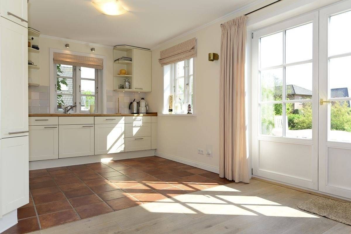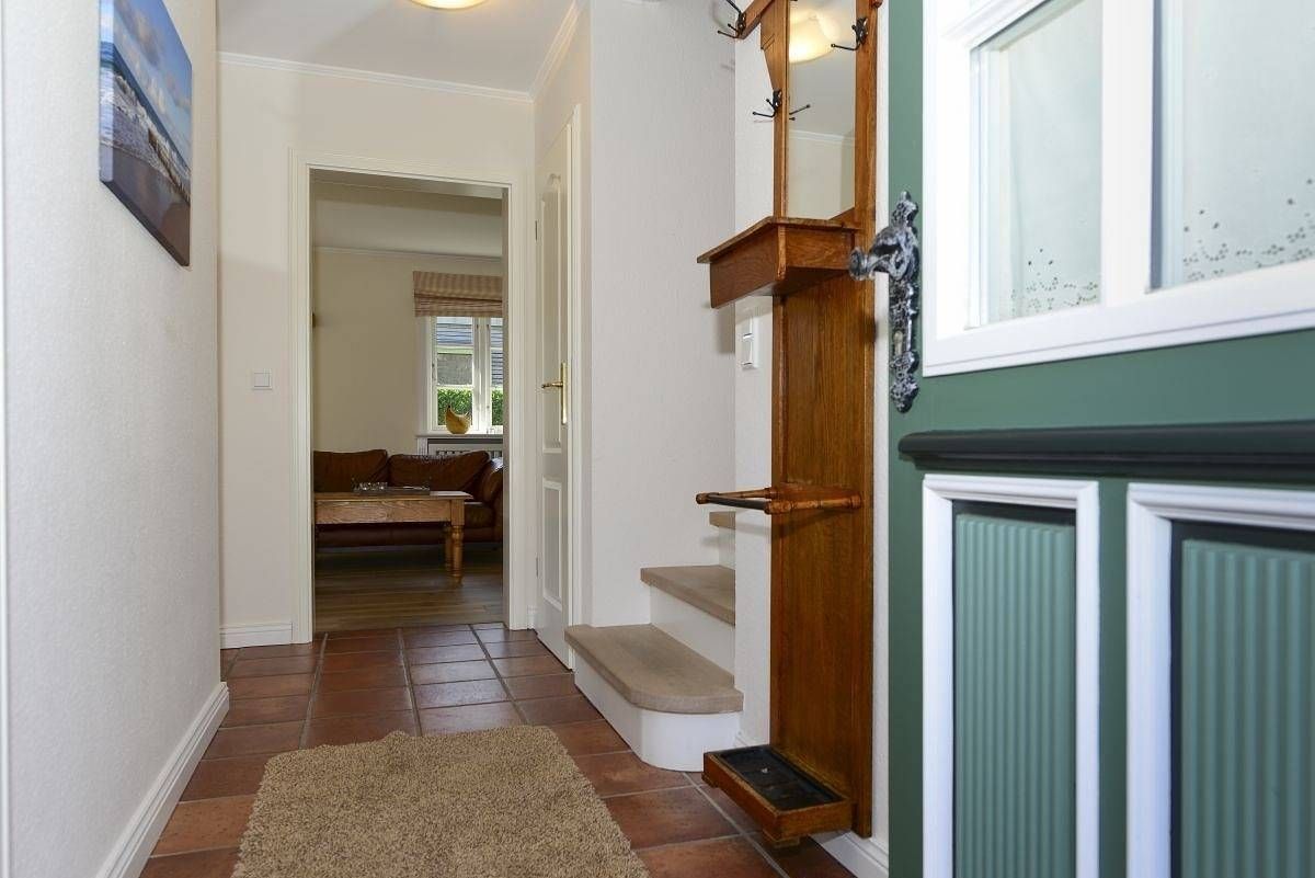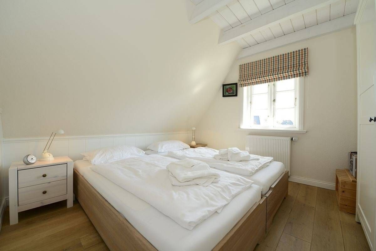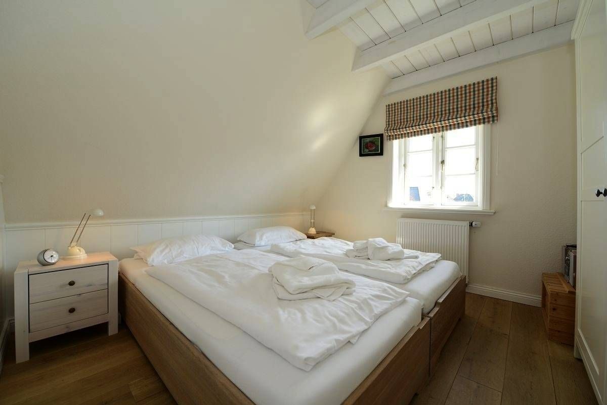 Willkommen in der Strandburg – Ihrem perfekten Urlaubszuhause! Nur 10 Gehminuten vom malerischen Wyker Südstrand entfernt, erwartet Sie diese charmante Doppelhaushälfte unter Reet. Hier vereinen sich traditioneller friesischer Stil und moderner Komfort auf großzügigen 110 m². Umgeben von einem idyllischen Wäldchen ist die Strandburg der ideale Rückzugsort für einen erholsamen Aufenthalt. Und das Beste: Ab einem Aufenthalt von 10 Nächten sind die Erstausstattung mit Bettwäsche und Handtüchern bereits im Preis enthalten – für eine entspannte Anreise! Lassen Sie sich von lichtdurchfluteten Räumen verzaubern! Der großzügige Wohn- und Essbereich ist perfekt für gesellige Stunden, während die offene Wohnküche das Herz jedes Hobbykochs höher schlagen lässt. Im Wohnzimmer können Sie es sich auf der bequemen Sitzgruppe gemütlich machen, während der große Esstisch Raum für fröhliche Runden bietet. Der friesische Kachelofen sorgt für eine behagliche Atmosphäre und lädt zum Entspannen ein. Die stilvolle und liebevolle Einrichtung macht die Strandburg zum idealen Ort für unvergessliche Urlaubsmomente. Im Obergeschoss erwarten Sie drei Schlafzimmer: ein großes Doppelzimmer für erholsame Nächte, ein weiteres Zimmer mit zwei komfortablen Einzelbetten und ein charmantes Kinderzimmer. Alle Zimmer sind mit Kleiderschränken ausgestattet, sodass Ihre Urlaubsgarderobe ausreichend Platz findet. Das helle Badezimmer im Obergeschoss begeistert mit einer großzügigen Regendusche und einem Doppelwaschtisch, während im Erdgeschoss ein zusätzliches Duschbad für weiteren Komfort sorgt. Der Außenbereich lädt Sie ein im wunderschöner Garten mit zwei einladenden Terrassen und einem gemütlichen Strandkorb zu entspannen. Schalten Sie ab, genießen Sie die Natur und lassen Sie den Alltag hinter sich. Ihr Traumurlaub wartet auf Sie!