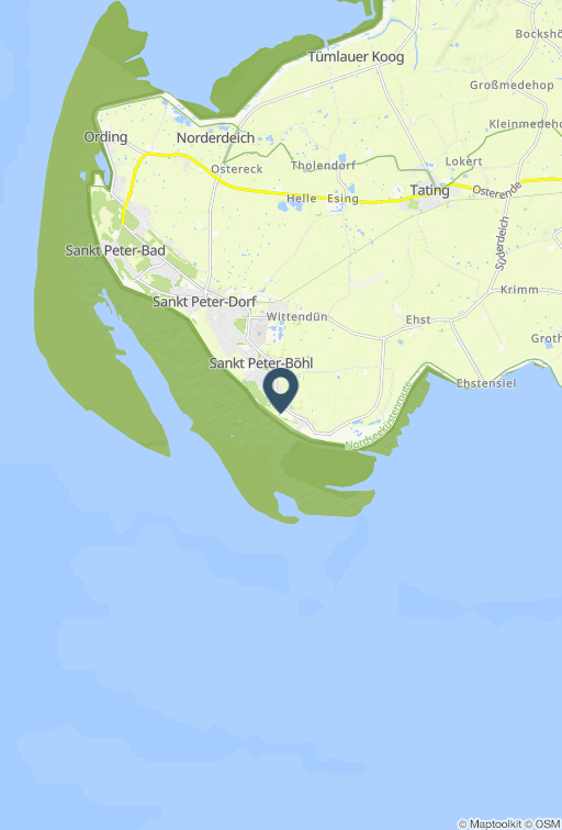Für Ruhesuchende und Naturliebhaber. Komfortabel und hochwertig ausgestattete Ferienhaushälfte Düne 10 im Bungalow-Stil mit 3 Zimmern und ca. 60 m² auf 1 Ebene (EG) für bis zu 4 Personen. Dieses Domizil ist durch seine einmalig schöne Lage direkt an den Dünen im Ortsteil Böhl die Essenz des Urlaubs in St. Peter-Ording. Absolute Ruhe und Erholung inmitten der Natur erwarten Sie hier. Einer der schönsten Strandübergänge von St. Peter-Ording und der Böhler Leuchtturm befinden sich direkt vor Ihrer Haustür. Genießen Sie puren Urlaub in unmittelbarer Nähe zum Meer und den Dünen. Meeresrauschen inklusive. Hunde sind herzlich willkommen. Wohnzimmer mit hochwertigem Schlafsofa (150x200cm, mit Matratzen), einem Sessel, TV (Sat), Stereo-Kompaktanlage und Esstisch für 4 Personen. Direkter Zugang zur möblierten Dünen-Terrasse nach Westen mit Strandkorb. Offene Küche mit Backofen, Mikrowelle, Geschirrspüler und Kühl-Gefrier-Kombination. 1. Schlafzimmer mit Doppelbett (2x 90x200cm) und Kleiderschrank. 2. Schlafzimmer mit 2 ausziehbaren Einzelbetten (je 80x200cm) und Kleiderschrank. Badezimmer (Duschbad) mit bodengleicher Dusche, WC, Handtuchwärmer, Föhn, Fußbodenheizung und Tageslicht. Flur mit Garderobenhaken und Spiegel im Eingangsbereich. Haushaltsschrank mit Staubsauger. Pkw-Stellplatz vorhanden (Zufahrt an der Rezeption des Campingsplatzes Rönkendorf vorbei). Kinderbett (nur Gestell) und Kinderhochstuhl kostenlos vorhanden. Ein eigener abschließbarer Fahrradschuppen gehört zum Domizil. Kein WLAN. Die Bettwäsche wird gestellt. Handtücher können dazugebucht werden. Rauchen ist nicht erlaubt. Die Häuser, die zu einer Wohnanlage gehören, die früher als Feriendorf für Kriegsblinde genutzt wurde, liegen im Landschaftsschutzgebiet hinter einem Campingplatz unmittelbar am Deich und den Dünen. Die Zufahrt zum Grundstück erfolgt über die kleine Straße, die an der Rezeption des Campingplatzes Rönkendorf vorbeiführt. Näher zum Wattenmeer kann man in St. Peter-Ording kaum wohnen. Sie erreichen den Strand von St. Peter-Böhl bequem zu Fuss, das Landschaftsschutzgebiet um den Böhler Leuchtturm herum lädt Sie außerdem zu ausgedehnten Spaziergängen ein. Einkaufsmöglichkeiten gibt es im Gewerbezentrum von St. Peter-Dorf und für den kleinen Tagesbedarf auch in der Nähe, Restaurants finden Sie am Strand und in einem neuen Reetdachkomplex auf dem Gelände der ehemaligen Nebenstelle des Tourismus-Centers. Alle volljährigen Mitreisenden sind kurabgabenpflichtig.