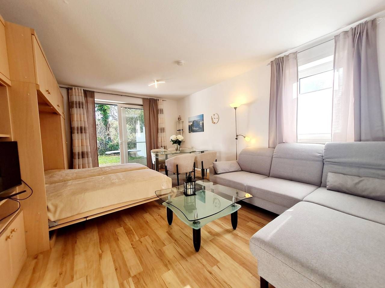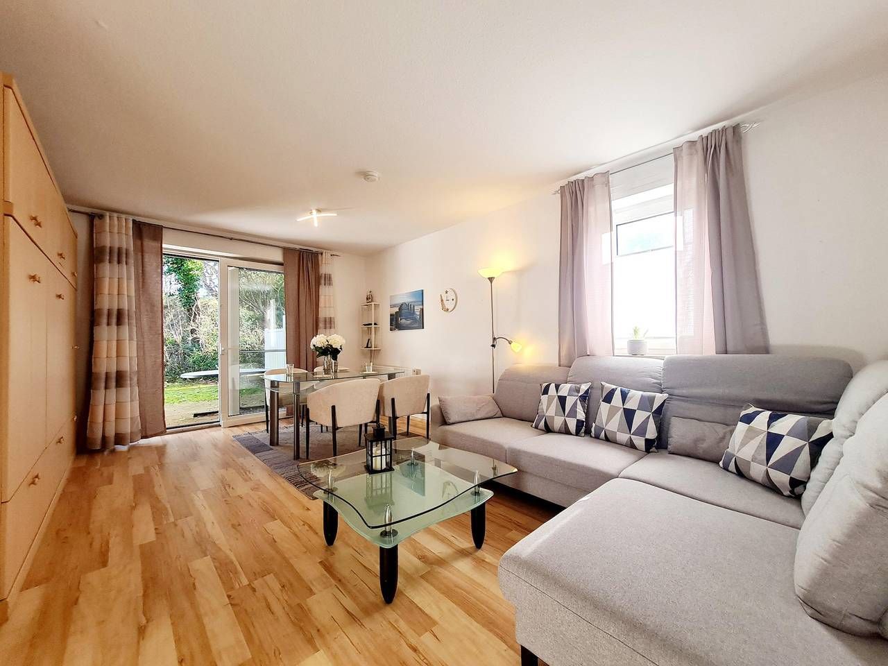 Die Ferienwohnung hat eine gute Raumaufteilung und ist komplett ausgestattet. 1 Wohnschlafraum (Laminat neu verlegt) mit einzelnen Schrankbetten sowie Kabel-Farb-TV (Flachbild), Radio/CD-Player sowie moderne Essecke. 1 Schlafraum (komplett neu eingerichtet, u.a. mit Gesundheitsmatratzen sowie neuem Laminatboden). Vollständig ausgestattete Küche (u.a. mit Geschirrspüler, Ceran-Kochfeld, Backofen usw.). In 2013 komplett renoviertes Bad mit ebenerdiger Dusche und WC. Flur. Möblierte Terrasse. Mückenschutz vor allen Fenstern! Telefon und W-Lan (W-Lan o. Zusatzgebühr). Zur Wohnung gehört der Pkw-Stellplatz Nr. 3. Hunde nach Absprache erlaubt! Bettwäsche und Handtücher können als Zusatzleistung hinzugebucht werden. Zentrale Lage im Ortsteil BAD Nähe Seebrücke zum Strand und Kurzentrum. Sehr ruhig gelegenes Appartementhaus. Hier können Sie die Seele baumeln lassen. In wenigen Gehminuten sind Sie auf der einladenden Kurpromenade und der Seebrücke zum Strand. Aber auch Einkaufsmöglichkeiten und Restaurants, das Kurzentrum mit Gesundheits- und Wellnesszentrum sowie dem Freizeitbad Dünentherme laden zum Entspannen und Genießen ein. Urlaub pur. Sehr gut geeignet als Kururlaub oder Kurbegleitung! Bettwäsche und Handtücher sind nicht im Mietpreis enthalten. Auf Wunsch lassen diese sich Einzeln oder als Set hinzubuchen. Haustier Willkommen, Gebühr für Hund pro Tier und Aufenthalt 30,-€ Check-In in der Hauptsaison ab 16:00 Uhr möglich. In allen anderen Saisonzeiten ab 15:00 Uhr. Die Gäste erhalten von der Vermieterin eine PIN für den Schlüsselsafe, so dass sie flexibel anreisen können. Check-Out bitte bis 10:00 Uhr.