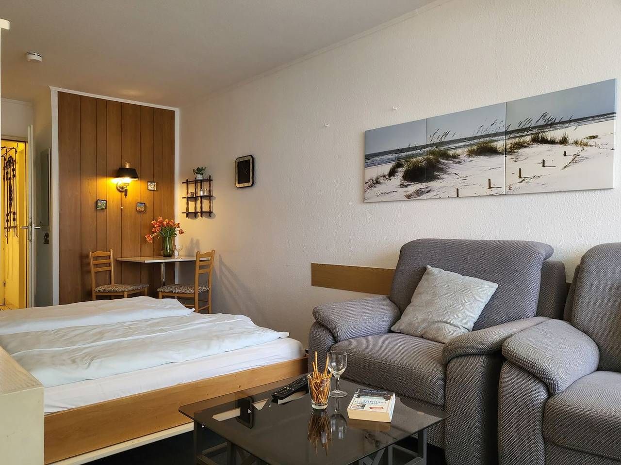 Ferienwohnung – Apartment 57 Die 25m² große 1-Zimmer Ferienwohnung liegt in der 2. Etage und bietet 2 Personen Platz für einen wunderbaren Urlaub in St. Peter Ording. Der wunderbar helle, modern eingerichtete Wohn- und...