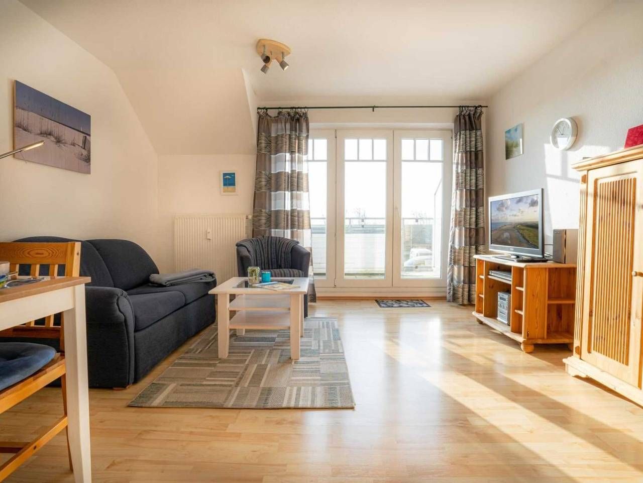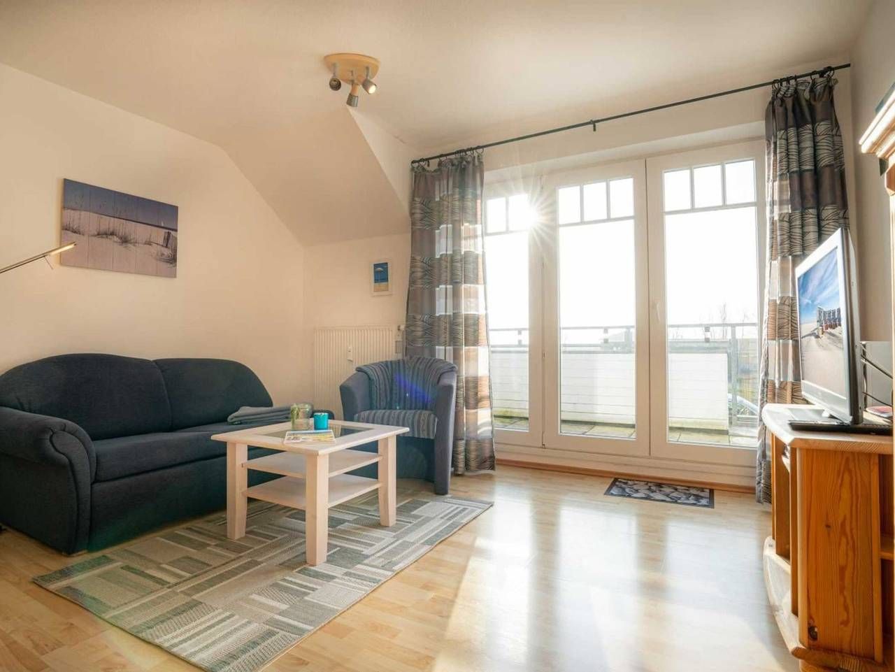 Südbalkon mit Meerblick. Das Wattenmeer vor der Haustür. Gemütliche 2-Zimmer-Ferienwohnung mit ca. 46 m² auf 1 Ebene (1. OG) für bis zu 2 Personen. In ruhiger und strandnaher Lage direkt am Strandübergang im Ortsteil Böhl...