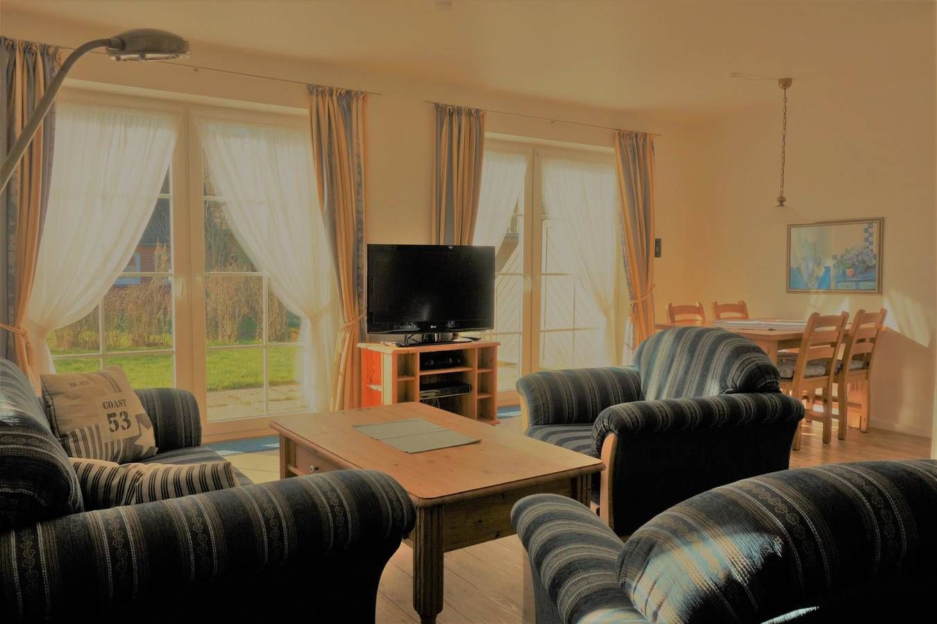 - großes Wohnzimmer mit Polstergruppe und Essbereich - Massivholzmöbel, 1 Schlafzimmer mit Doppelbett, 1 Schlafzimmer mit zwei Einzelbetten und Sitzecke - Telefon, Internet / WLan ( Internetnutzung mit eigenem PC gratis ),...