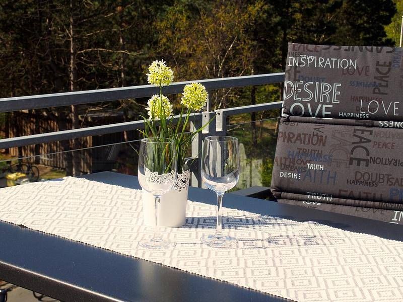 2-Raum-Ferienwohnung für 2-3 Personen im 2. Obergeschoß - 34 qm - Balkon mit Gartentisch und 3 Stühlen. Wohn-/Schlafraum mit Küchenzeile: eine Schlafcouch (80x200 mit zusätzlicher Auflagematratze), Beistelltisch, Sessel, TV,...