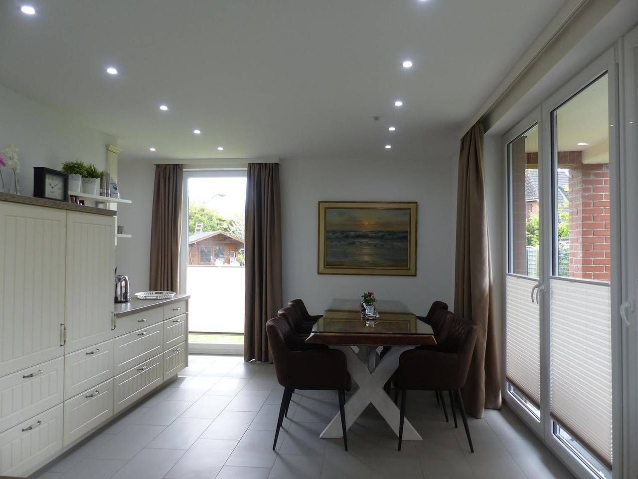Das freistehende Haus Silbermöwe Captain Baack bietet Ihnen auf großzügigen 120 m² ein komfortables und modernes Zuhause für bis zu sechs Personen in ruhiger und ländlicher Umgebung im Dorf Nieblum auf Föhr. Die Unterkunft zeichnet sich durch eine umfassende und familienfreundliche Ausstattung aus, die sowohl Entspannungs- als auch Aktivurlauber überzeugt. Das Haus erstreckt sich auf einer Ebene im Parterre und verfügt über fünf Zimmer, darunter drei Schlafzimmer mit gefliesten Böden, die für ein angenehmes Wohnklima sorgen. Zwei Badezimmer mit bodengleichen Duschen, hochwertigen Handtüchern, Bademänteln und modernen Kosmetikspiegeln sorgen für besonderen Komfort. Die Saunaanlage steht Ihnen zur Eigennutzung bereit und ermöglicht entspannende Wellnesseinheiten nach einem Tag am Meer. Der freundliche Wohn- und Essbereich ist dank offener Küche zum Wohnzimmer das kommunikative Herz des Hauses. Die Küche ist erstklassig ausgestattet und bietet einen Induktionsherd, Backofen, Spülmaschine, Mikrowelle, Kühlschrank mit extra Gefrierschrank, Kaffeemaschine, Tassimo-Espressomaschine, Wasserkocher, Racletteset, Toaster, Mixer, Eierkocher, Küchenmaschine, sowie Geschirr und Geschirrhandtücher in umfassender Ausstattung. Für gemeinsame Mahlzeiten steht ein großzügiger Esstisch bereit. Ein Brötchenservice sowie ein Einkaufs- und Wäscheservice erleichtern Ihnen den Alltag, und ein Zimmerservice steht Ihnen ebenfalls zur Verfügung. Das Wohnzimmer bietet durch den Kaminofen an kühlen Tagen besondere Gemütlichkeit. Zum Entertainment tragen vier große Satelliten-TVs (44 bis 55 Zoll), eine HiFi-Anlage, ein CD- und DVD-Player, zahlreiche Bücher, CDs, Spiele und weiteres Beschäftigungsmaterial bei. WLAN und Festnetztelefon stehen zur Nutzung bereit, ebenso wie ein Arbeitsbereich mit Schreibtisch für Gäste, die auch während des Aufenthalts arbeiten möchten. Für Familien gibt es eine kindgerechte Ausstattung mit Kinderhochstuhl, Babybett, Steckdosensicherung und einer reichhaltigen Auswahl an Spielmöglichkeiten. Im gepflegten, abgeschlossenen Garten finden Kinder und Erwachsene Erholung. Spielplatz, Schaukel, Rutsche, Sandkasten und eine großzügige Liegewiese mit Sonnenliegen und Windschutz laden zum Verweilen ein. Ein überdachter, geschlossener Terrassenbereich mit Gartenmöbeln, Grillplatz (Kohle- und Elektrogrill) sowie Gartenhaus und Strandkorb garantieren zusätzlichen Komfort im Außenbereich. Der Sichtschutz an allen Fenstern gewährleistet Privatsphäre. Haustiere sind auf Anfrage willkommen, was das Haus besonders attraktiv für Familien mit Hund macht. Für Allergiker und Nichtraucher bietet die Unterkunft eine rauchfreie und hygienische Umgebung mit Fliesenböden und regelmäßiger Reinigung. Rollstuhlfreundliche Zugänge erleichtern mobilitätseingeschränkten Gästen den Aufenthalt. Direkt am Haus stehen zwei Privatparkplätze zur Verfügung. Die zentrale Lage im Dorf bietet eine sehr gute Infrastruktur: Einkaufsmöglichkeiten sind nur 150 m entfernt, Restaurants erreichen Sie nach 250 m. Der feine Sandstrand und das Meer sind nur rund 500 m entfernt und auch vielseitige Freizeitmöglichkeiten wie Golf (700 m), Tennis, Wellness, Beachvolleyball, Kutschfahrten, Surfen, Segeln oder Reiten sind schnell erreichbar. Der öffentliche Nahverkehr ist nach 500 m erreichbar, die Entfernung zur Fähre beträgt 2 km. Für den täglichen Bedarf befinden sich ein Supermarkt, Bankautomat, Arzt, Krankenhaus und diverse kulturelle Angebote wie Kino, Kirchen und Theater in der nahen Umgebung. Das Haus ist der ideale Ausgangspunkt für Erkundungen, sportliche Aktivitäten, Vogelbeobachtungen, Yoga oder gemütliche Spaziergänge. Autos sind nicht zwingend erforderlich, da viele Angebote fußläufig erreichbar sind. Das Haus Silbermöwe Captain Baack wurde zuletzt 2020 renoviert und verbindet zeitgemäßen Komfort mit einer entspannten Urlaubsatmosphäre. Sichern Sie sich Ihren Aufenthalt in diesem gepflegten und hochwertig ausgestatteten Ferienhaus.