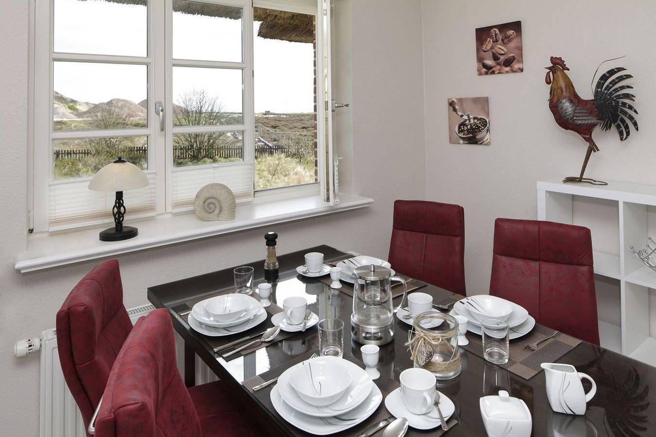 Willkommen im Appartement "Watt'n Blick" . Die großzügige Erdgeschosswohnung unter Reet befindet sich im Frischwassertal. Das Appartement bietet Platz für bis zu 4 Personen und verfügt über 115qm Fläche über 2 Etagen. Direkt am Haus befindet sich ein PKW-Stellplatz. Es steht Ihnen eine Terrasse mit Gartenmöbeln zur Verfügung. Die Nähe zum Lister Hafen bietet abwechslungsreiche Möglichkeiten für Erholungssuchende. Gartenmöbel und Strandkörbe stehen Ihnen saisonal begrenzt zur Verfügung. Das Grillen mit einem Holzkohle- oder Gasgrill ist aufgrund des Reetdaches nicht gestattet. Sie können zusätzliche Serviceleistungen buchen. Weitere Informationen dazu erhalten Sie bei uns.