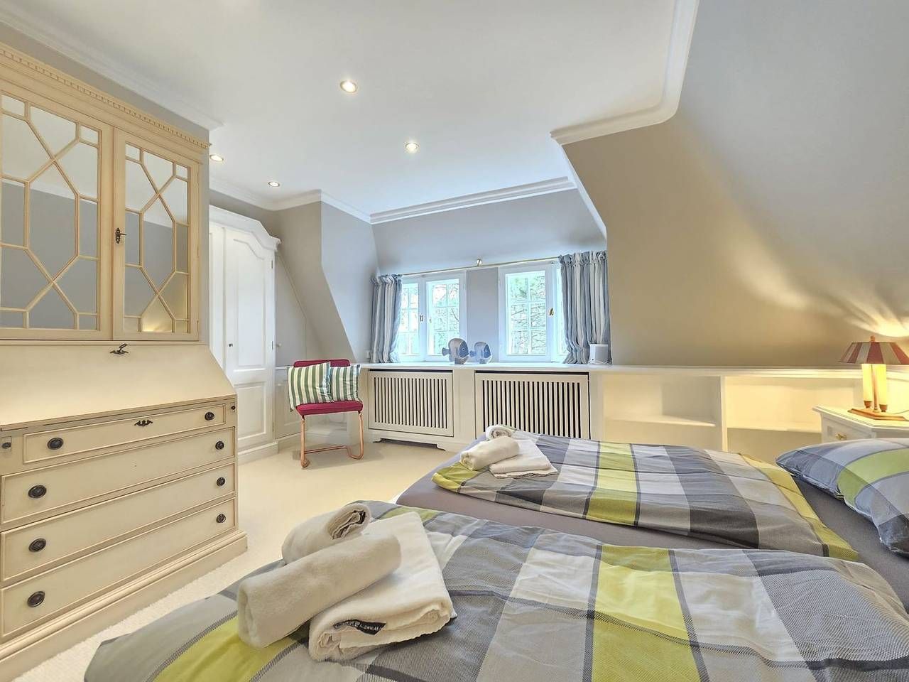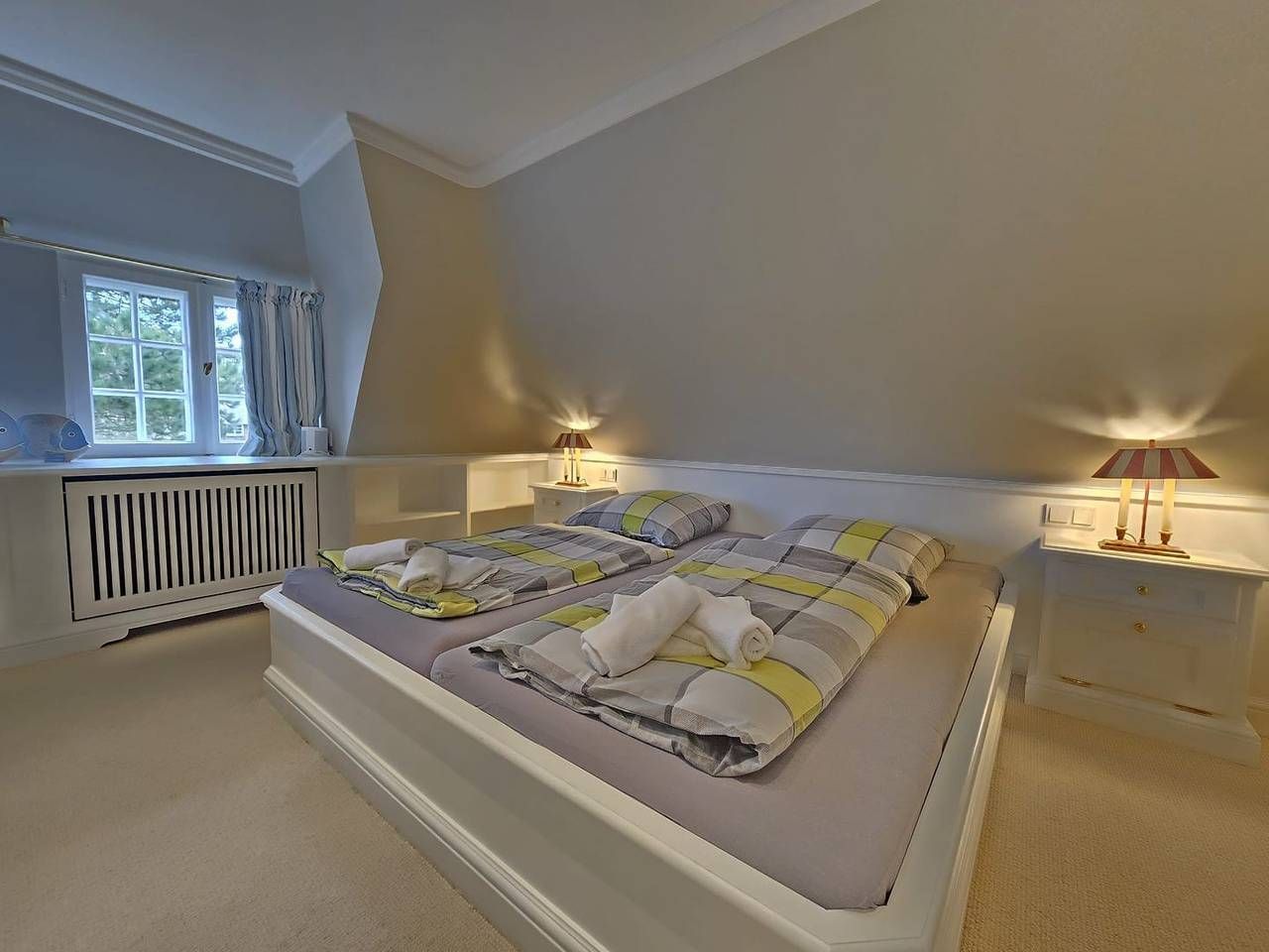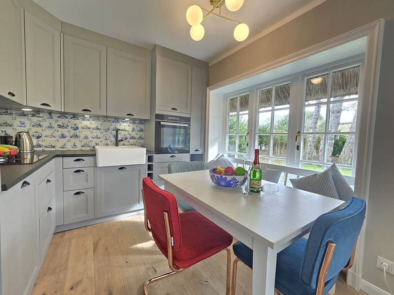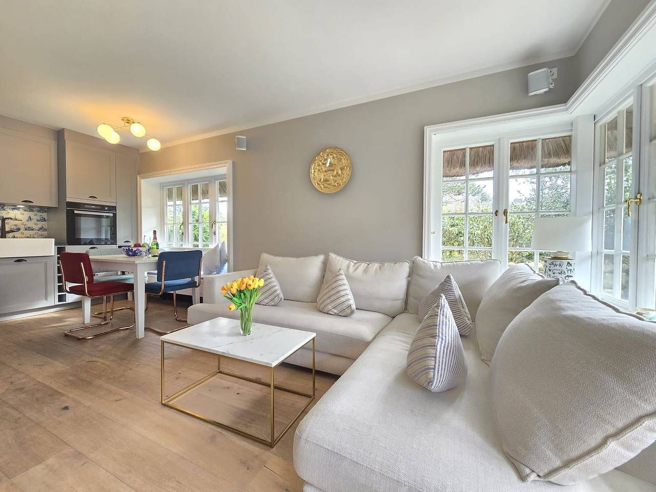 Dieses exklusive Ferienhaus unter Reet liegt in der malerischen Ortschaft Kampen auf der Nordseeinsel Sylt und bietet Platz für bis zu 6 Personen. Mit seinem traditionellen Reetdach fügt sich das Haus harmonisch in die idyllische Umgebung ein und vermittelt sofort das Gefühl von Ruhe und Entspannung. Die Lage des Hauses in Kampen ist exklusiv: Nur wenige Minuten zu Fuß trennen Sie von den berühmten Stränden der Insel und den charmanten Boutiquen und Restaurants im Ort. Die perfekte Kombination aus Luxus, Natur und Sylter Tradition – ideal für einen erholsamen Urlaub mit der Familie, Freunden und Ihren vierbeinigen Begleiter. Im Erdgeschoss befindet sich ein offener Wohn-/Essbereich mit einer modernen Küche. Der helle Wohnraum verfügt über eine einladende Wohnlandschaft, die zu einem gemütlichen Fernsehabend vor dem Flatscreen-TV einlädt. Die Küche ist voll ausgestattet und bietet Ihnen u. a. ein Induktionskochfeld, einen Geschirrspüler, einen Backofen, eine Nespresso Maschine. Vom Wohnbereich aus betreten Sie die möblierte Terrasse. Der Garten ist mit hochwertigen Garpa Gartenmöbeln, Garpa Liegen und einem Strandkorb ausgestattet. Das Obergeschoss des Hauses verfügt über ein großzügiges Schlafzimmer mit einem großen Doppelbett (2,00 m x 2,00 m), einem kleinen Schreibtisch und einem Fernseher. Auf gleicher Ebene erwartet Sie ein Vollbad mit Badewanne und Dusche. Im Souterrainbereich steht Ihnen ein schön gestalteter Raum mit einem großen Boxspringbett (1,80 m x 2,00 m) und einer Schlafcouch zur Verfügung. Benachbart empfängt Sie ein weiteres Badezimmer mit Dusche. Alle Zimmer sind mit Sonos Boxen ausgestattet und sorgen für ein großartiges Sounderlebnis. An Tagen, an dem das Wetter auf der Insel einmal nicht so mitspielt, können Sie sich in der Sauna entspannen. Die Sauna befindet sich in einem separaten Holzhaus im Garten. Ein Parkplatz steht Ihnen direkt vor dem Haus zur Verfügung.