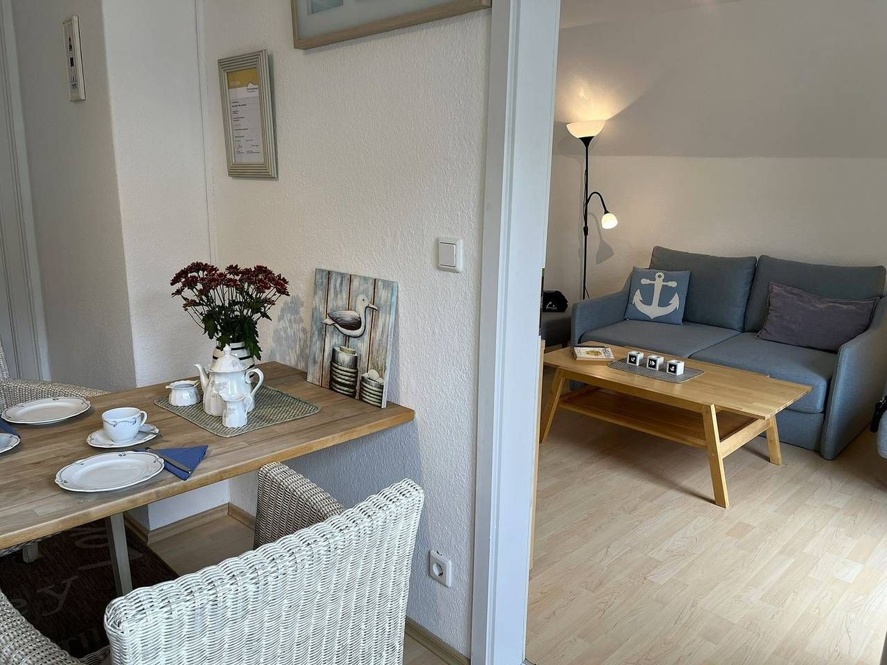 Büsum - Urlaub in bester Lage, für den Urlaub zu zweit. Hübsche 2-Zimmer-Ferienwohnung mit Balkon in toller Lage direkt am Hauptstrand. In dem Backwaren- Bistro im Erdgeschoss kann man am Morgen herrlich frühstücken. Die Wohnung ist großzügig geschnitten und befindet sich im 1. Obergeschoss (bei Einschränkungen bzw. Behinderungen ist die Treppe nicht zu empfehlen). Sie bietet eine separate, gut ausgestattete Küche mit Esstisch. Der Wohnraum bietet den nötigen Platz zum Entspannen. Das Schlafzimmer ist mit einem Doppelbett und einem Kleiderschrank eingerichtet. Ein Tageslichtbad mit Dusche und WC rundet diese Wohnung ab. - Bettwäsche und Handtücher sind nicht inklusive, können aber kostenpflichtig dazu gebucht werden - Im Zentrum gelegen mit Deichblick - Kostenfreies W- LAN, für Störungen und Ausfälle übernehmen wir keine Haftung - Kostenfreier Parkplatz, nur 2 Minuten fußläufig von der Wohnung entfernt - Waschmaschine und Trockner auf der Etage, gegen Gebühr nutzbar - Keine Abstellmöglichkeit für Fahrräder