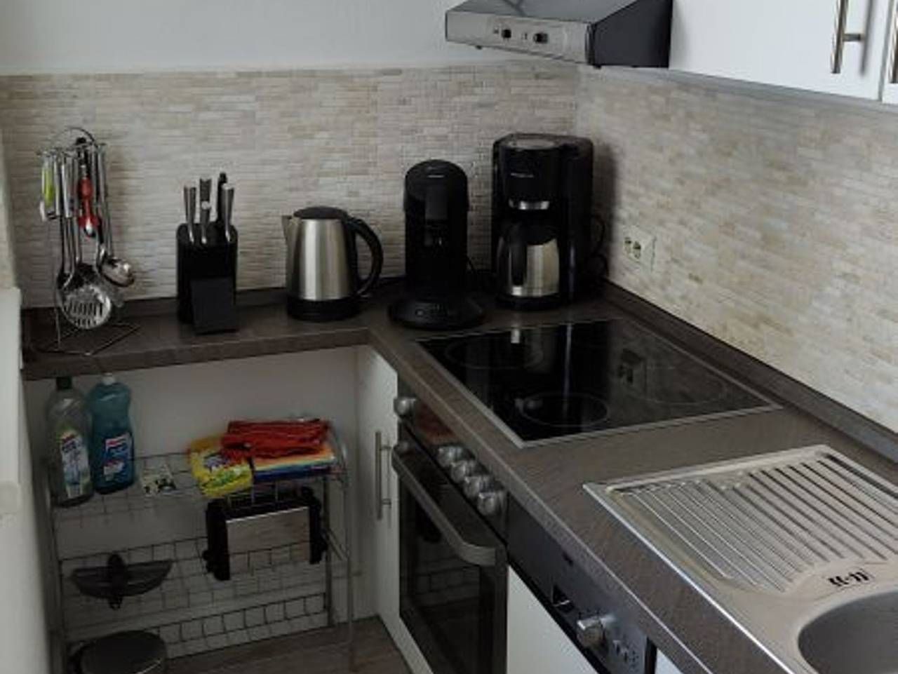 Zur Ausstattung der Wohnung gehören eine voll ausgestattete Küche, ein Zimmer mit Boxspringbett und einer kleinen Couchgarnitur, Flachbild-TV und einem Essplatz für zwei Personen. Das Badezimmer ist mit Dusche und WC ausgestattet.