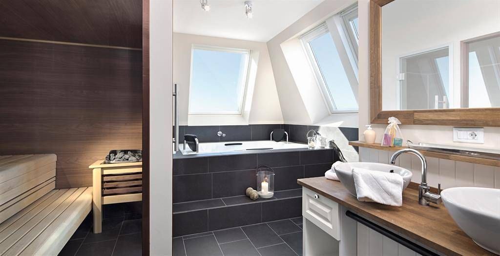 Die Gute Stube Die Gute Stube vereint all die Finessen der anderen Stuben und ist sozusagen unsere „Präsidenten-Suite“. Ob für die Flitterwochen oder ein besonders schönes Wochenende zu Zweit: Hier bleiben keine Wünsche offen. Sauna und Whirlwanne mit Meerblick, gemütliche Kaminatmosphäre, eine eigene Bibliothek mit Weinregal, gemütliches Sofa, zwei schicke Ledersessel und natürlich ein fantastischer Meerblick vom Balkon im obersten Stock des Hauses - all das finden Sie in unserer Guten Stube Wie so vieles ist bei uns auch die Zimmerbezeichnung ein bisschen anders. Statt einfache Doppelzimmer und Suiten haben wir 47 Kleine und Große Stuben für Sie gestaltet. Die individuell gehaltenen Stuben sind liebevoll mit Möbeln des Inneneinrichters Rivièra Maison eingerichtet, verfügen über einen Balkon oder eine Terrasse und eine Grundausstattung inklusive großem Doppelbett, Flachbildfernseher, Telefon, kostenfreies W-Lan sowie ein separates WC. Direkt hinter den Dünen von St. Peter-Ording, unmittelbar am Deich finden Sie die Zweite Heimat – die „gute Stube“ unter den Strandhotels. Das exklusive Lifestyle-Hotel in St. Peter-Ording greift den Wunsch vieler Reisender auf, auch jenseits der eigenen vier Wände einen Ort zu finden, in dem sie entspannen, sich wohlfühlen und entschleunigen können. Stress und Hektik des aufreibenden Alltags hinter sich lassen, die Nase weit in den Nordsee-Wind halten, abends im Salon am Kamin aufwärmen, ein Buch aus der hauseigenen Bibliothek greifen – das alles, kombiniert mit leisem Luxus, bietet die Zweite Heimat ihren Gästen. Unser ganz persönliches Motto: Am Strand zuhause! Starten Sie in unserem Restaurant Esszimmer mit dem reichhaltigen Frühstücksbuffet in den Tag. Tagsüber und Abends servieren wir Ihnen unsere Menüs und Gerichte mit regionalen Produkten a-la-carte. In unserem Saunabereich stehen Ihnen auf über 300 Quadratmetern zwei Saunen, ein Dampfbad sowie zwei hochwertig gestaltete Ruheräume sowie ein sichtgeschützter Frischluftbereich zur Verfügung. Massagen und kosmetische Anwendungen sind hier ebenfalls möglich. Die Bezahlung erfolgt bei Abreise im Hotel! Der Check-In ist bei uns ab 15.00 Uhr am Anreisetag garantiert. Der Check-Out muß bis 11.00 Uhr am Abreisetag erfolgen.