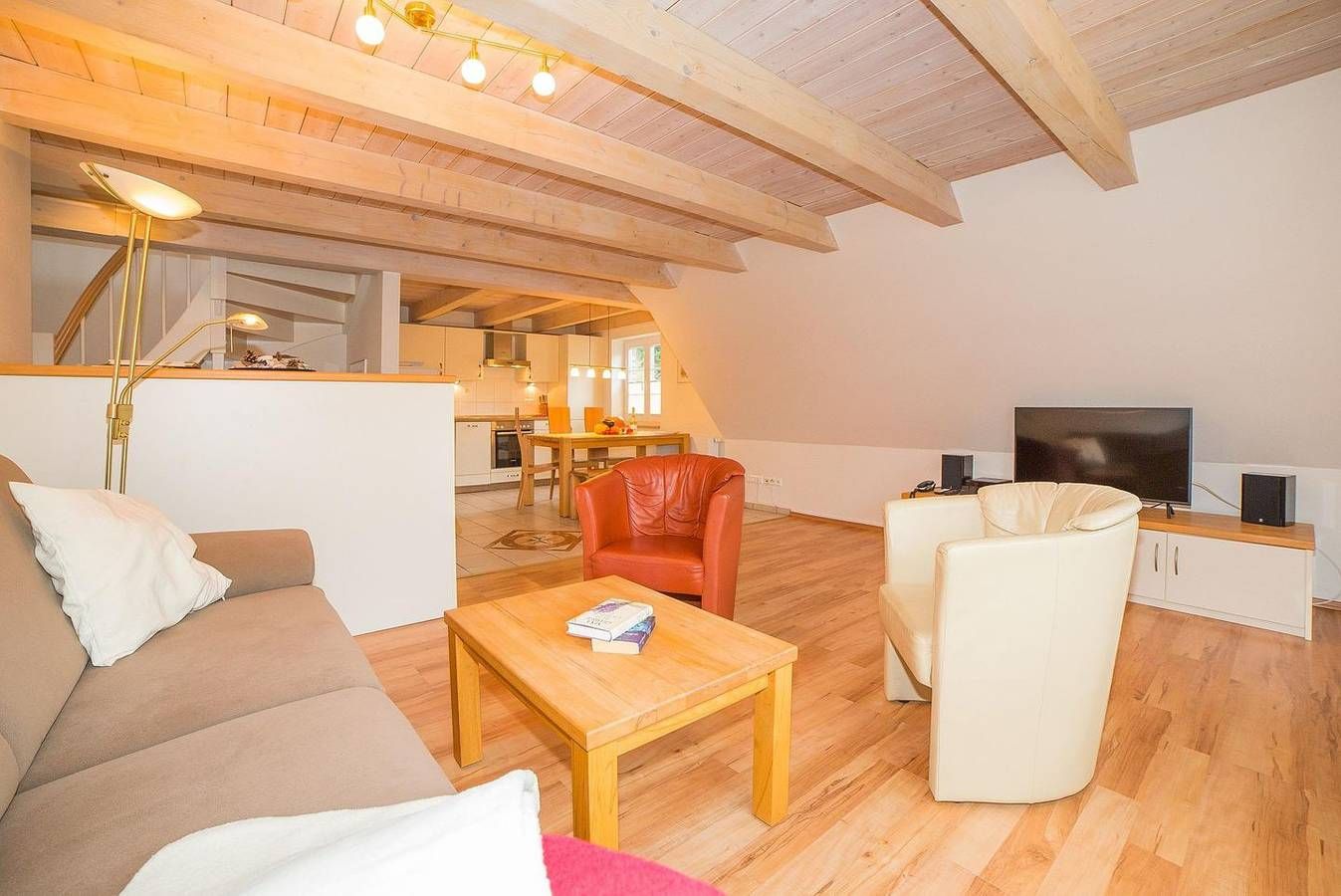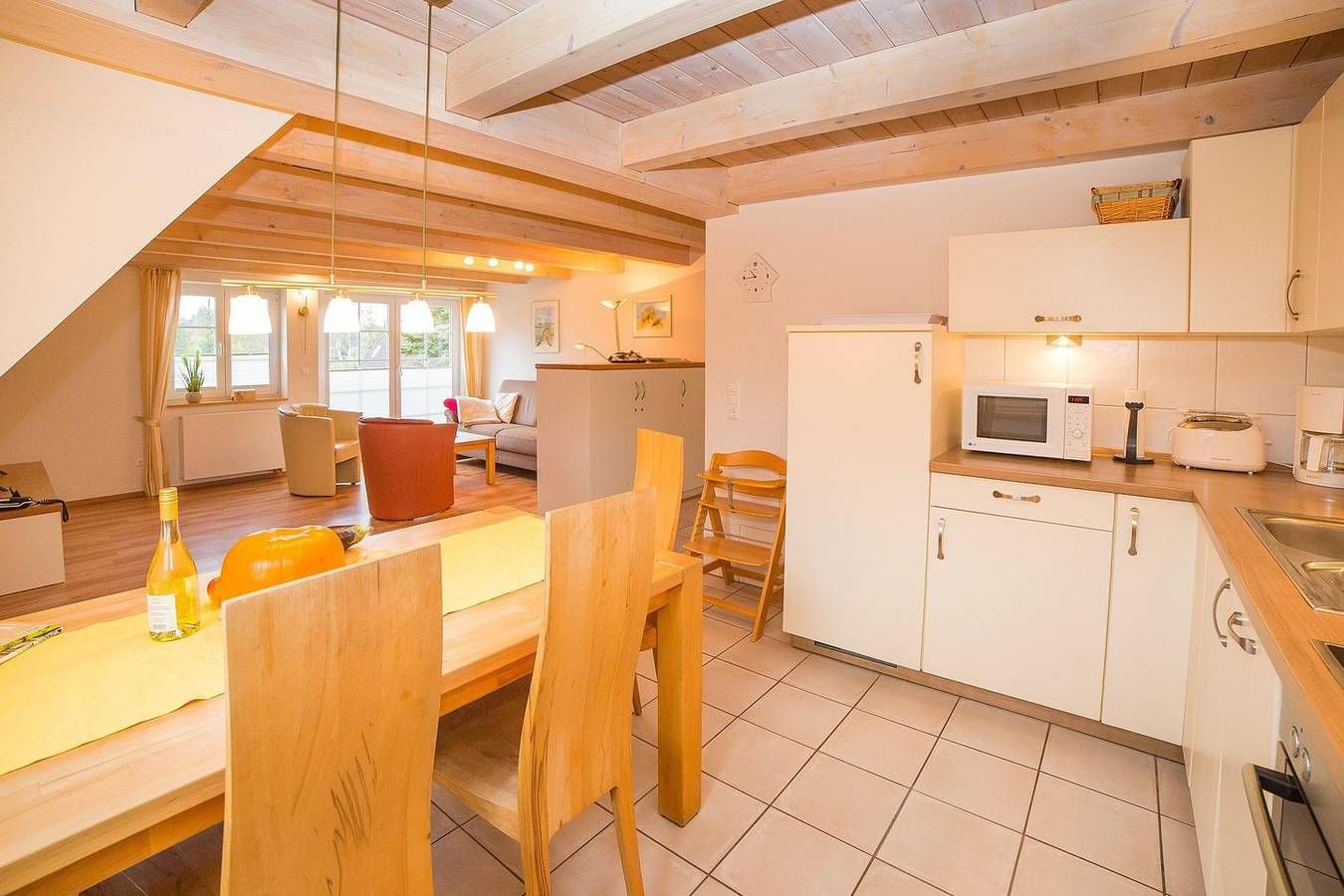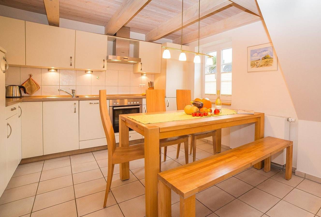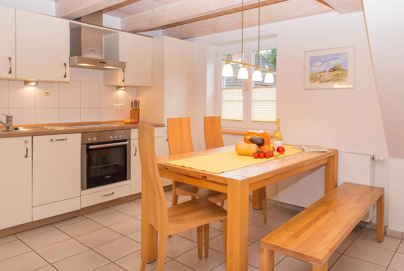Das Hüs in Lee in Süddorf auf Amrum wurde Anfang 2008 fertiggestellt und enthält 4 Ferienwohnungen. Es liegt ruhig aber trotzdem zentral in der Mitte der Insel und lädt ein zu einem entspannten Urlaub. Die Wattküste, der Wald, die herrliche Dünenlandschaft sowie Badestrand sind zu Fuß und per Fahrrad bequem zu erreichen. Die 40 bis 90 m² großen Ferienwohnungen im Hüs in Lee mit Terrasse im großen Garten, bieten für 2 bis 4 Personen einen komfortablen Rahmen für einen entspannten Urlaubsaufenthalt. Ein 2500 m² großes Grundstück und ein großzügig angelegter Garten tragen zur Entspannung bei. Für unsere kleinen Gäste gibt es einen Kinderspielplatz direkt am Haus, der nach Herzenslust genutzt werden darf. Die Wohnräume sind großzügig und komfortabel eingerichtet, inklusive einer modernen, komplett ausgestatteten Küchenzeile, die mit Geschirrspüler, Backofen, Ceranfeld und Mikrowelle keine Wünsche offenlässt. Alle Bäder sind mit Fußbodenheizung und Handtuchheizkörpern ausgestattet. Im Wohnzimmer tragen Fernseher, Telefon, Stereoanlage mit DVD-Player sowie ein Internet-Anschluss zur Unterhaltung bei. Es gibt ein bis zwei Schlafräume, sowohl mit Doppelbett als auch mit Einzelbetten. Auch Saunafreunde kommen nicht zu kurz: Die im Nebengebäude auf dem Grundstück befindliche Sauna ist ganzjährig für Sie betriebsbereit. Ebenfalls im Nebengebäude befinden sich eine Waschmaschine und ein Trockner. Die Wohnung Sonnendeck befindet sich im Obergeschoss in süd-westlicher Ausrichtung und ist für bis zu vier bis fünf Personen geeignet. Die Wohnung verfügt über 70 m² und erstreckt sich über zwei Etagen. Über eine Treppe gelangen Sie in ein großzügiges Wohnzimmer mit einem französischen Balkon. Die geräumige und komplett ausgestattete Küche ist in den Wohnbereich integriert und lässt mit Geschirrspüler, Backofen, Ceranfeld und Mikrowelle keine Wünsche offen. Auf der gleichen Ebene befinden sich ein Duschbad mit Fußbodenheizung sowie ein Schlafzimmer mit zwei einzelnen Betten. Das zweite Schlafzimmer im Spitzboden enthält ein Doppelbett und eine Einzelschlafmöglichkeit. Auf diesem Stockwerk ist ein weiteres Bad mit Badewanne und Fußbodenheizung vorhanden. In der Wohnung befinden sich ein Fernseher, ein Telefon, eine Stereoanlage mit DVD-Player sowie ein Internet-Anschluss. Im großen Garten steht eine Terrasse mit Gartenmöbeln zur Verfügung. Auf Anfrage werden Babybett und Hochstuhl zugestellt. Als Gast in dieser Wohnung nutzen Sie das Fitness Studio "Eilun Fit" inkl. Sauna und angebotenen Kursen kostenfrei.