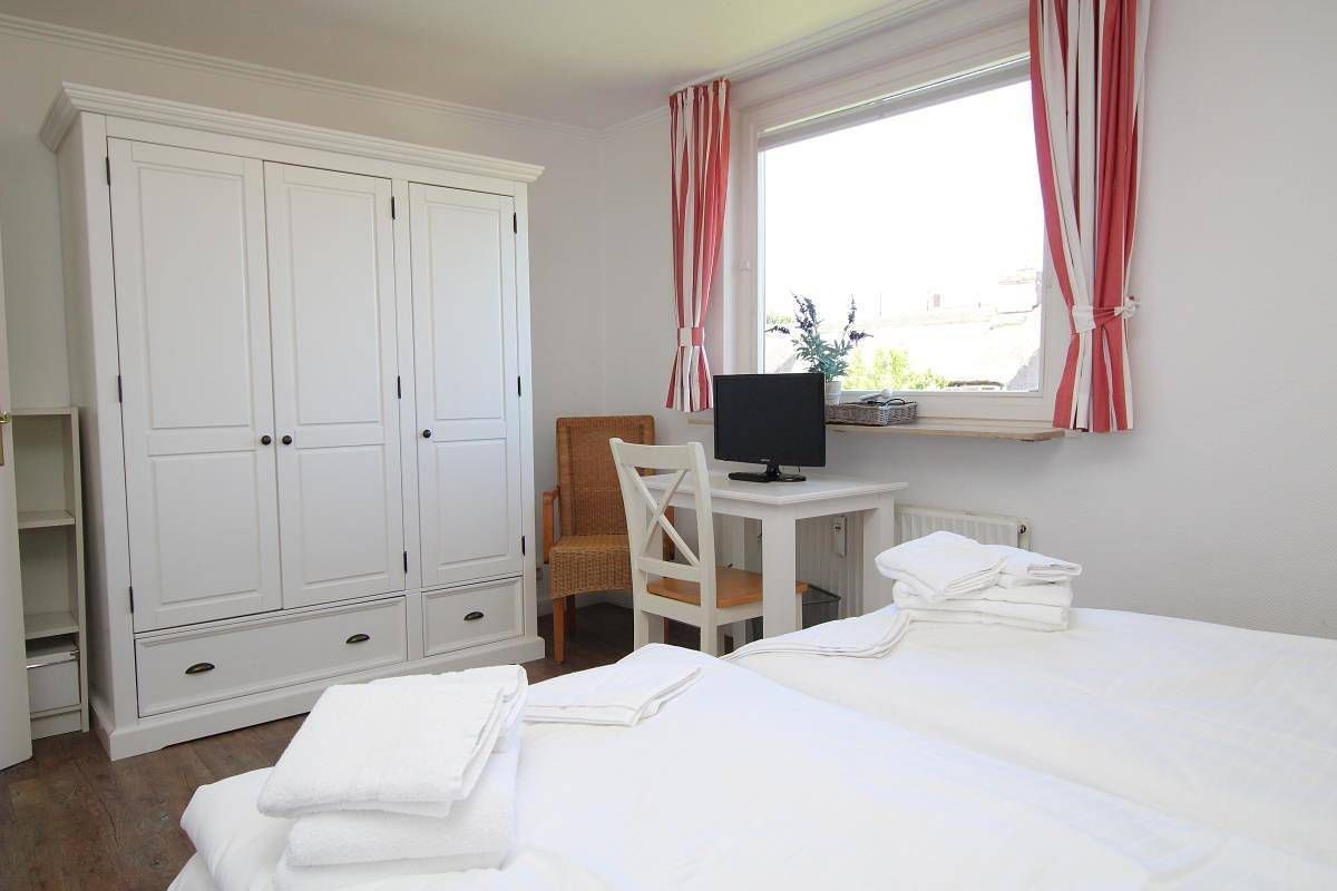 Hüs Lörki, App. 3 Lage: Das "Hüs Lörki" steht in ruhiger Lage im Süden von Westerland. Es handelt sich um ein Reihenhaus mit mehreren Appartements. Das Appartement Nr. 3 liegt im Obergeschoss. Die Entfernung zum Strand beträgt ca. 5 Minuten, zum Centrum ca. 15 Minuten. Größe: 3-Zimmer-Appartement ca. 60 m², für bis zu vier Personen. Ausstattung: Das Wohnzimmer hat zur Südseite Fenster und einen kleinen Südbalkon. Im Wohnzimmer stehen die Sitzgarnitur und der Essplatz. Ebenfalls ist dort die Küchenzeile vorhanden. Das Duschbad ist Innen liegend. In beiden Schlafzimmern stehen Doppelbetten. Haustiere sind nach Absprache gegen Aufpreis erlaubt. Bitte beachten Sie die Regelung zur gesonderten Kurtaxe der jeweiligen Gemeinde auf Sylt. Diese wird gesondert berechnet und ist spätestens bei Anreise fällig. Aufgrund der positiven Rückmeldungen ist das Wäschepaket jetzt mit im Angebot enthalten. Wenn Sie keine Wäsche wünschen, bitten wir Sie, die Wäsche spätestens 48 Stunden vor Anreise explizit und schriftlich abzubestellen. Vielen Dank. Hüs Lörki, App. 3 Lage: Das "Hüs Lörki" steht in ruhiger Lage im Süden von Westerland. Es handelt sich um ein Reihenhaus mit mehreren Appartements. Das Appartement Nr. 3 liegt im Obergeschoss. Die Entfernung zum Strand beträgt ca. 5 Minuten, zum Centrum ca. 15 Minuten. Größe: 3-Zimmer-Appartement ca. 60 m², für bis zu vier Personen. Ausstattung: Das Wohnzimmer hat zur Südseite Fenster und einen kleinen Südbalkon. Im Wohnzimmer stehen die Sitzgarnitur und der Essplatz. Ebenfalls ist dort die Küchenzeile vorhanden. Das Duschbad ist Innen liegend. In beiden Schlafzimmern stehen Doppelbetten. Haustiere sind nach Absprache gegen Aufpreis erlaubt. Duschbad Hüs Lörki, App. 3 Lage: Das "Hüs Lörki" steht in ruhiger Lage im Süden von Westerland. Es handelt sich um ein Reihenhaus mit mehreren Appartements. Das Appartement Nr. 3 liegt im Obergeschoss. Die Entfernung zum Strand beträgt ca. 5 Minuten, zum Centrum ca. 15 Minuten. Größe: 3-Zimmer-Appartement ca. 60 m², für bis zu vier Personen. Ausstattung: Das Wohnzimmer hat zur Südseite Fenster und einen kleinen Südbalkon. Im Wohnzimmer stehen die Sitzgarnitur und der Essplatz. Ebenfalls ist dort die Küchenzeile vorhanden. Das Duschbad ist Innen liegend. In beiden Schlafzimmern stehen Doppelbetten. Haustiere sind nach Absprache gegen Aufpreis erlaubt.