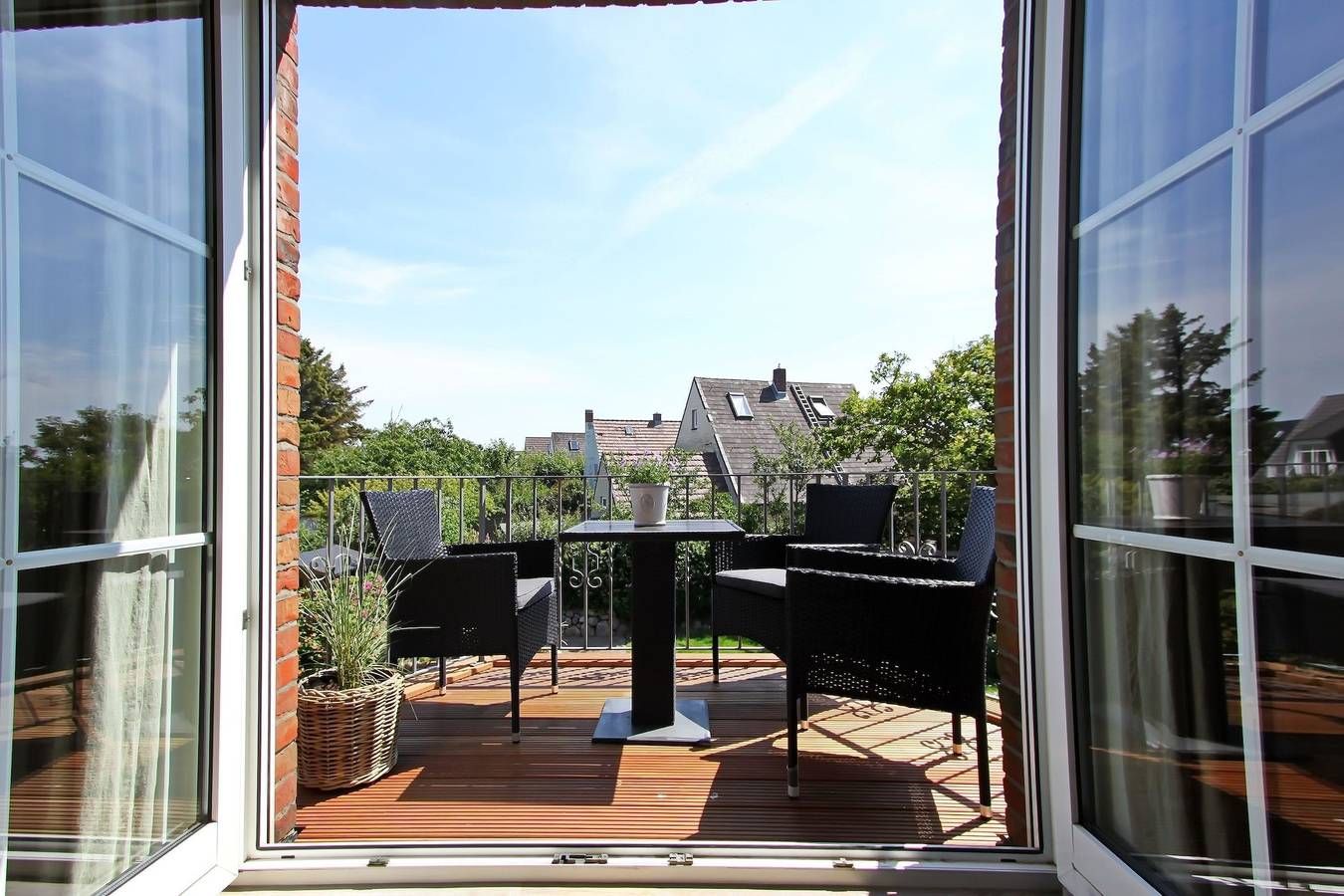 Kurzbeschreibung: Die Wohnung liegt in einem schönen 4 er Appartementhaus, zur Gartenseite ausgerichtet in dem Ihnen auch ein Strandkorb zur Verfügung steht. Die Strandpromenade ist nur 5 bis 8 und die pulsierende Innenstadt 10 Gehminuten entfernt. Lagebeschreibung: Zahlreiche Restaurants befinden sich in unmittelbarer Nähe und den Strandübergang Seenot können Sie in wenigen Gehminuten erreichen, ebenso wie die beliebten Hauptgeschäftsstraßen Friedrich- und Strandstraße. Zahlreiche exklusive Boutiquen laden zum Shoppen ein. Zudem können Sie eines der zahlreichen Restaurants besuchen oder einfach durch die verschiedenen Geschäfte bummeln. Die Sylter Welle am Syltnesscenter, am oberen Ende der Strandstraße, lädt zu einem Besuch ein. Das Schwimmbad verfügt über mehrere Erlebnisbecken, ein in Dezember 2016 neu eröffnetes Sporthallenbad, sowie ein Wellenbad und drei große Wasserrutschen. Eine große Saunalandschaft und Solarium runden das Angebot ab. Eine Tennisanlage mit Außen- und Hallenplätzen sowie diverse Fahrradverleihe sind ebenfalls vorhanden. Über den Weg durch die Sylter Wiesen können Sie den Tierpark in Tinnum erreichen, oder zu den Orten Keitum, Archsum, Morsum und zum Rantumer Becken wandern oder mit dem Fahrrad fahren. Eine Bäckerei sowie Geschäfte des täglichen Bedarfs sind ebenfalls in der Nähe. Ausstattungen: Ein Zuhause, am Meer, auf Zeit FFür Sie, Ihre Familie, Freunde und treuesten Begleiter auf vier Pfoten, das ist unsere Ferienwohnung Hygge auf Sylt in Westerland. Eine Kombination von warmen Farben mit skandinavischem Einrichtungsstil, schafft "hyggelige" Wohlfühlatmosphäre. Die ca. 40 qm große, lichtdurchflutete Wohnung mit 2 Balkonen, ist renoviert, harmonisch und gemütlich eingerichtet und bietet Platz für 2-4 Personen. Falls Sie Hundebesitzer sind, ist ihr Hund auch herzlich willkommen. Die Wohnung liegt in der 1. Etage in einem 4-er Appartementhaus, zur Gartenseite ausgerichtet, in dem Ihnen auch ein eigener Strandkorb, Tisch und Gartenstühle zur Verfügung stehen. Der meist windabgewandte Ostbalkon mit Morgensonne und schönem Blick in den Garten lädt, wie auch der Südbalkon, zum Essen im Freien ein. In dem eigenen Gartenanteil scheint von morgens bis abends die Sonne. Falls das Wetter mal rau und stürmisch ist, kann man es sich vor dem Flammenspiel des elektrischen Kaminofens besonders gemütlich machen. Das Meer und der beliebte Weststrand mit beleuchteter Strandpromenade sind fußläufig in 5-8 Minuten erreichbar (Strandübergang Seenot und das Restaurant Seenot, sowie etwas weiter das Restaurant Sunset Beach), die pulsierende Innenstadt ist nur 10 Gehminuten entfernt. Die zentrale Lage Westerlands macht es leicht, die schönen und vielfältigen, ganz eigenen Orte und Landschaften der Insel Sylt zu erkunden. Die Aufteilung der Wohnung sieht wie folgt aus: Großes Wohn-Esszimmer mit integrierter, komplett ausgestatteter weißer Landhausküche, beleuchteter Geschirrglasschrank und zusätzlich kleiner Sitzecke, große Essecke mit Bank und Massivholztisch, Bali Schlafsofa (160cm x 200cm) für 2 Personen und Sessel im Landhausstil, helles Doppelschlafzimmer mit viel Stauraum, Badezimmer mit Regendusche und Glasabtrennung sowie elektrischem Handtuchtrockner, Flur mit Einbauschrank. Im gesamten Wohnbereich ist heller Designboden verlegt. Alle Räume sind mit Flatscreen TV und schnellem WLAN ausgestattet. Im Wohn- und Schlafzimmer steht ein Smart TV z.B. zur Nutzung Ihres privaten Netflix Accounts sowie Radio mit Bluetooth, CD Player und DVD Player zur Verfügung. Küchenausstattung: zweier Induktionskochfeld, sowie eine weitere zweier Induktionskochplatte, Backofen mit Mikrowelle, entsprechendes Koch- Back- und Mikrowellenzubehör, Senseopad-und Kaffeemaschine, Handmixer, Pürierstab, Toaster, Raclette, Waffeleisen und Wasserkocher, Spülmaschine und Kühlschrank mit Gefrierfach. Beide Balkone sowie der Garten sind mit Gartenmöbeln ausgestattet. Im Garten steht Ihnen ein eigener Fahrradabstellplatz zur Verfügung. Im Keller stehen eine Waschmaschine und ein Trockner kostenfrei zur Verfügung. Die Wohnung ist eine Nichtraucher Wohnung. Außenbereich: Ein Strandkorb steht Ihnen im Garten zur Verfügung. Ein PKW-Stellplatz befindet sich am Haus. Besonderes: Ihnen steht ein kostenloser WLAN-Zugang zur Verfügung. Wir übernehmen keine Gewährleistung, dass dieses störungs- u. unterbrechungsfrei genutzt werden kann. Zudem können keine Übertragungsraten u. örtliche Abdeckung zugesichert werden. Die Insel befindet sich im stetigen Wandel, so dass es zu Lärmbeeinträchtigungen durch Neubau- bzw. Renovierungsarbeiten kommen kann. Eine Mietminderung oder ein Schadensersatz wegen Baulärm ist ausgeschlossen, wenn der Vermieter selbst keine Abwehrmöglichkeiten gegen den Baulärm hat. Allgemeine Informationen: Anreise ab 16:00 Uhr Abreise bis 10:00 Uhr Nach der Buchung stehen Ihnen zusätzlich die Zahlungsmöglichkeiten Banküberweisung, Kreditkarte, Sofortüberweisung und Google/Apple Pay zur Verfügung. Weitere Informationen entnehmen Sie bitte Ihrer Buchungsbestätigung.