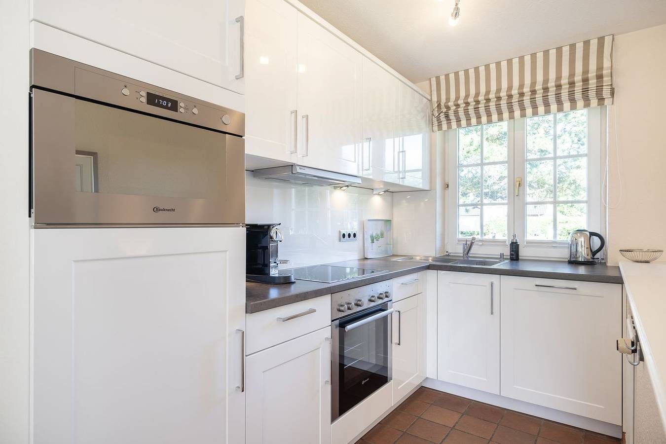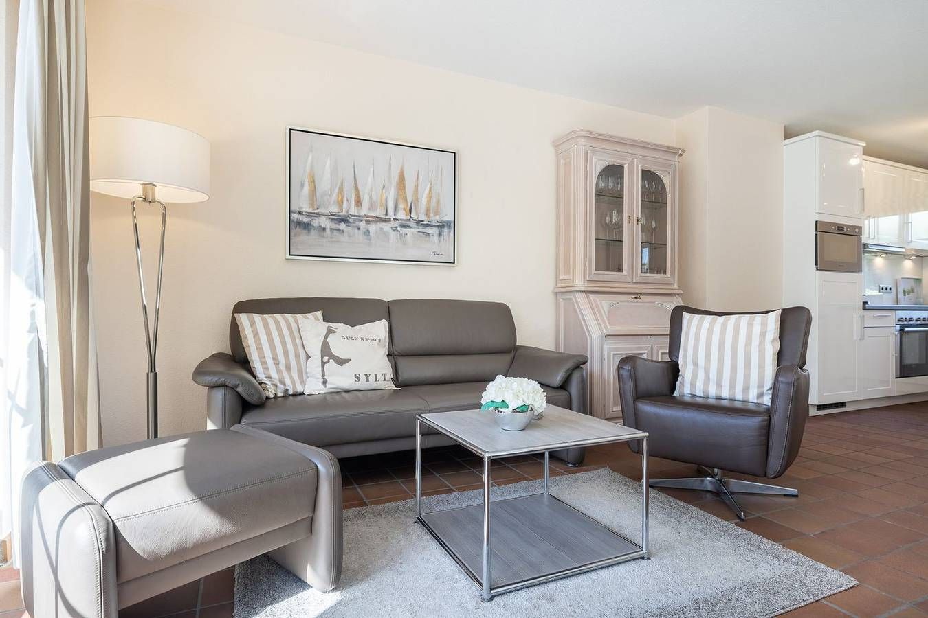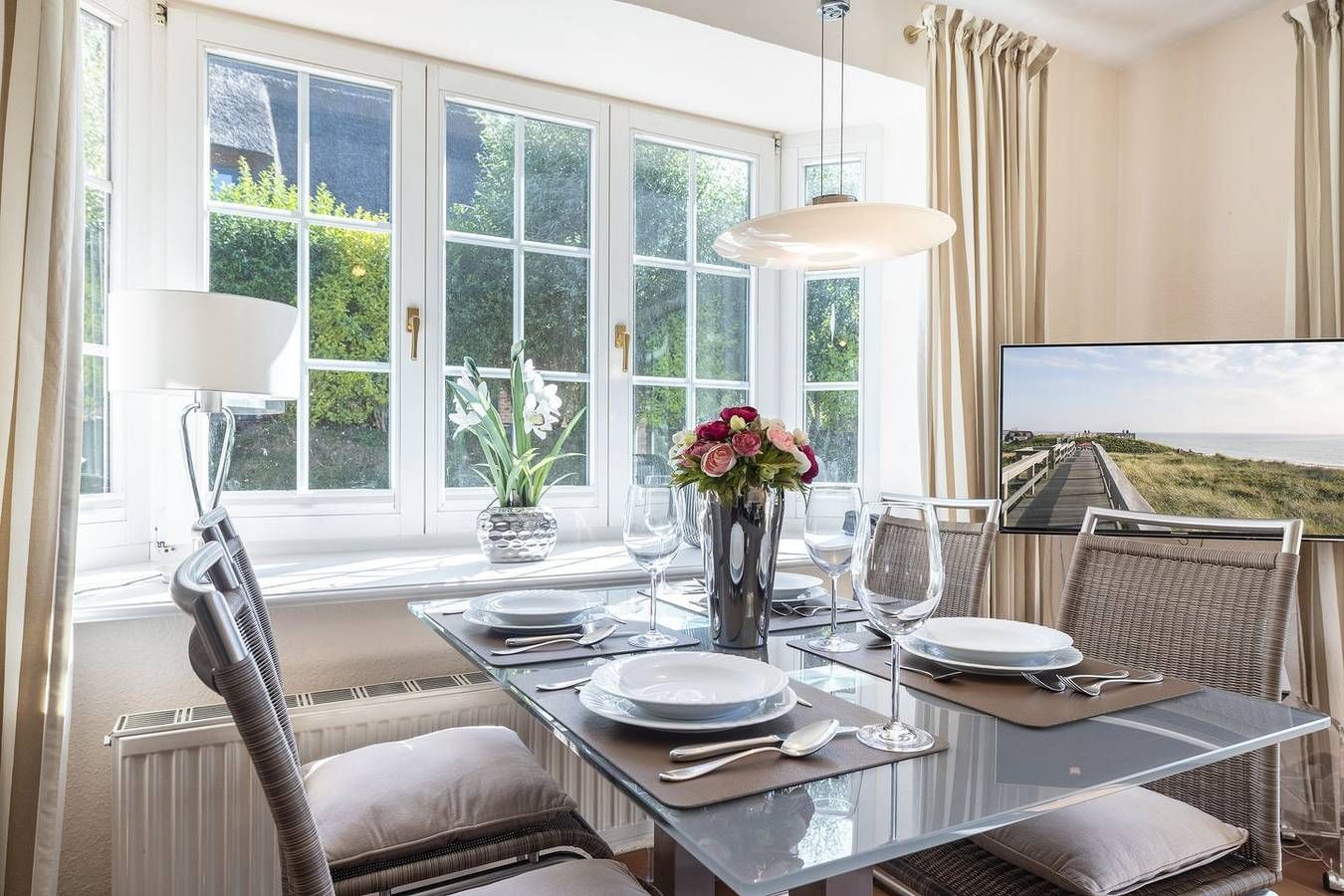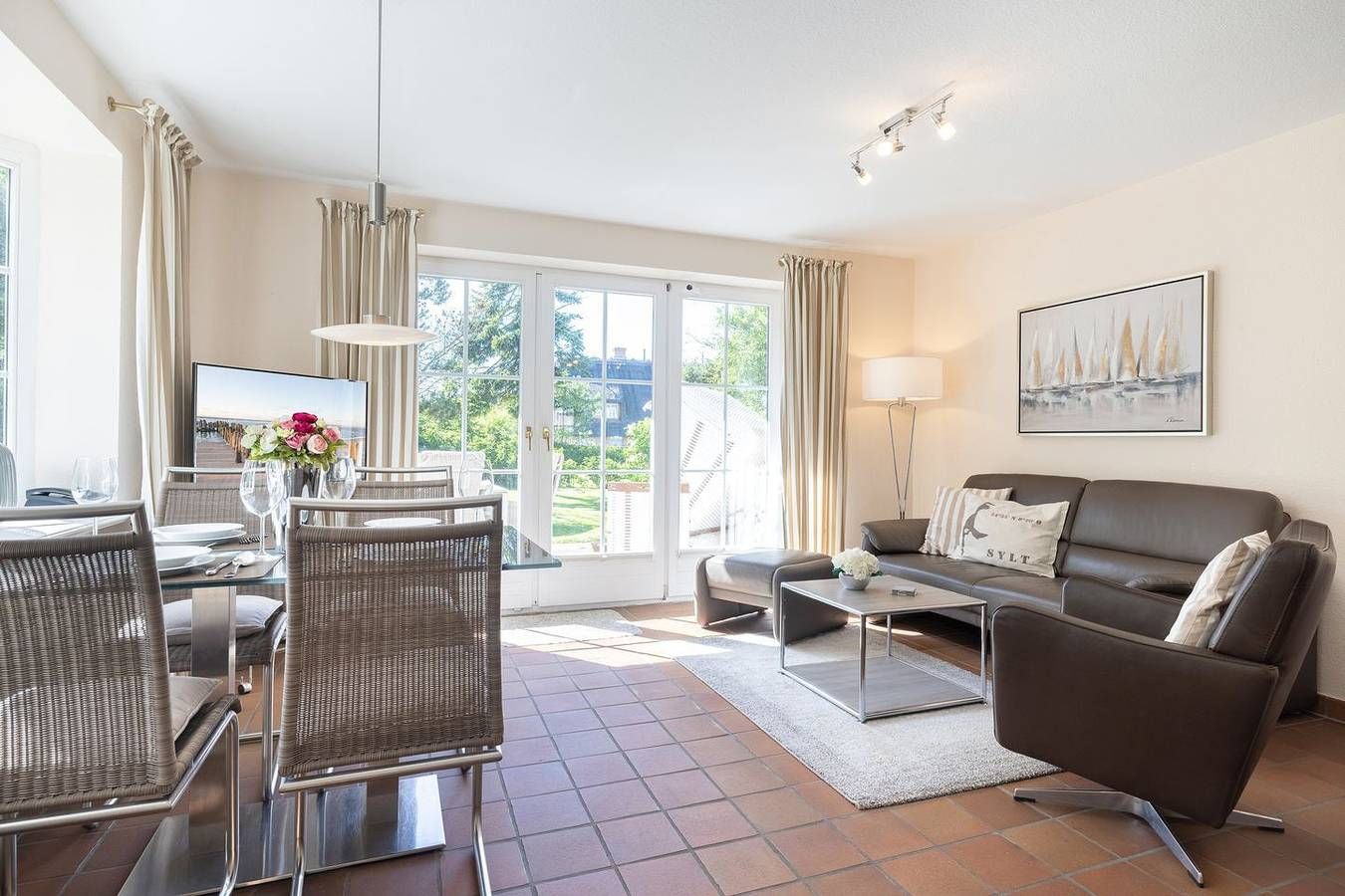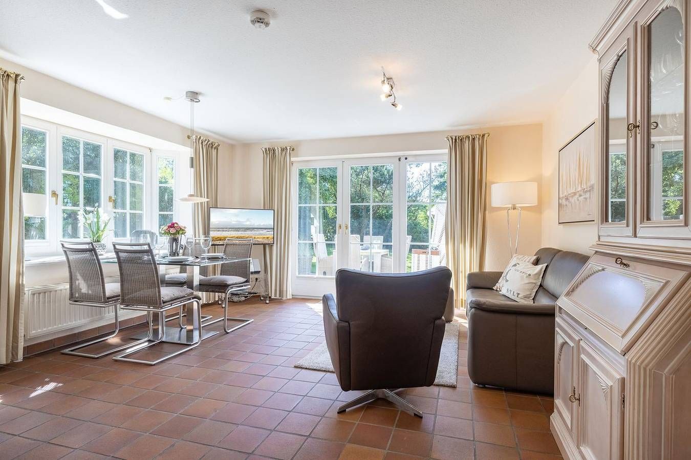 Ihr Komfort-Landhaus. Auf einem hübsch eingewachsenen, naturbelassenen Grundstück empfängt Sie das zentral, aber dennoch strandnah gelegene Landhaus Köövenhüs. Die lichtdurchfluteten und sehr großzügigen Appartements bieten Ihnen einen schönen Wohnkomfort für Ihren relaxten Urlaub. Die zum Westen ausgerichteten Terrassen und Balkone laden zum Open-Air-Verweilen ein. Strandnah gelegenes, sehr komfortables 3-Raum-Appartement im Erd- und Untergeschoss. Ca. 78qm Nutzfläche EG: Geschmackvoll eingerichteter, heller Wohnraum mit Kabel-TV und Telefon. Integrierte Küche mit Geschirrspüler und Backofen. Gäste-WC. UG: 1 Raum mit Doppelbett (Boxspringbett) (180x200cm) sowie 1 Raum mit Doppelbett (180x200cm). Dusche/WC. Sehr schöne West-Terrasse auf einem naturbelassenen Grundstück. Strandkorb (ca. von April-Oktober). Münzwaschmaschine und -Trockner im Haus. Parkplatz