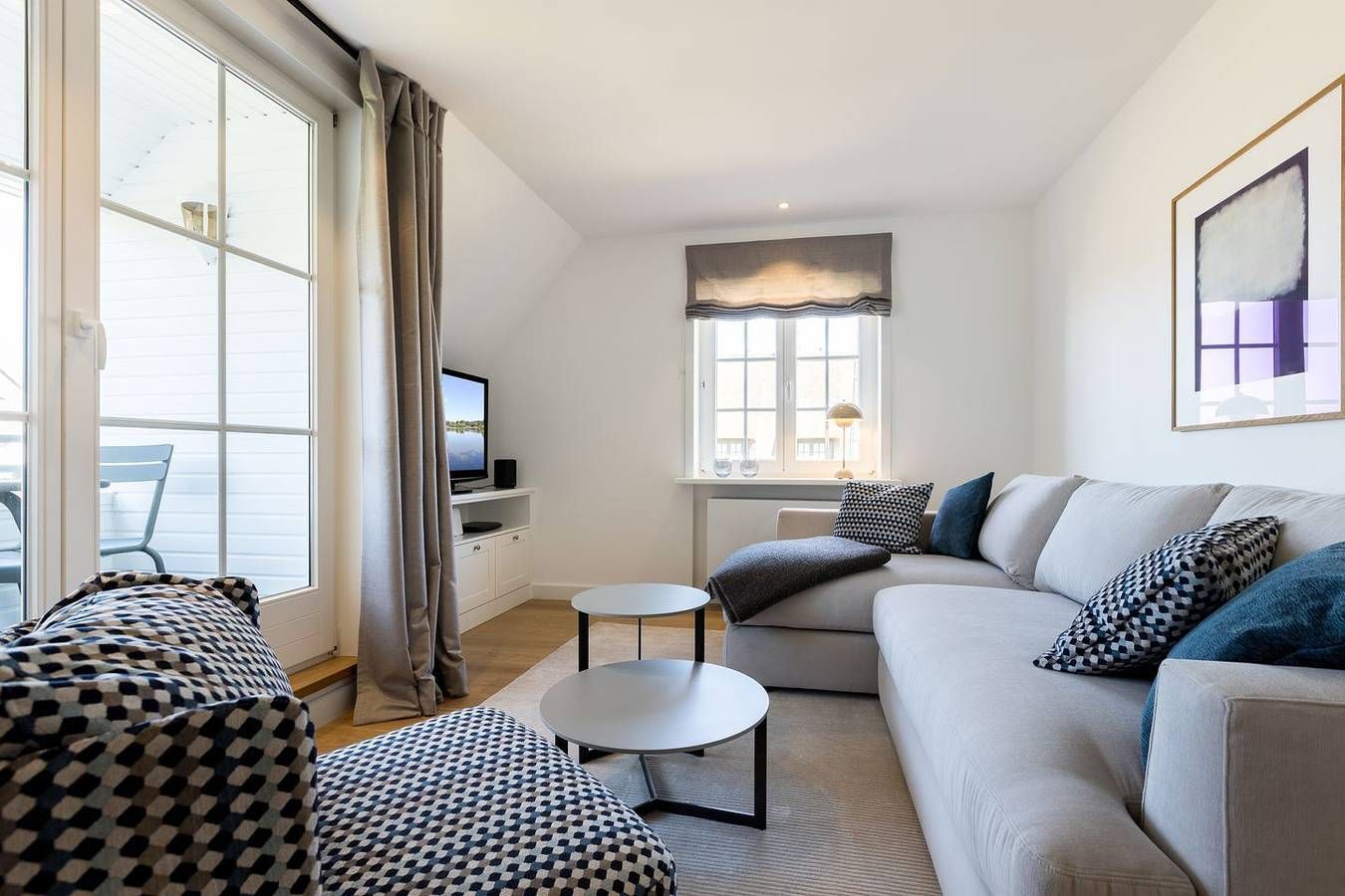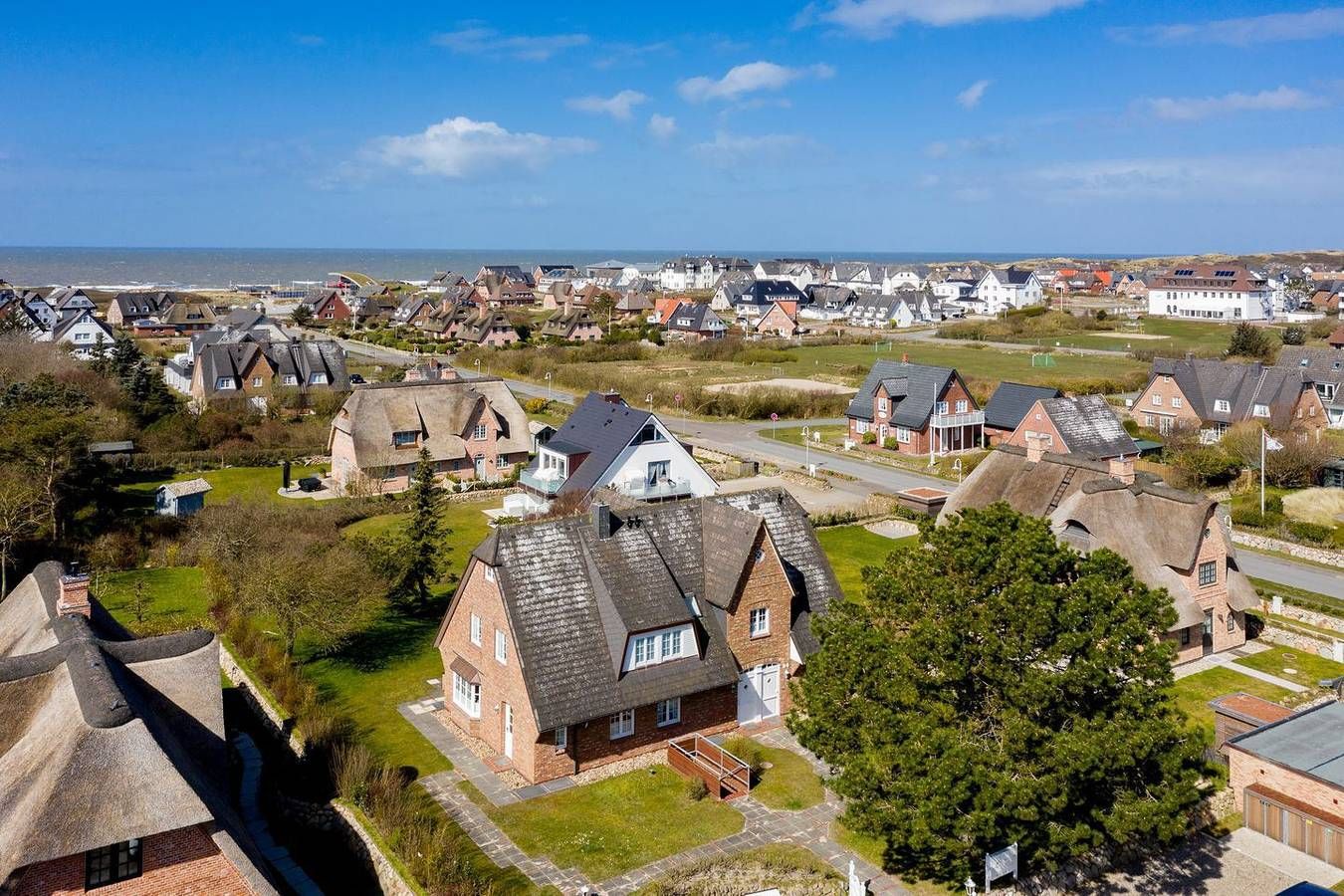 Ihr Komfort-Landhaus. Auf einem hübsch eingewachsenen, naturbelassenen Grundstück empfängt Sie das zentral, aber dennoch strandnah gelegene Appartement im Landhaus Köövenhüs, dass 2020 vollständig neu renoviert wurde. Das lichtdurchflutete und sehr großzügige Appartement bietet Ihnen einen schönen Wohnkomfort für Ihren relaxten Urlaub. Der zum Westen ausgerichtete Balkon mit Fermob Balkonmöbel laden zum Open-Air-Verweilen ein. Domizilaufteilung: Strandnah gelegenes, sehr komfortables 4-Raum-Appartement im Ober- und Dachgeschoss. Ca. 89 qm Nutzfläche für bis zu 5 Personen. OG: Geschmackvoll eingerichteter, heller Wohnraum mit Eichenparkett, 3x Flatscreen-TV mit Kabel-TV und Internet (Netflix, Youtube, usw.), Bluetooth Sound Box, WLAN, . Integrierte Bluthaup Küche mit Geschirrspüler, Microwelle und Backofen. Bad mit Antonio Lupi Waschtisch und hinterleuchtetem Spiegel inkl. Bluetooth Lautsprecher, sowie Dusche und WC mit Vola Armaturen. Ein schöner Raum mit Boxspring Bett (ca. 1,8mx2m) und viel Schrankplatz. Heimelige, kleine West-Loggia für einen beschaulichen Abendausklang. DG: Raum mit Boxspring Bett (ca. 1,8m x 2m) und sogar kleinem Dünen- und Meerblick. Kleines Bad mit Dusche und WC. Ihren privaten Strandkorb (ca. von April–Oktober) finden Sie auf dem Grundstück ein einer Sonnenkuhle. Gemeinschafts-Münzwaschmaschine und -Trockner im Haus/Kellerräumlichkeit. Parkplatz