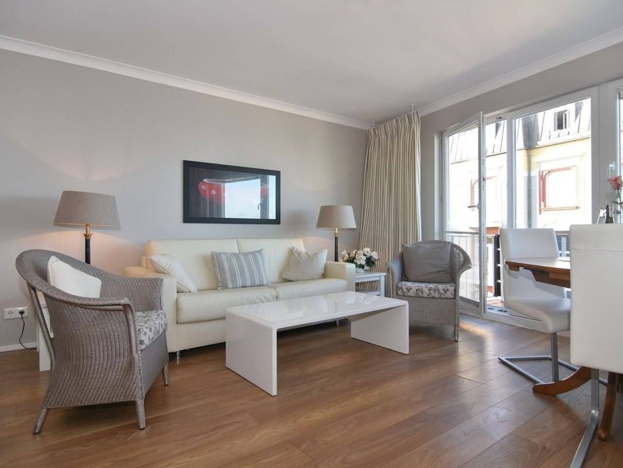 Exklusive 2 Zimmer-Ferienwohnung, ca. 45m², 4. OG, Nichtraucher mit Meerblick. Wohnzimmer mit Schlafcouch und 2 Sessel, Essplatz, WLAN (ohne Gewähr), Flat-TV und Radio, Austritt mit Blick auf das Meer, separate Küche mit...