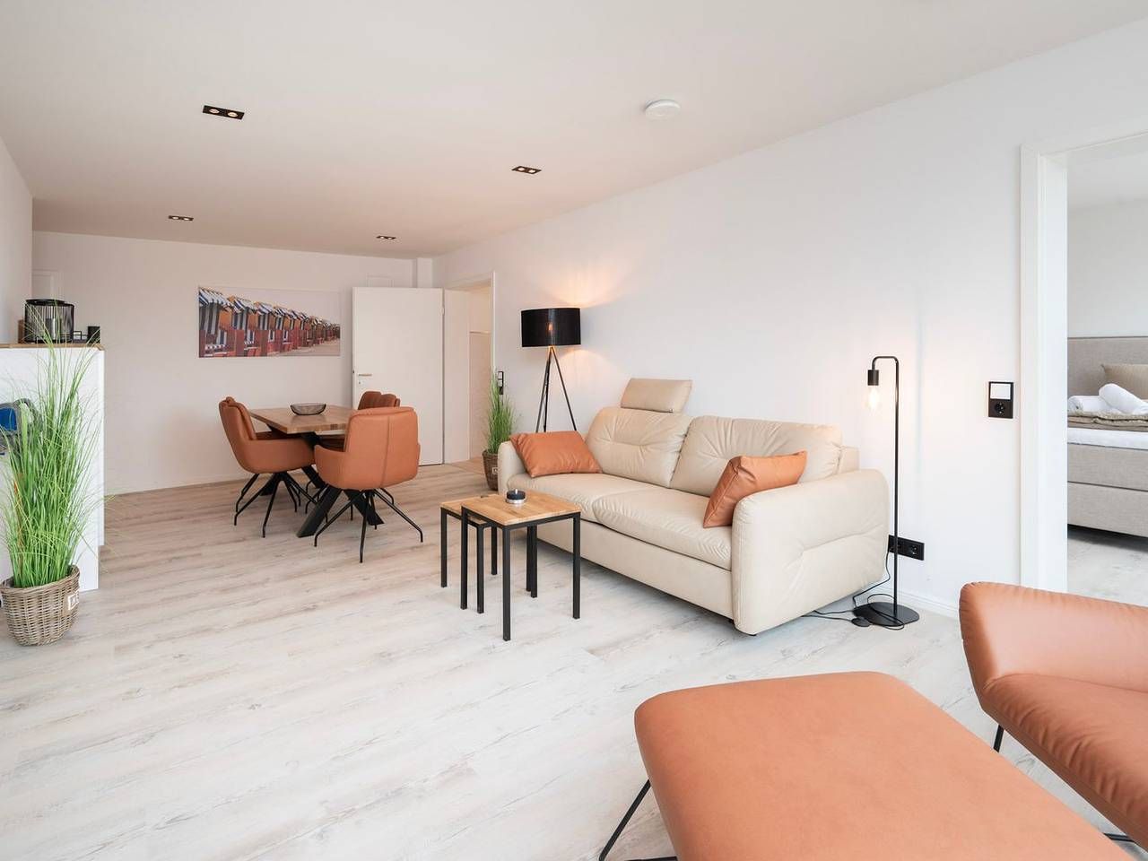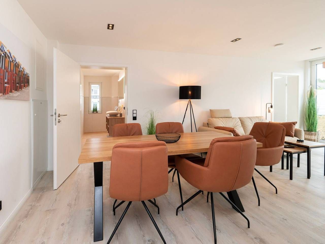 Willkommen in der Inseltörn Wohnung 4 – Ihrem perfekten Rückzugsort für einen unvergesslichen Urlaub an der Nordseeküste! Diese großzügige und modern eingerichtete Ferienwohnung erstreckt sich über 100 Quadratmeter und ist ideal für Familien oder Gruppen von bis zu fünf Personen. Ihre Erholung beginnt bereits beim Betreten dieser lichtdurchfluteten Wohnung, die mit hochwertigen Möbeln und liebevollen Details ausgestattet ist. Insgesamt bietet die Wohnung zwei gemütliche Schlafzimmer, die für erholsame Nächte sorgen. Der offene Wohnbereich mit einer komfortablen Sofaecke und einem großen Esstisch lädt dazu ein, gesellige Abende zu verbringen und gemeinsame Mahlzeiten zuzubereiten. Die moderne, voll ausgestattete Küche ist mit einem Ceranherd, einem Elektrobackofen, einer Spülmaschine und weiteren Annehmlichkeiten wie einer Kaffeemaschine und einer Nespresso-Maschine ausgestattet – hier können Sie all Ihre kulinarischen Wünsche verwirklichen. Ein weiteres Highlight der Wohnung ist das stilvolle Badezimmer mit bodengleicher Dusche, Waschbecken, WC und großen Fenstern, die für eine helle Atmosphäre sorgen. Die Fußbodenheizung und die Wärme der Einrichtung schaffen eine wohlige Atmosphäre, die zum Entspannen einlädt. Zusätzlich stehen Ihnen praktische Annehmlichkeiten wie eine Waschmaschine, ein Trockner und kostenfreies WLAN zur Verfügung. Die Inseltörn Wohnung 4 liegt in idealer Lage, nur 500 Meter von der Nordsee entfernt. Hier können Sie ausgedehnte Strandspaziergänge unternehmen oder sich einfach am Strand entspannen. Die frische Luft und das Meer sind für viele zwei der Hauptgründe, um eine Reise in das schöne Büsum zu starten! Ein nahegelegenes Restaurant ist nur 180 Meter entfernt und bietet köstliche norddeutsche Spezialitäten. Die Umgebung bietet zahlreiche Aktivitäten wie Ausflüge und Freizeitmöglichkeiten für die ganze Familie. Familienfreundlichkeit wird bei uns großgeschrieben! Kinder sind in der Inseltörn Wohnung 4 herzlich willkommen, und wir haben dafür gesorgt, dass die Unterkunft allergikergeeignet ist – für eine sorgenfreie Zeit für alle. Der private Parkplatz direkt vor der Tür macht die Ankunft und Abreise besonders einfach und bequem. Genießen Sie die frische Meeresbrise auf Ihrer Terrasse, ausgestattet mit Gartenmöbeln, wo Sie die Abende ausklingen lassen oder einfach den Tag planen können. Der Aufenthalt in dieser Wohnung verspricht nicht nur Komfort, sondern auch erholsame Momente in einer traumhaften Umgebung. Im Preis enthalten ist die tägliche Nutzung (2,5 Stunden) der Büsumer Meerzeit! (Saunanutzung nicht inkludiert.) Sie haben die Möglichkeit, ein externes Frühstück gegen Aufpreis hinzu zubuchen. Sprechen Sie uns bei Bedarf gerne an. Übernachten Sie in der Inseltörn Wohnung 4 und erleben Sie Ihren Traumurlaub an der Nordsee. Buchen Sie jetzt und lassen Sie sich von dieser einzigartigen Unterkunft verzaubern – Ihr perfekter Urlaub wartet auf Sie!