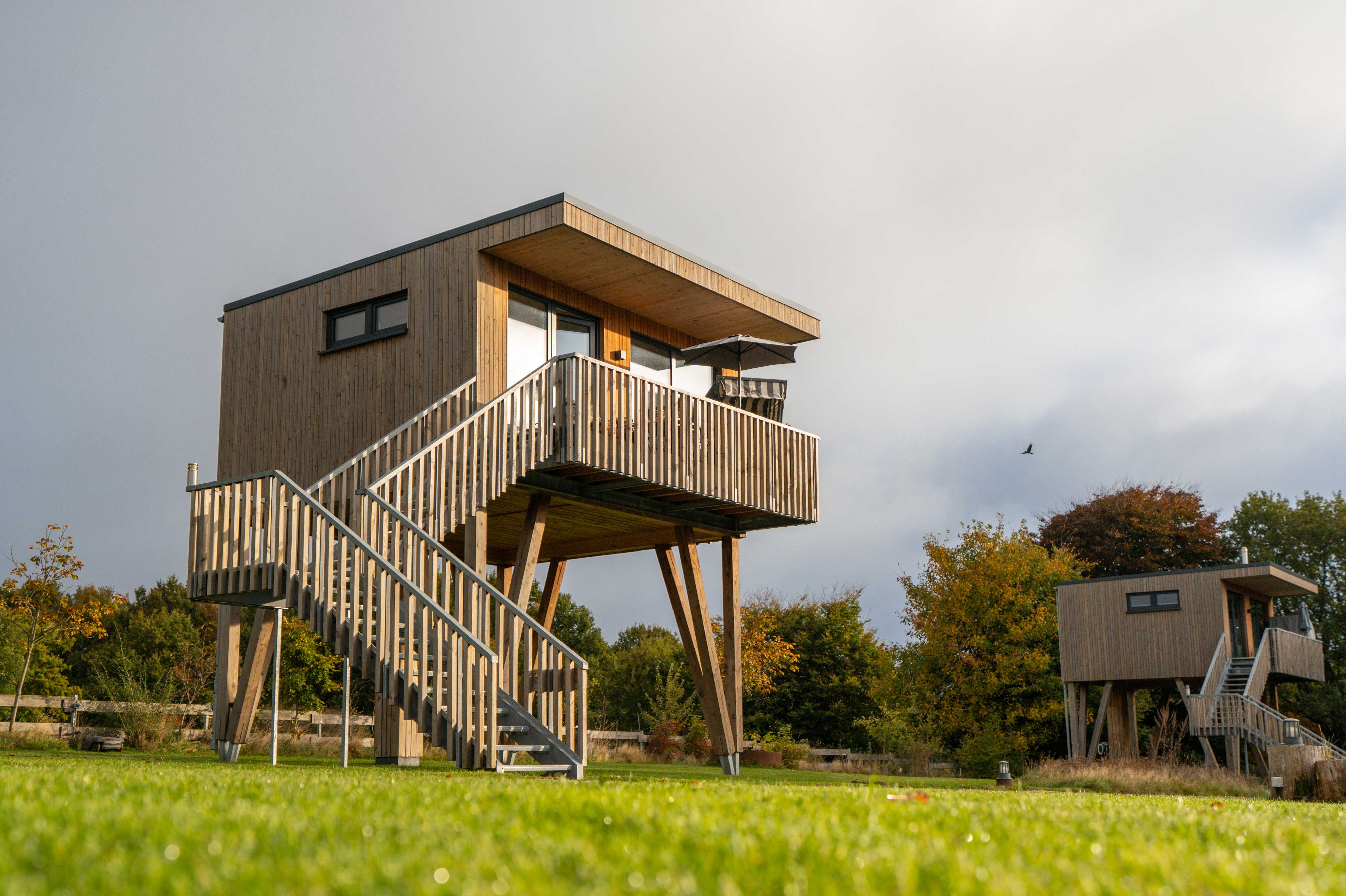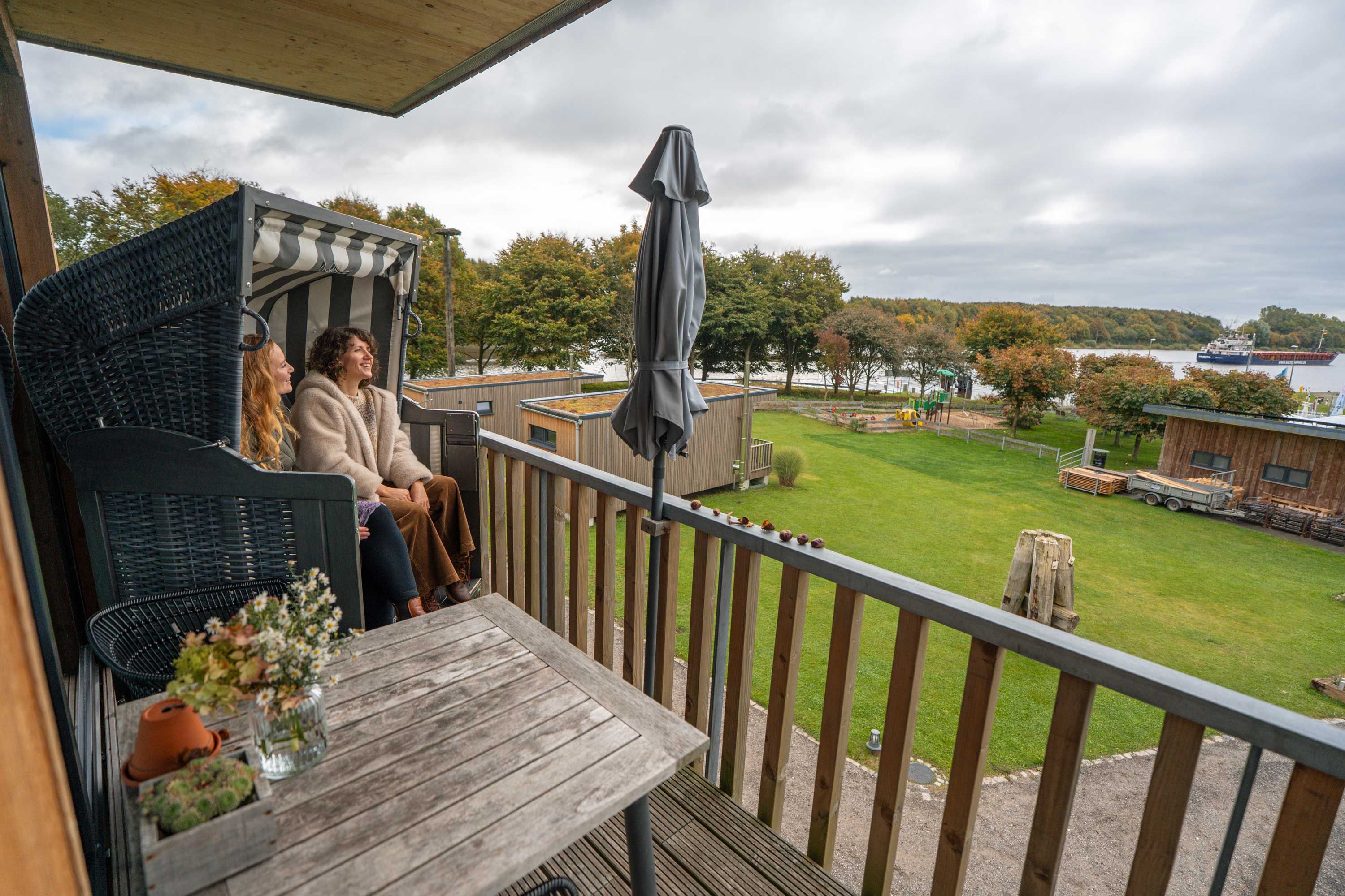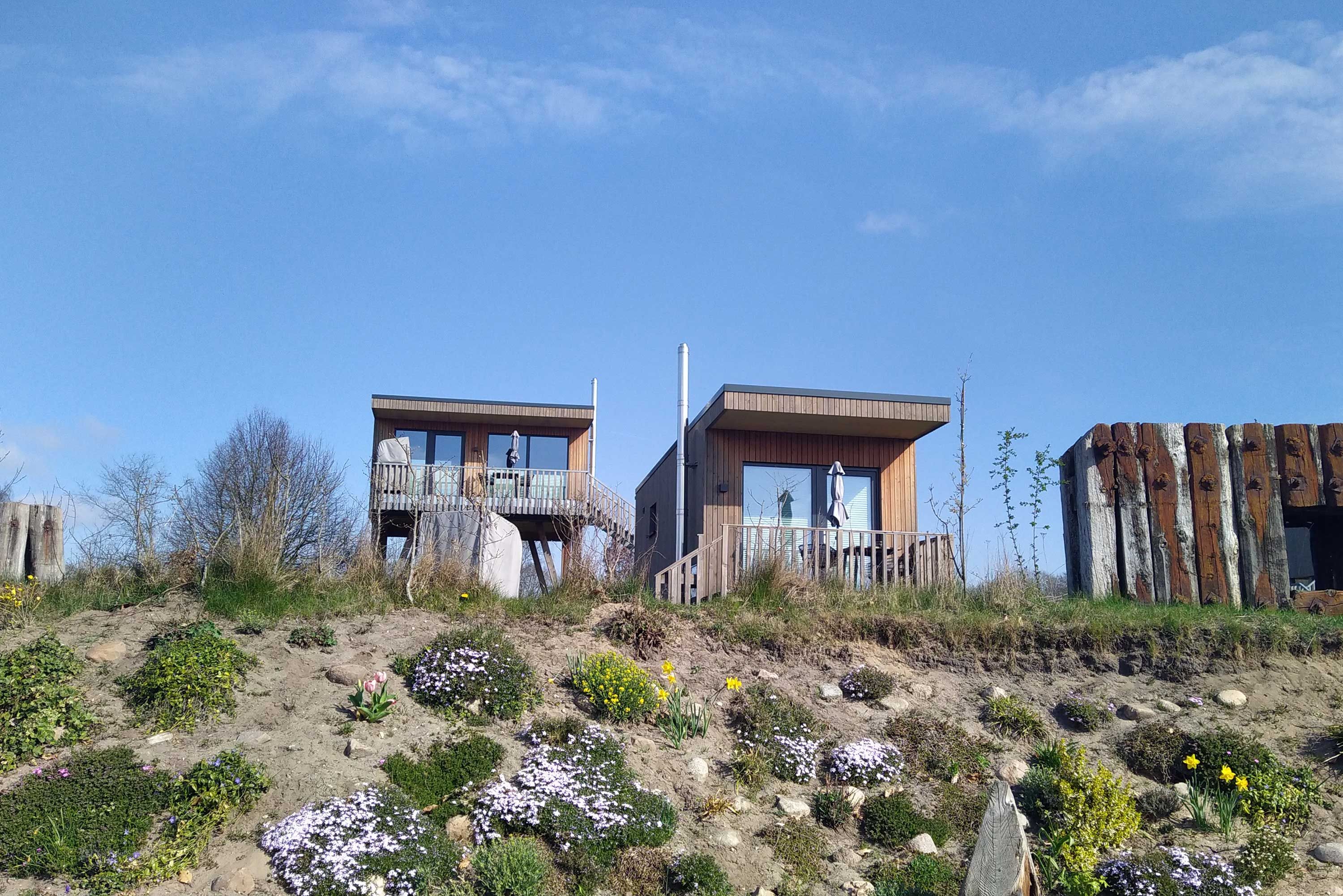 Hinter der Pension befinden sich 3 modernen Modulhäuser – ideal für alle, die Privatsphäre und Komfort schätzen. Ein besonderes Highlight sind die 3 Stelzenhäuser: In 4 Metern Höhe bieten sie eine außergewöhnliche Perspektive und laden auf ihrer überdachten Terrasse zum entspannten Beobachten der vorbeiziehenden Schiffe ein.