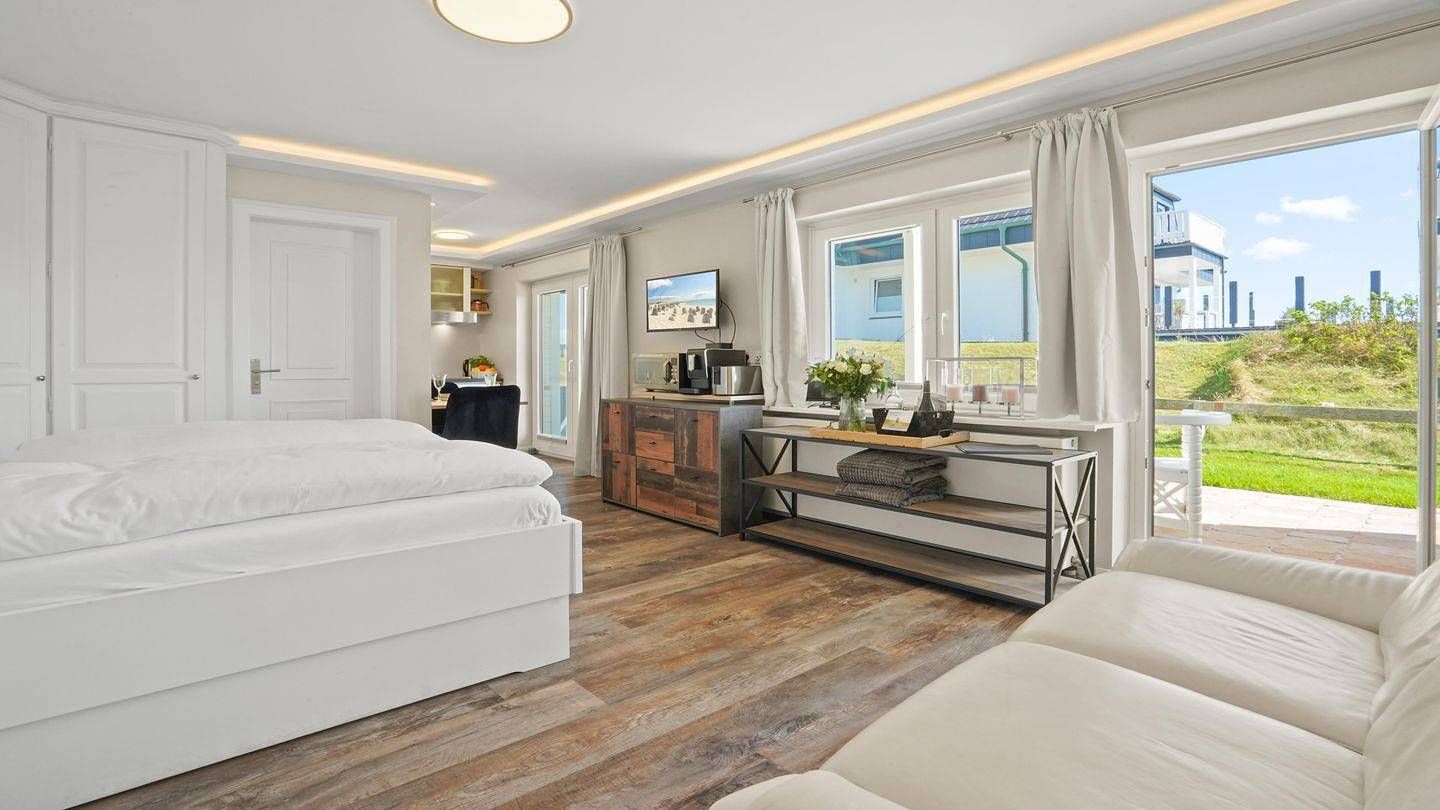 Hörnum (Sylt)Mit Meerblick vonder eigenen Sonnen-Süd-Terrasse aus und damit in erstklassiger Lage befindet sich diese charmante 1-Zimmer-Suite mit offen abgetrennter Pantryküche, Die Dünen-Suite ruft nach einem...