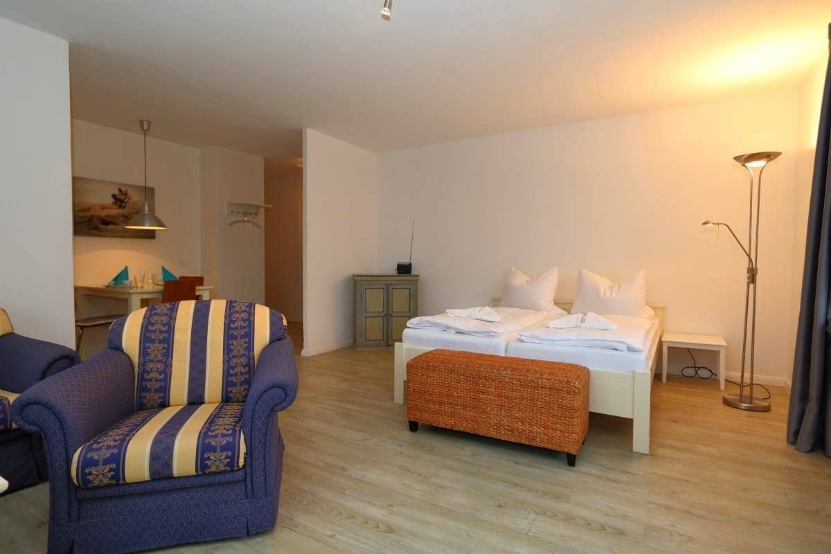 Sonderaktion wegen Renovierung im Januar In zentraler Lage befindet sich dieses Appartement, nur wenige Schritte zum Strandübergang. Dieses große 1 Zimmer Appartement ist in zentraler Lage am Westerländer Hauptstrand. Der Strandübergang sowie die Friedrichstraße sind ca 200 Meter entfernt. Das großzügige Wohnzimmer bietet Ihnen eine Sitzecke mit Sofa und Sessel, Flat-TV und Zugang zum Südbalkon. Angrenzend das Doppelbett mit Nachttischen und Leseleuchte. Die Essecke liegt neben der separaten Küche, diese ist mit Spülmaschine und kleinem Backofen/Mikrowelle ausgestattet. Küchenutensilien sowie Wasserkocher, Toaster und Kaffeemaschine sind vorhanden. Das moderne Duschbad ist mit reichlich Ablagen bestückt. Aufgrund der positiven Rückmeldungen ist das Wäschepaket jetzt mit im Angebot enthalten. Wenn Sie keine Wäsche wünschen, bitten wir Sie, die Wäsche spätestens 48 Stunden vor Anreise explizit und schriftlich abzubestellen. Vielen Dank.