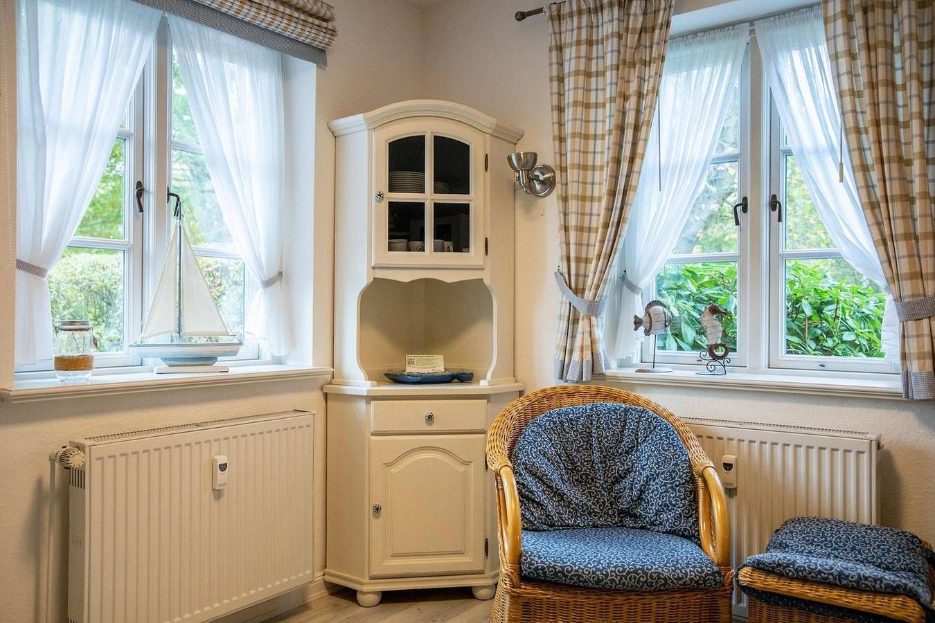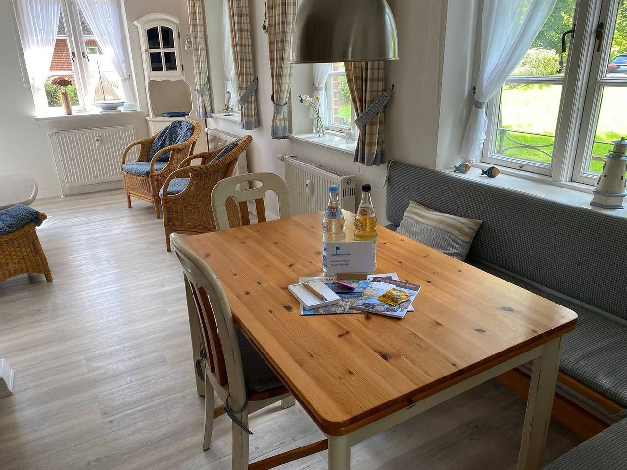 Nur 150 Meter vom Wyker Südstrand liegt, am Kurpark angrenzend, dieses gemütliche und familienfreundliche Ferienobjekt. Es handelt sich hierbei um insgesamt vier Doppelhaushälften. Das von uns angebotene Objekt ist die vordere Hausscheibe. Auf insgesamt 65qm steht Ihnen im Erdgeschoss des Hauses eine gut ausgestattete Küche (u.a. mit Spülmaschine, Mikrowelle und Backofen) und ein helles Wohnzimmer mit direktem Zugang zur Terrasse, auf der sich von Anfang April bis Mitte Oktober ein Strandkorb und Gartenmöbel mit Liege befinden, zur Verfügung. In der 1. Etage finden Sie ein Schlafzimmer mit Doppelbett (180x200) (es gibt zusätzlich Platz für ein Kinderreisebett), ein Gäste-WC und ein Duschbad mit Fenster vor. Über eine Treppe gelangen Sie ins Galeriezimmer, das mit 2 Einzelbetten (90x200) und Spielsachen für die kleinen Gäste ausgestattet ist. Für die größeren Gäste gibt es viele spannende Bücher, CDs, DVDs und ein Festnetztelefon (kostenfreie Nutzung ins deutsche Festnetz). Die Eigentümer haben bei der Einrichtung des Objektes auf hochwertige und Allergiker gerechte Ausstattung großen Wert gelegt. Ebenso wird die Kinderfreundlichkeit groß geschrieben. Treppengitter, Rausfallschutz, Babybett, Hochstuhl und Steckdosensicherungen sind vorhanden. Auch auf dem 1.400qm großen Grundstück gibt es ausreichend Platz zum Spielen für Kinder. Im Keller des Hauses befindet sich eine Sauna. Diese können Sie reservieren und steht dann nur Ihnen zur Verfügung. (Bitte beachten Sie, dass es aufgrund der Pandemie und der aktuellen Landesverordnung zu Einschränkungen der Nutzung kommen kann. Daraus ergibt sich keine Mietminderung.) Der andere Teil des Kellers wird als Waschraum genutzt. Hier stehen Ihnen eine Waschmaschine und ein Trockner (gegen Gebühr) sowie Wäschekörbe, Wäscheständer und Klammern zur Verfügung. Ebenso finden Sie hier Spielgeräte und Holzkohlegrills. Die Lage des Hauses ermöglicht Ihnen einen erholsamen Urlaub verbunden mit der direkten Nähe zur Nordsee. Für Ihre Entspannung und den perfekten Strandtag bieten wir Ihnen einen Strandkorb inklusive Strandlaken am Wyker Strand (Abschnitt 22), keine 2 Minuten Gehminuten entfernt.
