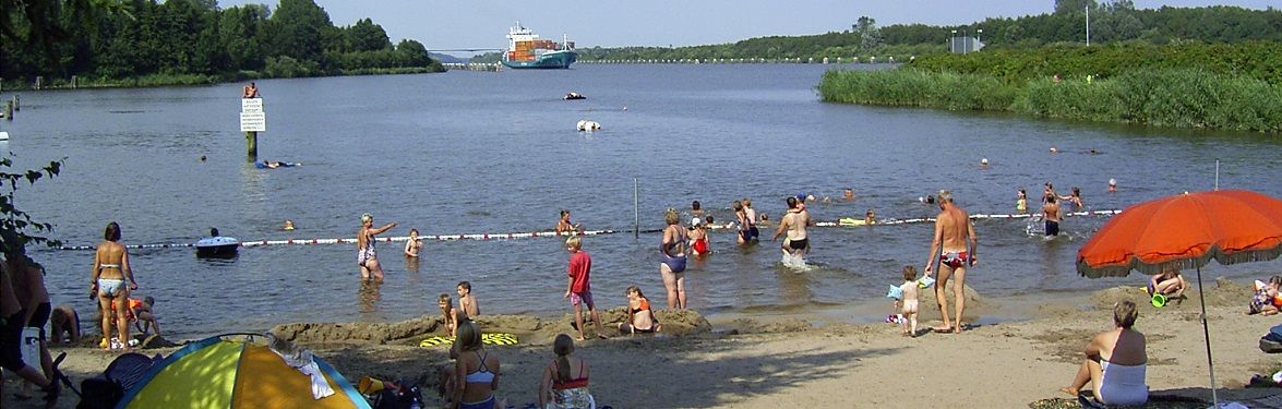 Neben dem maritimen Flair lädt der Strand zum Entspannen und Sonnenbaden ein. Die weite Uferlandschaft und das ruhige Wasser machen ihn zu einem perfekten Ort für Familien, Naturfreunde und Erholungssuchende. Wer die vorbeiziehenden Schiffe aus nächster Nähe betrachten möchte, kann sich direkt an den Strand setzen und das beeindruckende Schauspiel genießen. Ein Spaziergang entlang des Wassers oder eine kleine Picknickpause mit Blick auf den Kanal runden das Erlebnis perfekt ab.