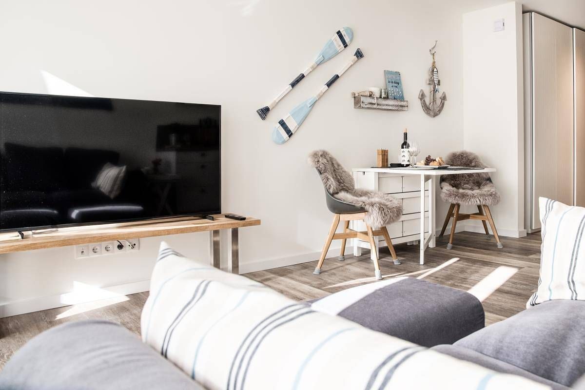 Die Ferienwohnung „Kleine Flucht" befindet sich in den neuen Beach Houses in perfekter Lage – direkt am Deich, unmittelbar an der Perlebucht. Näher an der Nordsee können sie fast nicht wohnen. Die 42m² liegen im Erdgeschoß, die Wohnung ist daher barrierefrei erreichbar. In der „Kleinen Flucht" finden Sie einen Ort, an dem Sie sich rundum wohlfühlen werden. Sanfte und ruhige Farben treffen auf kuschelige Schlaf- und Sitzgelegenheiten - perfekt zum Genießen und Entspannen. Stilvolle und feine Accessoires von „Riviera Maison" runden die Wohlfühlatmosphäre ab. Sonnige Tage können Sie auf der großzügigen Terrasse in gemütlichen Loungesesseln verbringen, und sollte draußen doch mal nordisches Schietwetter herrschen, lädt ein 55"-Ambilight-HD-TV zum ruhigen Fernsehabend ein. Für Ihren Kaffeegenuss steht eine Nespresso Maschine und eine Senseo-Switch (für Pads + Filterkaffee) bereit. Selbstverständlich erwartet Sie kostenfreies W-LAN und ein eigener PKW-Stellplatz. Der Büsumer Ortskern mit Shopping- und Flaniermeile, Supermärkten, Hafen, Restaurants und Cafés ist schnell mit dem Rad oder zu Fuß erreicht. Die „Kleine Flucht" heißt Sie herzlich willkommen zu einer rundum erholsamen Auszeit an der Nordsee, mit herrlich entspannten Urlaubsmomenten zum Krafttanken und Wohlfühlen. Die Ferienwohnung „Kleine Flucht" befindet sich in den neuen Beach Houses in perfekter Lage – direkt am Deich, unmittelbar an der Perlebucht. Näher an der Nordsee können sie fast nicht wohnen. Der Büsumer Ortskern mit Shopping- und Flaniermeile, Supermärkten, Hafen, Restaurants und Cafés ist schnell mit dem Rad oder zu Fuß erreicht. Die „Kleine Flucht" heißt Sie herzlich willkommen zu einer rundum erholsamen Auszeit an der Nordsee, mit herrlich entspannten Urlaubsmomenten zum Krafttanken und Wohlfühlen. ca. 350m bis zum Strand mit Strandkorbverleih ca. 20 Gehminuten ins Zentrum und zum Hafen ca. 20 Gehminuten bis zum Schwimmbad Piratenmeer ca. zwei Gehminuten zur nächsten Gaststätte ca. 15 Gehminuten bis zum nächsten Supermarkt ca. 250m bis zum Verkaufswagen für Backwaren ca. 300m bis zur Haltestelle Krabbenexpress Linie 1 ca. 3 Gehminuten zum Hundestrand ca. 750 m bis zur Station für Stand Up Paddling, Kite- und Windsurfen