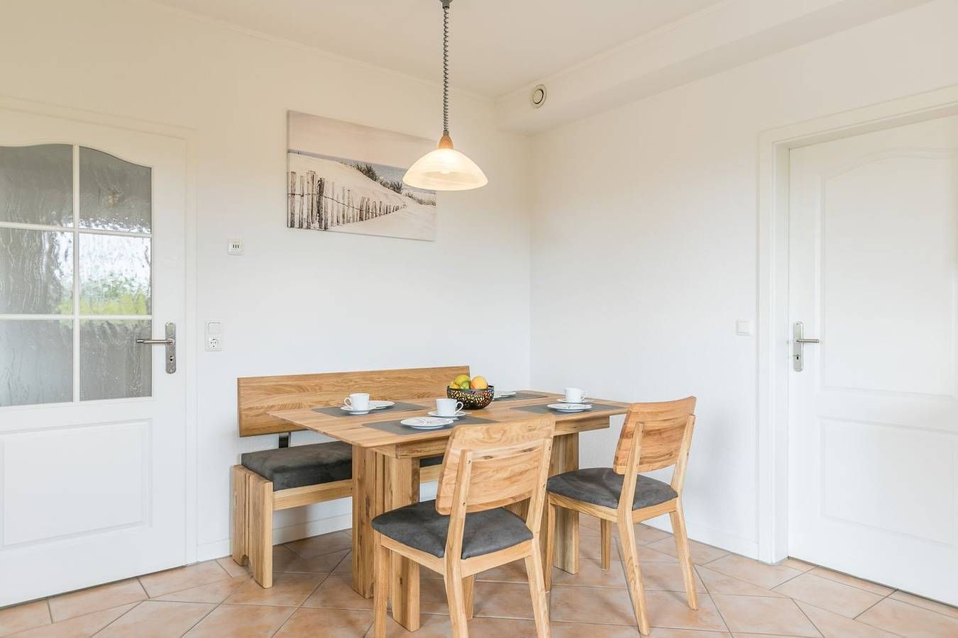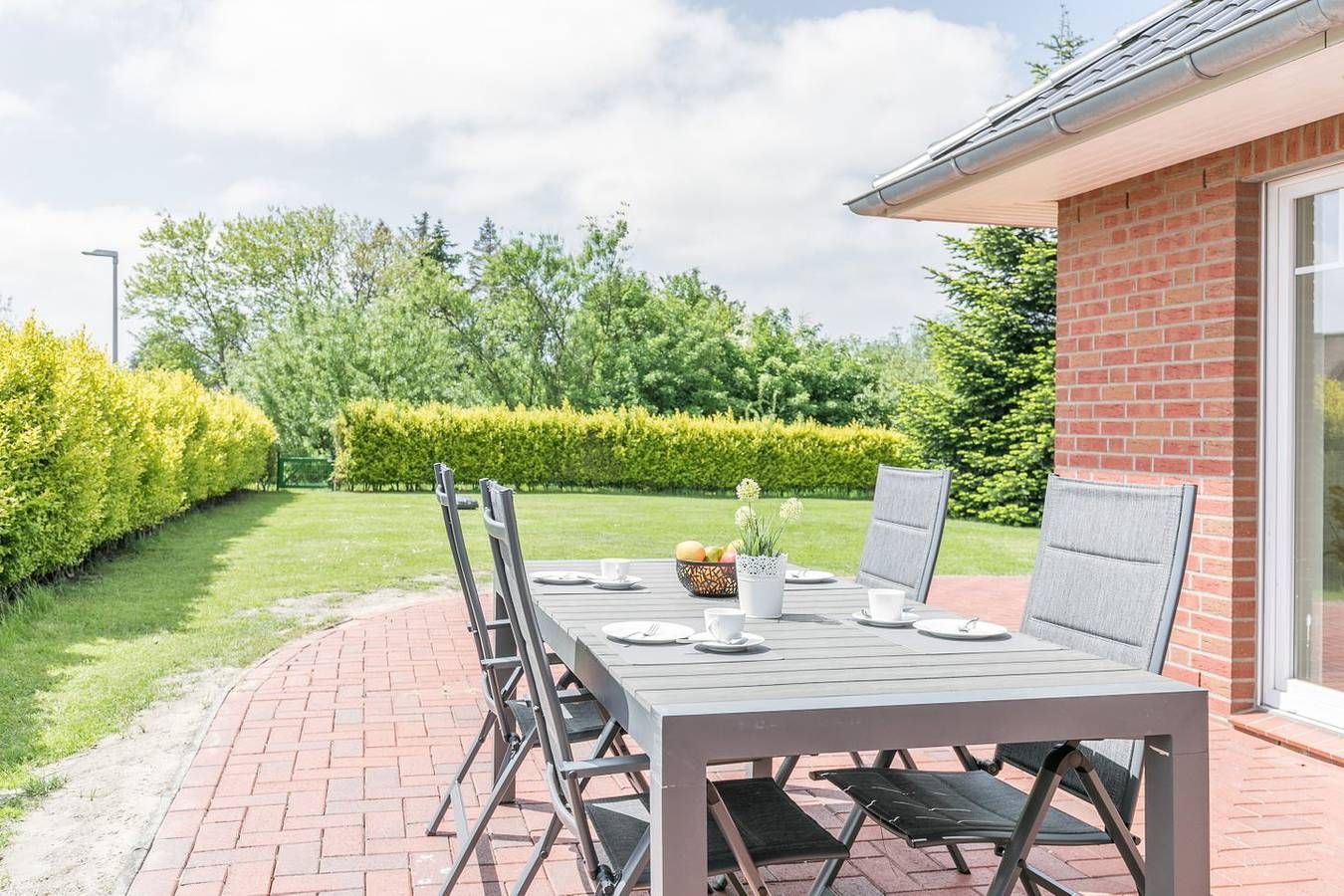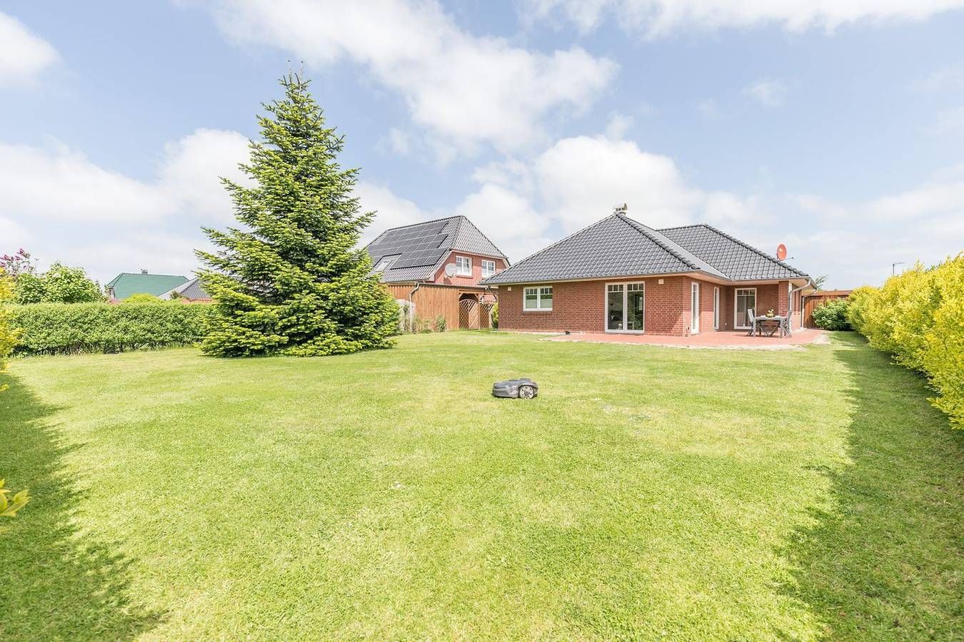 Viel Platz für 4 Personen und 2 Hunde - "Kleines Perlenhaus" in Büsum! Verbringen Sie einen entspannten Urlaub mit Ihren Hunden in diesem großen Ferienhaus "Kleines Perlenhaus" in ruhiger Lage in Büsum! Auf 127m² mit 2 Schlafzimmern und 2 Bädern haben Sie und Ihre Vierbeiner ausreichend Platz. Das große eingezäunte Grundstück lädt quasi zum ausgiebigen spielen und verweilen ein! Durch einen Schleichweg erreichen Sie in wenigen hundert Metern, vorbei an einem saisonalen Bäcker & Gastronomie, die Familienlagune Perlebucht oder den Hundestrandabschnitt! Im Ferienhaus gibt es neben der voll ausgestatteten Küche ein großes Wohnzimmer - beide Räume mit direktem Zugang zur Sonnen-Terrasse - 2 Schlafzimmer, eines davon mit Bad en Suite. Wir heißen Sie herzlich Willkommen in diesem familien- und hundefreundlichen Ferienhaus "Kleines Perlenhaus"! Wohnzimmer: Ecksofa mit Wohnzimmertisch, Sessel mit Fußhocker, Flachbild TV, TV-Board, Kommode, Esstisch mit 6 Stühlen, elektr. Außenrollo, Zugang zum Garten, Plissees für die Fenster werden noch angebaut Küche: Sitzgelegenheit mit Tisch, Sitzbank und 2 Stühlen, Herd mit Ceranfeld und Backofen, Kühlschrank, Kaffeemaschine, Wasserkocher, Toaster, Fenster, Terrassentür mit Zugang zur Terrasse Schlafzimmer 1 mit Bad en Suite: Doppelbett 200 cm x 180 cm (je Matratze 90 cm, Betthöhe 55 cm), Lattenrost Kopf- und Fußteil verstellbar, Kleiderschrank 3-türig mit Ganzkörperspiegel, Korbstuhl, TV, Außenrollo, Fenster mit Plissee Bad: Badewanne, bodentiefe Dusche, WC, Spiegel, Waschbecken, Haartrockner, Fenster mit Plissee Schlafzimmer 2: Doppelbett 200 cm x 180 cm (je Matratze 90 cm, Betthöhe 55 cm), Lattenrost Kopf- und Fußteil verstellbar, Kleiderschrank 4-türig, Korbstuhl, TV, Außenrollo, Fenster mit Plissee Duschbad: Dusche, WC, Spiegel, Waschbecken, Haartrockner, Fenster mit Plissee Haus & Service: Großer eingezäunter Garten, Terrasse (teilweise überdacht), Rasenmähroboter, 2 kostenfreie Parkplätze, HWR mit Zugang zum Hof, W-Lan, Garderobe, Gartenmöbel, Fahrradschuppen mit Steckdose für E-Bikes, Wäsche optional dazu buchbar, Nichtraucherhaus Hunde-Informationen: Hunde-Freilauffläche im Rechenmeisterweg 4 in Büsum, Hundestrände in Büsum, Westerdeichstrich und Deichhausen, Tierarzt 3km entfernt, eingezäunter Garten Für einen Last Minute Urlaub in dieser Unterkunft melden Sie sich bitte telefonisch bei uns.