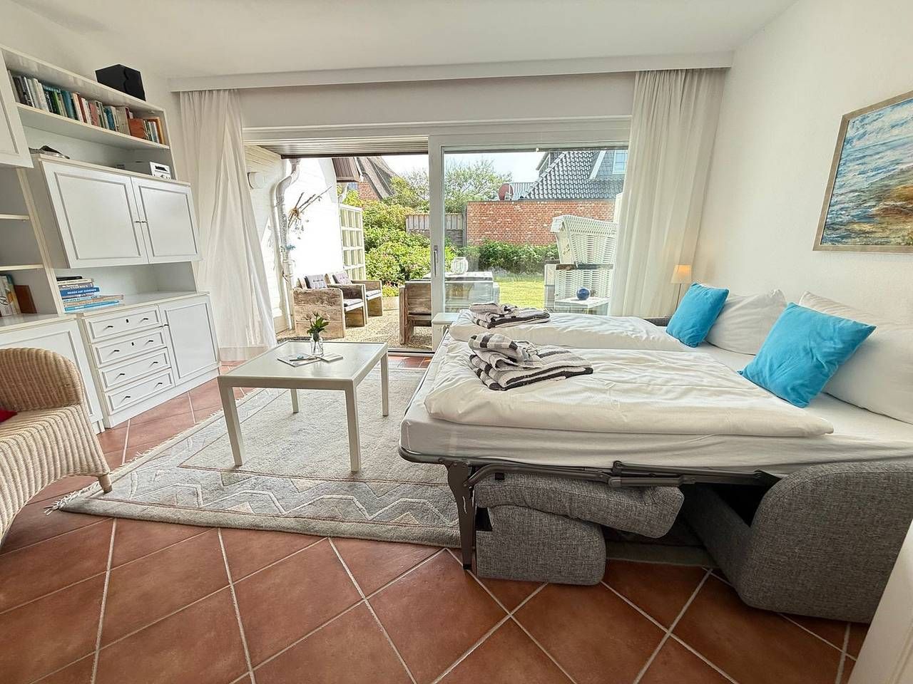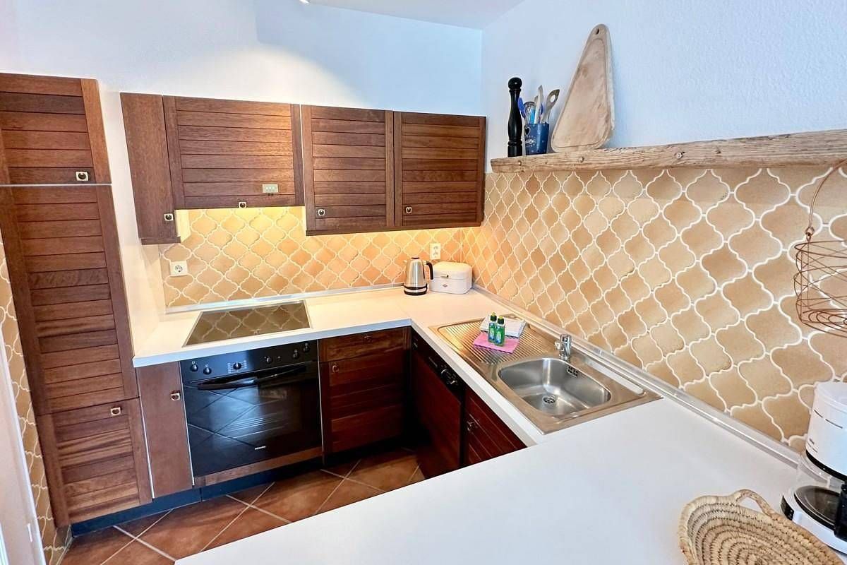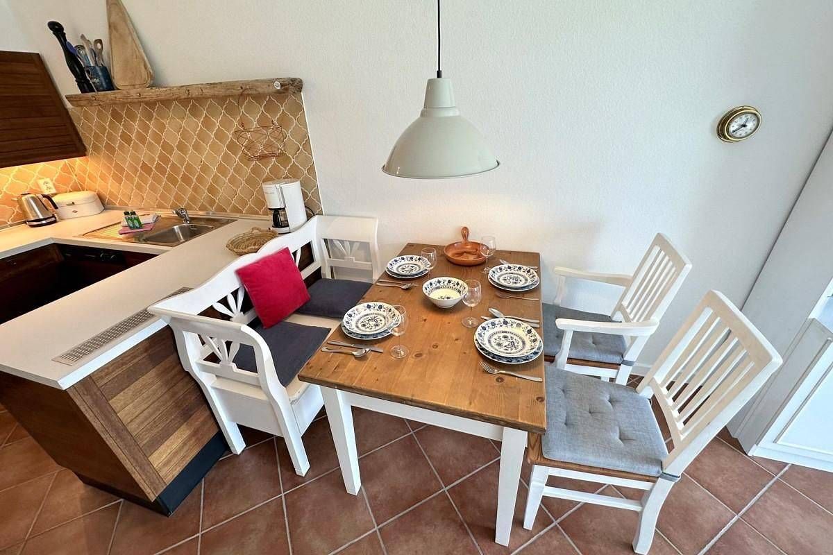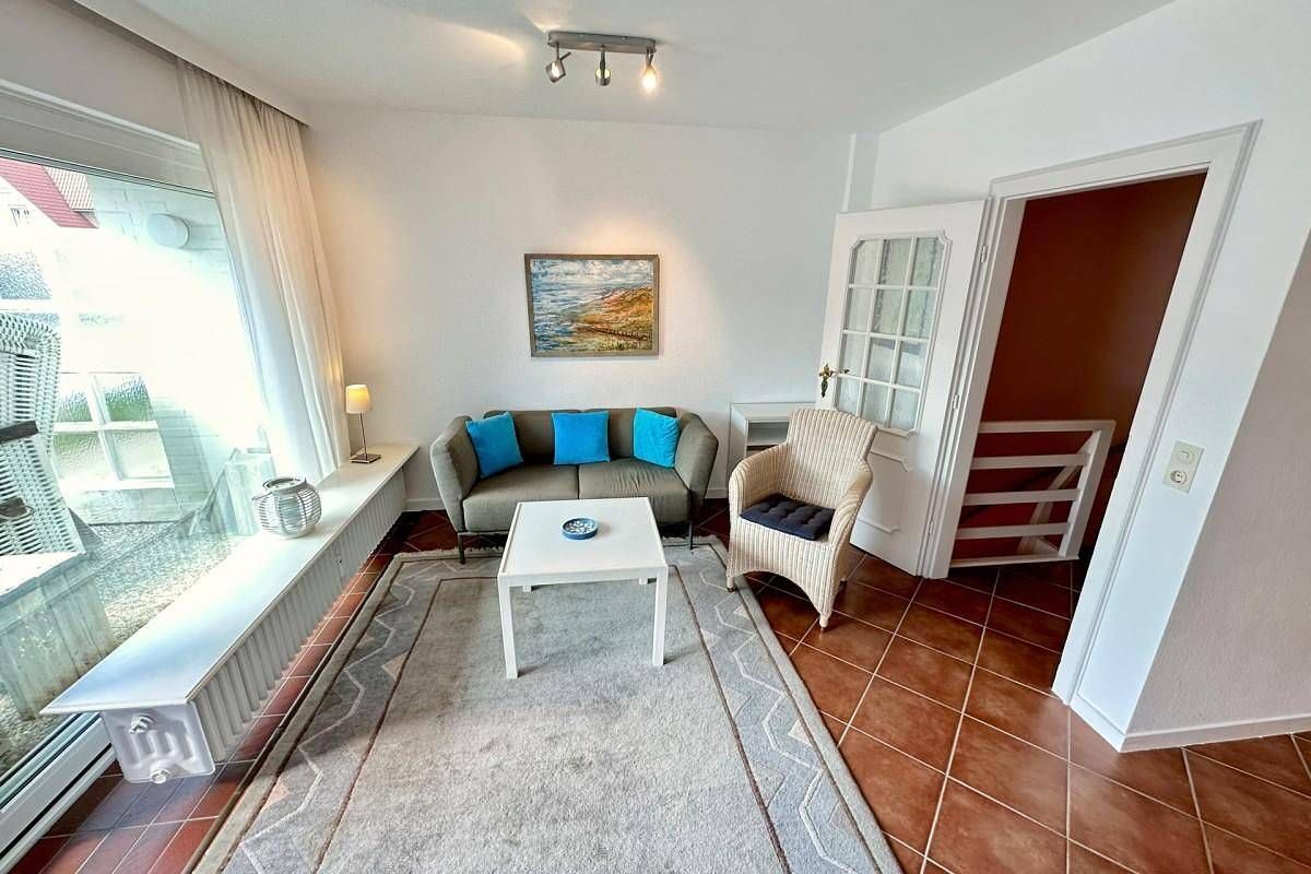Herzlich Willkommen im Mehr-Parteien-Haus „Seedüne“ in Wenningstedt – Ihrem idyllischen Rückzugsort auf Sylt! Diese individuell gestalteten Wohnungen bieten eine hervorragende Kombination aus Ruhe und Komfort, nur wenige Gehminuten vom wunderschönen Strand entfernt. Die zentrale Lage in Wenningstedt sorgt dafür, dass Sie in direkter Nähe zu Einkaufsmöglichkeiten, Bäckereien und gemütlichen Restaurants wohnen. Der Weststrand mit seinen endlos weiten Sandstränden ist in nur 5 Minuten fußläufig erreichbar, sodass Sie das Meer jederzeit genießen können. Ein eigener Pkw-Stellplatz (Nr. 47) gehört ebenfalls zur Wohnung. Im lichtdurchfluteten Wohnzimmer können Sie auf dem bequemen Sofa nach Lust und Laune entspannen und sich erholen. Der Raum, der durch eine große Fensterfront hell und freundlich ist, schafft eine einladende Atmosphäre für gemütliche Stunden. Die voll ausgestattete Küche bietet alles, was Sie zum Kochen brauchen, und am Esstisch im Wohnbereich können Sie Ihre Mahlzeiten mit bis zu 2 Personen genießen. Das helle und beruhigende Schlafzimmer ist mit einem komfortablen Doppelbett (2x 90x200 cm) ausgestattet, sodass Sie hier wunderbar erholsame Nächte verbringen können.Das moderne Duschbad mit WC, das befindet sich im Souterrain. An den Wohnbereich angrenzend können Sie auf der Terrasse mit Südausrichtung entspannen und bei gutem Wetter die Sonne von morgens bis abends genießen. Haustiere sind in dieser Wohnung nicht gestattet. WLAN steht Ihnen kostenfrei zur Verfügung (keine Haftung bei Störungen), und eine Waschmaschine zur gemeinschaftlichen Nutzung befindet sich im Haus. Bitte beachten Sie, dass es keine Möglichkeit gibt, sich Post nachsenden zu lassen, da keine Briefkastenschlüssel vorhanden sind. Freuen Sie sich auf entspannte und unvergessliche Tage in Wenningstedt in der „Seedüne“ – der perfekte Ort, um die Schönheit der Nordsee und die besondere Atmosphäre Sylts zu genießen!