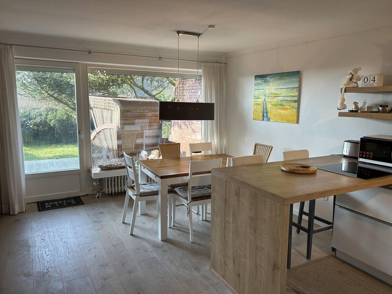 Sylt von der schönsten Seite - Natur und Sport Urlaub an der Blidsel Bucht 100 Meter vom Naturstrand der Blidsel Bucht, gelegen am Wattenmeer, mit seinem faszinierenden Wechsel von Ebbe und Flut, dem Spiel der Wolken am weiten Horizont, lädt das schöne Landhaus Blidsel Bucht im Sylter Nobel Quartier der Westerheide zwischen Kampen und List gelegen mit seinem frisch renovierten und geschmackvoll eingerichteten Reetdach-Mittelhausteil zu herrlichem Urlauben ein. Der verborgene Weg zum Weststrand durch die Dünen, der direkte Geheimweg zum Watt-Strand und Wattenmeer, die Strandsauna List in der Nähe, weite Spaziergänge am einsamen Watt, hier kann Mensch zu sich finden und geruhsam in der Weite der Natur erholen oder auch Spannung pur erleben beim Kiten oder Windsurfen- die Blidsel Bucht, der Geheimtip und Hot Spot für Segler, Kiter, Windsurfer am Watt. Im Haus : 2 geschmackvoll eingerichtete Schlafzimmer : im OG mit Boxspringbett, weißem Einbauschrank, Panoramafenster nach Süden übers Watt, Flat-TV und Lesesessel, im UG mit Boxspringbett, Flat TV und Sofa sowie viel Platz für zusätzliche Klein-Kinderbett(en), ein Juniorzimmer im OG mit 2 weißen separaten Einzelbetten, Einbauschränke in weiß, Wannen/Duschbad mit WC im OG, Duschbad/WC im EG, Wäscheraum mit Trockner und WaMa im UG, die moderne Küche, mit ausgewähltem Inventar im gemütlichen Livingroom weiß gekälkte Eiche Landhausdiele, gemütliche Vintage Essgarnitur am Panoramafenster zur Terasse, neuer Sofaecke mit curved TV und Musikanlage, dem weitem Blick übers Watt laden ein, den Urlaub im Haus und auf der Terasse hinter Rosenhecke im Südgarten kulinarisch zu genießen., z.B. Sylter Miesmuschel zu „Dörte`s Ziegenkäse“ vom Käselädchen Keitum, als Nachtisch ein Eis von der feinsten Sylter Eismanufaktur in List. Natürlich gern auch mal „zu Gosch“ – das muss!! Im Haus die Werke der Oldenburger Fotokünstlerin C.Schild, die schon das beliebte Doppelhaus MiaVilla/MiaCasa für uns künstlerisch gestaltet hat. Am Eingang zum Haus ein weiteres künstlerische Highlight : „Buddha mit 2 Bodhisattvas“, eine Steinsetzung von Uwe Claus, dem Beuys Schüler, der auch liebevoll seit Jahren die singuläre Kiefer „Pinus mugo var. Mughus“ im Südgarten beschneidet und pflegt und ihre einzigartige Form geschaffen hat. Sylt von der schönsten Seite - Natur und Sport Urlaub an der Blidsel Bucht 100 Meter vom Naturstrand der Blidsel Bucht, gelegen am Wattenmeer, mit seinem faszinierenden Wechsel von Ebbe und Flut, dem Spiel der Wolken am weiten Horizont, lädt das schöne Landhaus Blidsel Bucht im Sylter Nobel Quartier der Westerheide zwischen Kampen und List gelegen mit seinem frisch renovierten und geschmackvoll eingerichteten Reetdach-Mittelhausteil zu herrlichem Urlauben ein. Der verborgene Weg zum Weststrand durch die Dünen, der direkte Geheimweg zum Watt-Strand und Wattenmeer, die Strandsauna List in der Nähe, weite Spaziergänge am einsamen Watt, hier kann Mensch zu sich finden und geruhsam in der Weite der Natur erholen oder auch Spannung pur erleben beim Kiten oder Windsurfen- die Blidsel Bucht, der Geheimtip und Hot Spot für Segler, Kiter, Windsurfer am Watt. Im Haus : 3 geschmackvoll eingerichtete Schlafzimmer : im OG mit Boxspringbett, weißem Einbauschrank, Panoramafenster nach Süden übers Watt, Flat-TV und Lesesessel, im UG mit Boxspringbett, Landhaus-Kleiderschrank, Flat TV und Sofa sowie viel Platz für zusätzliche Klein-Kinderbett(en), ein Juniorzimmer im OG mit 2 weißen separaten Einzelbetten, Einbauschränke in weiß, Wannen/Duschbad mit WC im OG, Duschbad/WC im EG, Wäscheraum mit Trockner und WaMa im UG, die moderne Küche, mit ausgewähltem Inventar im gemütlichen Livingroom weiß gekälkte Eiche Landhausdiele, gemütliche Vintage Essgarnitur am Panoramafenster zur Terasse, neuer Sofaecke mit curved TV und Musikanlage, dem weitem Blick übers Watt laden ein, den Urlaub im Haus und auf der Terasse hinter Rosenhecke im Südgarten kulinarisch zu genießen., z.B. Sylter Miesmuschel zu „Dörte`s Ziegenkäse“ vom Käselädchen Keitum, als Nachtisch ein Eis von der feinsten Sylter Eismanufaktur in List. Natürlich gern auch mal „zu Gosch“ – das muss!! Im Haus : die Werke der Oldenburger Fotokünstlerin C.Schild, die schon das beliebte Doppelhaus MiaVilla/MiaCasa für uns künstlerisch gestaltet hat. Am Eingang zum Haus ein weiteres künstlerische Highlight :„Buddha mit 2 Bodhisattvas“, eine Steinsetzung von "U We Claus", dem Beuys Schüler, der auch liebevoll seit Jahren die singuläre Kiefer „Pinus mugo var. Mughus“ im Südgarten beschneidet und pflegt und ihre einzigartige Form geschaffen hat. Bitte beachten Sie, das Bettwäsche im Preis nicht inbegriffen ist, aber im Buchungsabschluss separat kostenpflichtig zugebucht werden kann. Das Ferienhaus Blidsel Bucht wurde auf dem Anbieterportal „DS- Destination Solution“ im langjährigen Durchschnitt seit Vermietungsbeginn 2016 sehr gut mit 5 von 6 Punkten bewertet. Wir sind auch weiterhin bemüht, mit bestem Service und Qualität des Hauses diesen Standard zu halten und freuen uns über Ihr positives feedback. Den Schlüssel finden Sie am Anreisetag in dem Schlüsselsafe an der Haustür. Der Code nebst weiteren Anreiseinformationen wird Ihnen postalisch vor der Anreise zugesandt. Am Anreisetag wird die Hausdame Sie dann aufsuchen, weitere Informationen und Kurkarten übergeben und ggf. abrechnen. Den Termin des Besuchs koordiniert die betreuende Hausdame mit Ihnen, damit Sie entspannt anreisen können, dazu benötigen wir eine Mobil Telefonnummer. Bei Fragen wenden Sie sich gern auch an Ihren Gastgeber, Lorenz Dobrot, gern stehe ich für Sie zur Hilfestellung zur Verfügung. Wichtiger Hinweis zum Wäschepaket: Sollten Sie bei Buchung versäumt haben, ein Wäschepaket zu bestellen, können Sie dieses gerne vor Ort bei der betreuenden Hausdame nachträglich anfordern und begleichen ( 25€ / Paket ).