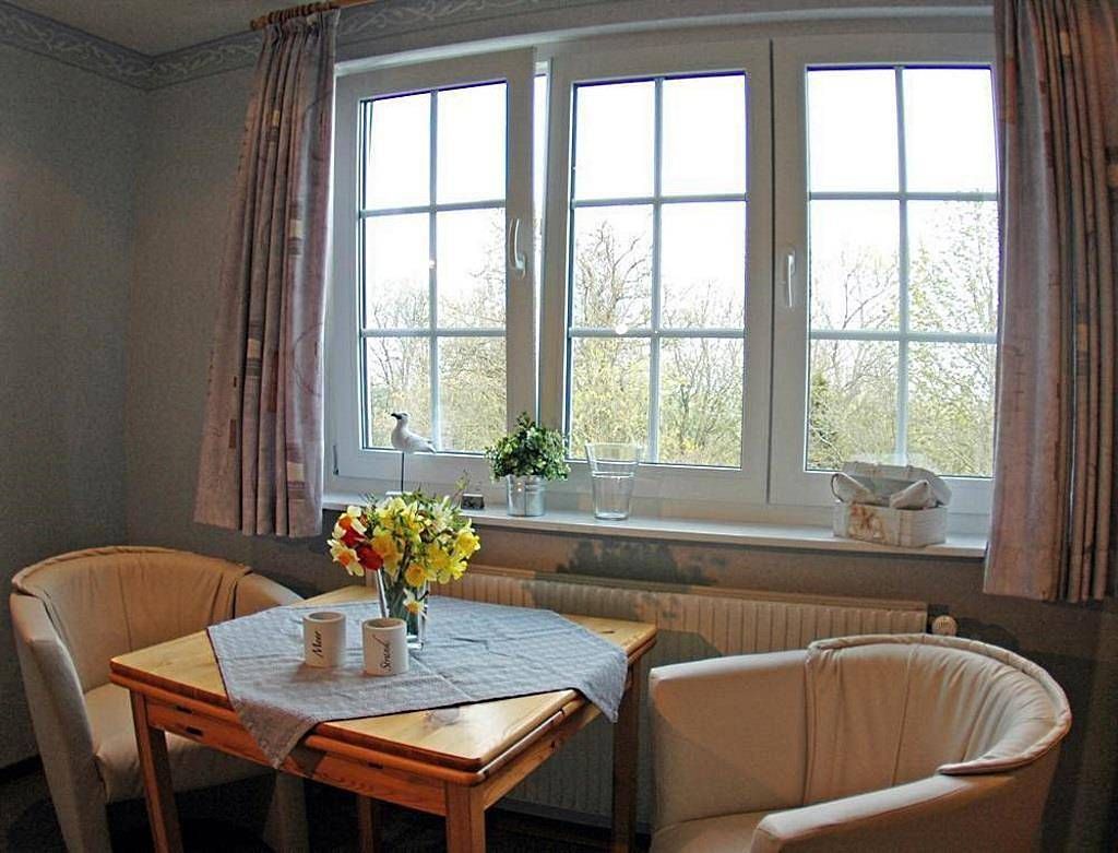 Die Wohnung "Heisternest" für 2 Personen befindet sich im Obergeschoß und ist ca. 35 qm groß. Der Wohnraum ist ausgestattet mit 2 Sesseln und einem Tisch, Flachbild-TV und Radio sowie großer Schlafnische mit einem Doppelbett. Die separate Küche beinhaltet Toaster, Kaffeemaschine, Mixer, Mikrowelle sowie Herd mit Backofen und Ceranfeld. Die Wohnung verfügt über ein neues Duschbad. Zum Sonnen und Faulenzen gibt es separate, idyllisch gelegene Terrassen mit Strandkörben und Gartenmöbeln im großen, gepflegten Garten. Liebe Gäste! In unserem Landhaus im Tümlauer Koog, knapp 400 Meter vom Nordseedeich und nur wenige Autominuten vom Heil- und Kurbad St. Peter-Ording und vom Westerhever Leuchtturm entfernt, können Sie die schönste Zeit des Jahres, Ihren Urlaub, in gepflegter Atmosphäre verbringen. In unserem Haus bieten wir Ihnen Ferienwohnungen mit Selbstverpflegung an. Auf dem großen, idyllischen Anwesen im Tümlauer Koog laden geschützte Sitzgruppen, teilweise mit Strandkörben, zum Verweilen ein. Handtücher und Bettwäsche stellen wir Ihnen kostenlos zur Verfügung. Gegen Gebühr können Sie die Waschmaschine und den Trockner nutzen. Unterstellmöglichkeiten für Fahrräder, Surfbretter, Inliner u.v.m. sind ebenfalls vorhanden. Beliebt ist das Ponyreiten auf der angrenzenden Wiese (natürlich kostenlos für unsere Gäste). Wer Lust dazu hat darf die Ponys auch striegeln und pflegen. Neben den Ponys können sich die Kinder auch um die Hühner und die beiden Kaninchen kümmern. Das Eiersammeln gehört auch dazu. Die Tiere befinden sich vom Frühjahr (Anfang Mai) bis zum Herbst (Anfang November) bei unserem Landhaus. Unsere jüngsten Gäste sollen sich so richtig wohl fühlen. Dazu gehört auch das Herumtollen auf dem großen Spielplatz mit großem Trampolin, Schaukel, Rutsche, Sandkasten und Spielgeräten. Zur sportlichen Betätigung treffen sich Kinder, Jugendliche und Erwachsene im Tischtennisraum. Gerne stellen wir Ihnen kostenlos Kinderbetten oder auch Hochstühle zur Verfügung (auf Anfrage). Neu: Wlan im und in der Nähe des Tischtennisraumes Ein Kinderstuhl sowie ein Kinderbett stehen bei Bedarf kostenfrei zur Verfügung - bitte bei der Buchung angeben. Haustiere in allen Ferienwohnungen, außer in Wohnung Diekhusen, möglich. Da wir nicht direkt vor Ort wohnen, können wir Ihnen leider nicht den Schlüssel für die Ferienwohnung persönlich übergeben. Der Wohnungsschlüssel liegt im Schlüsseltresor, für den Sie den entsprechenden Code mit der Buchung mitgeteilt bekommen.
