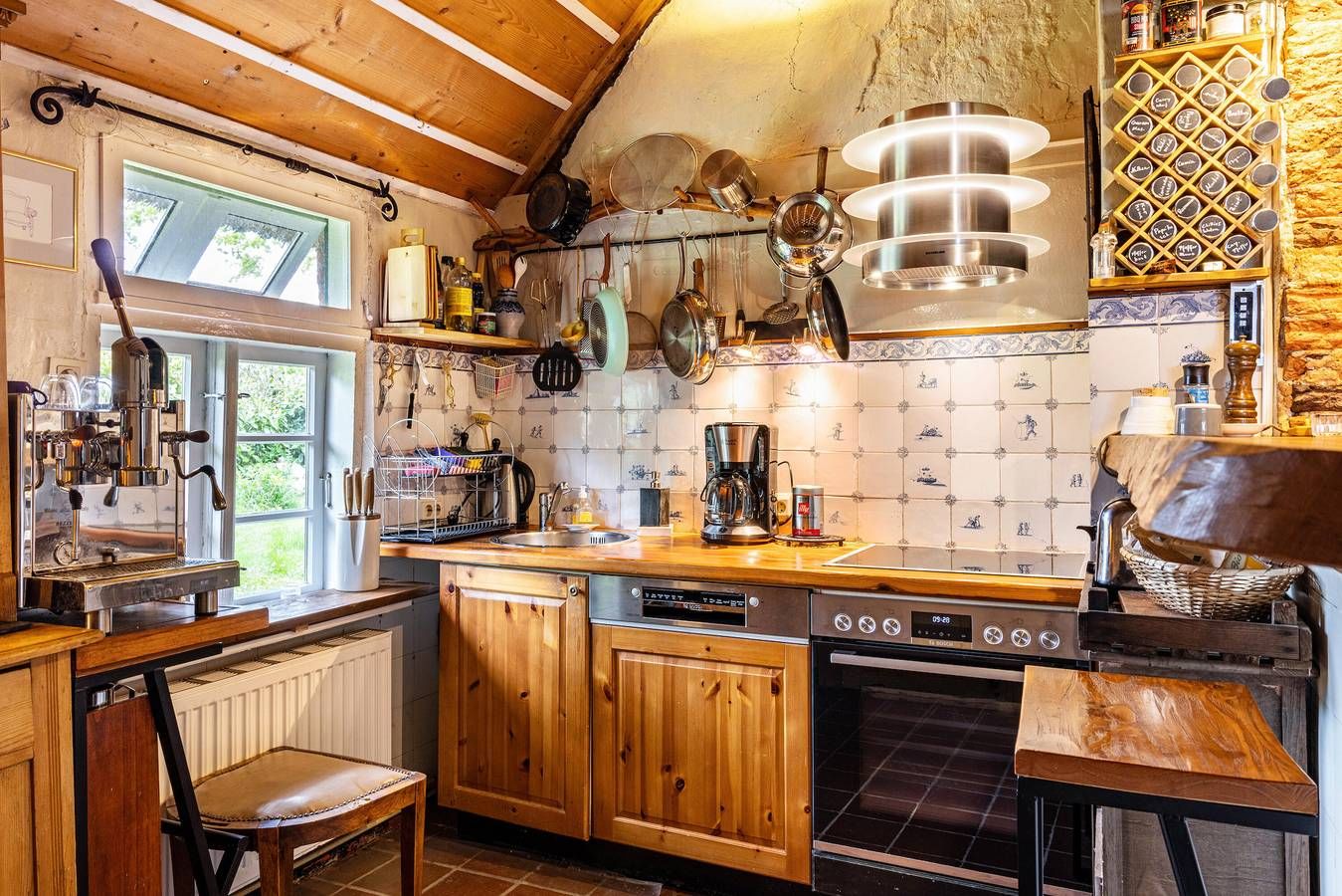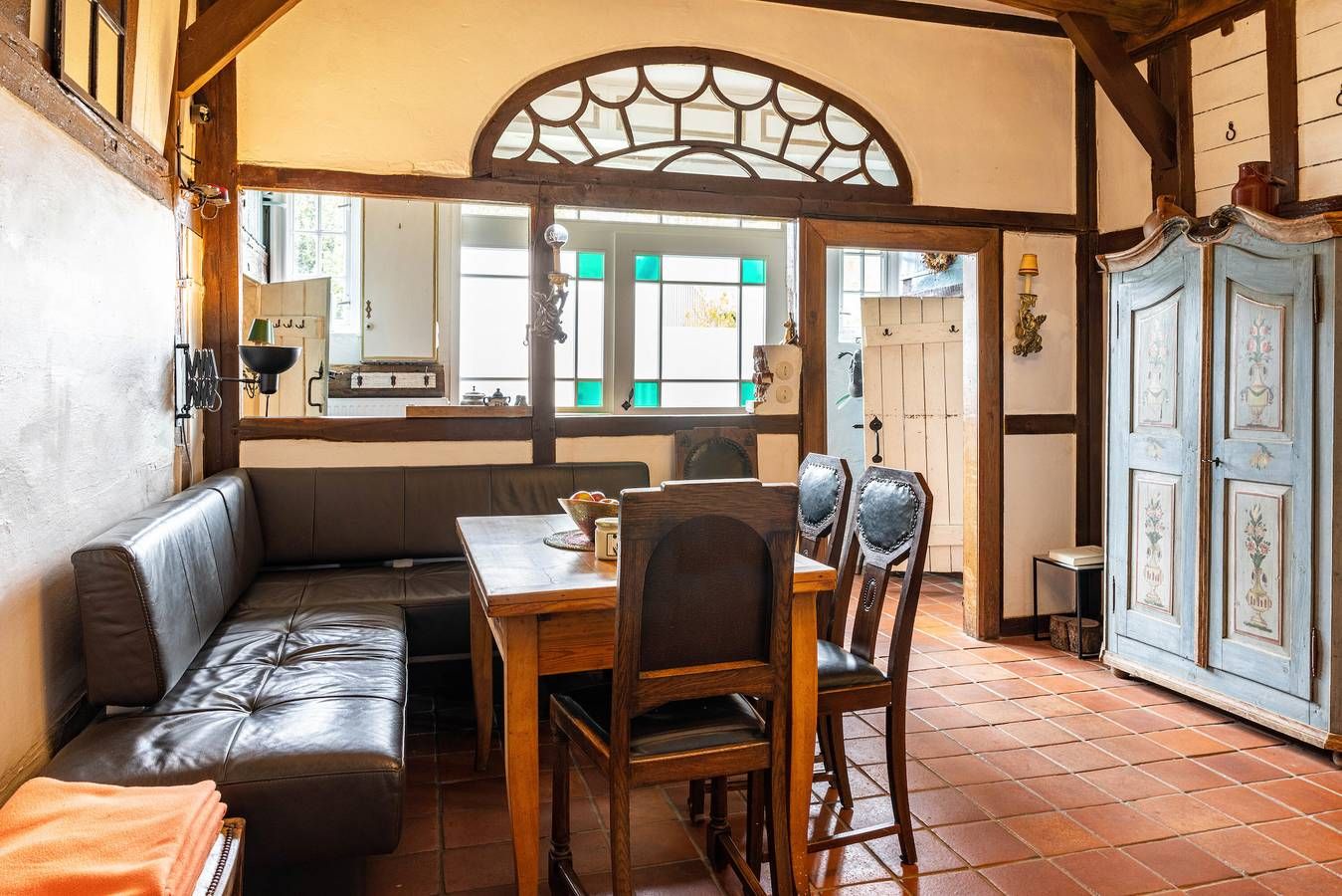 Das Landhaus 'Reetdachhaus Bischoff' in Kuden ist die perfekte Unterkunft für einen stressfreien Urlaub mit Ihren Lieben. Das alte reetgedeckte Landhaus stammt aus den 1620er Jahren und hat dementsprechend viele Besonderheiten, die seinen Charme ausmachen, darunter viele einzigartige Möbel, sowohl Designerstücke als auch Erbstücke, die eine charmante Mischung aus Tradition und Moderne schaffen. Die zweistöckige Unterkunft besteht aus einem Wohnzimmer, einer gut ausgestatteten Küche mit Geschirrspüler, 3 Schlafzimmern und 2 Bädern und bietet somit Platz für 7 Personen. Zur Ausstattung gehören außerdem WLAN, ein Fernseher (nur als Monitor zum Anschluss von Geräten) sowie eine Waschmaschine mit Trockner. Das Landhaus verfügt über einen privaten Außenbereich mit Garten, offener Terrasse, Balkon und Grill. Der Golfplatz "Donner Kleve" ist nicht weit entfernt, und auch ein Segelflugplatz kann von den Gästen genutzt werden. Die Städte Friedrichskoog und Brunsbüttel sind einen Besuch wert, und das Naturschutzgebiet Kudensee ist ebenso leicht zu erreichen wie die Nordsee und der Nordseekanal. Manufakturprodukte Wir bieten Ihnen eine feine Auswahl an Manufaktur-Produkten an. Dazu gehören derzeit italienische Weine, toskanisches Olivenöl, Gewürzmischungen aus Hamburg – Ottensen und Kaffeespezialitäten aus Hamburg – Blankenese. Hier bei uns im Reetdachhaus Bischoff genießen oder mit nach Hause nehmen. Frische Kräuter Kochen Sie mit frischen Zutaten. Je nach Saison stehen Ihnen frische Kräuter aus der Kräuterspirale zur Verfügung. Was Sie im Garten finden, können Sie gern zum Kochen, Backen oder Naschen nutzen." Auf dem Grundstück sind 4 Parkplätze vorhanden. Das Mitbringen von Haustieren, Feiern und Feuerwerk ist nicht erlaubt. 2 Fahrräder sind vorhanden. Nach der Buchung füllen Sie bitte das Holidu-Kontaktformular, das Ihnen per E-Mail zugesandt wird, vollständig aus und geben Sie Ihre Adresse an. Dies wird dem Gastgeber helfen, Ihren Aufenthalt bestmöglich vorzubereiten.